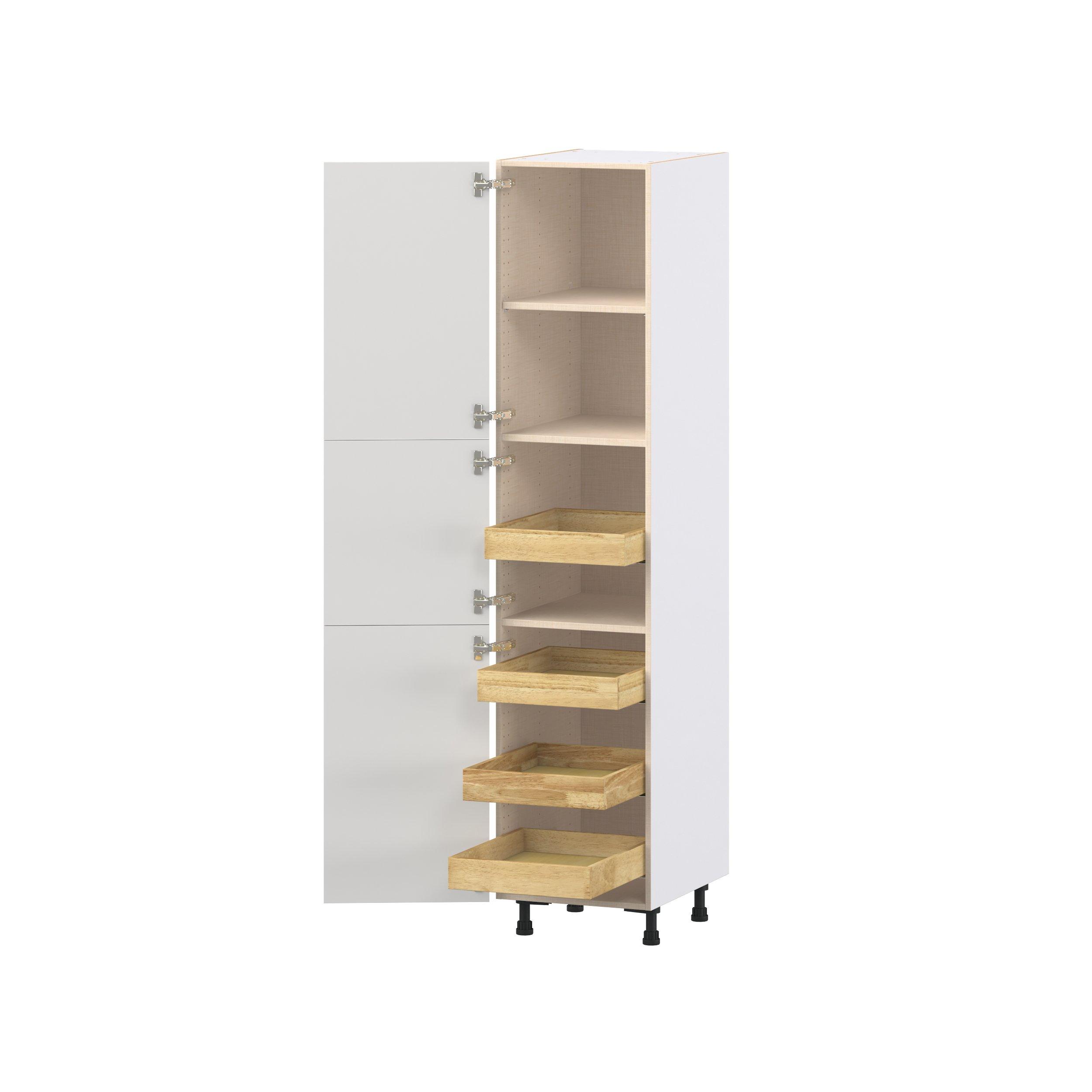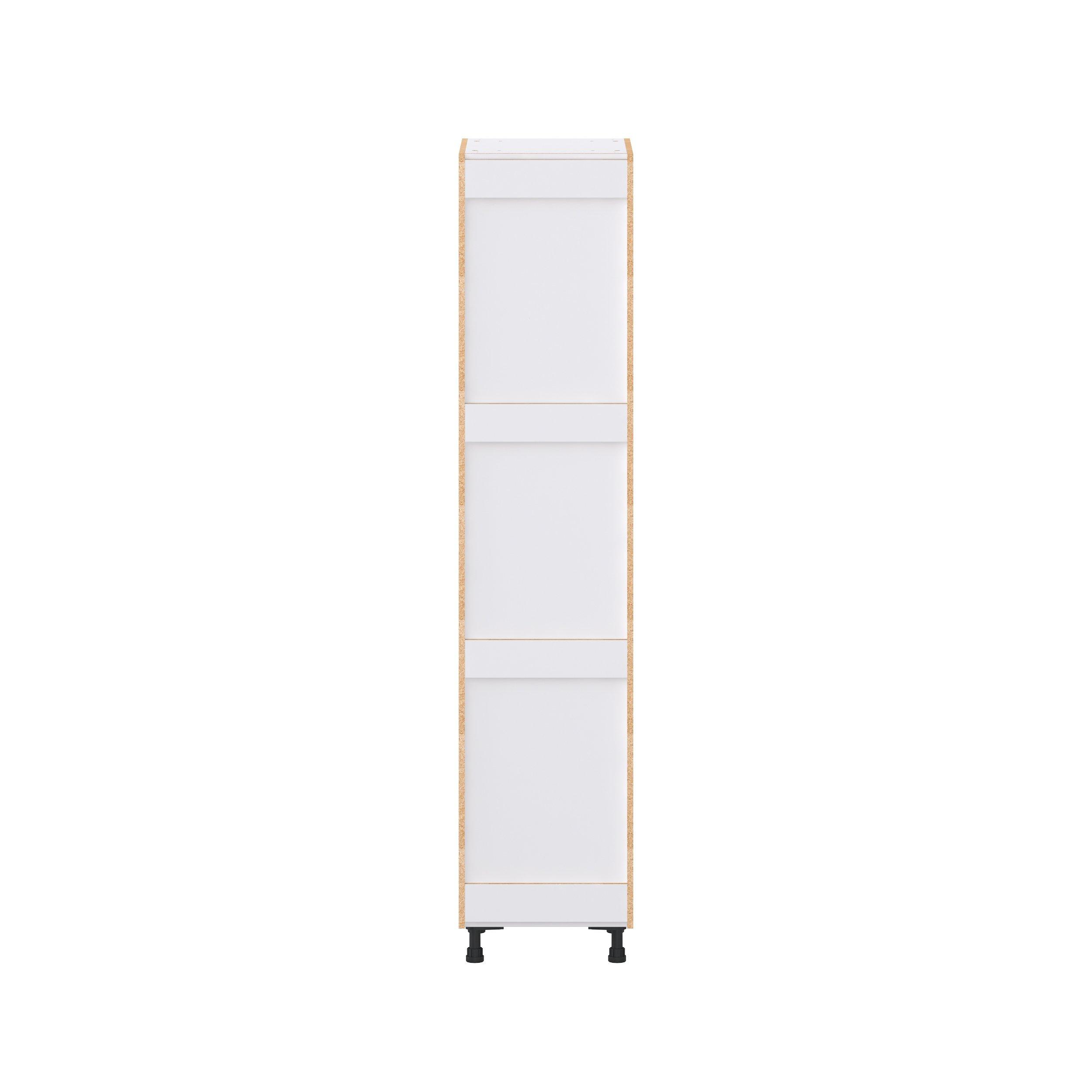 Transform your space with the elegance of Candler wide-rail shaker styles. Both the warm white and slate gray options create a rich transitional backdrop to complement any decor. Crafted from one-piece MDF Studio Design Collection Candler 18 in. Painted Warm White Pantry Cabinet with Inner Pull-Out Drawer is designed to resist hairline cracks while the easy-to-clean finish stands up to stains and moisture. Featuring 5-piece doors and dovetail drawer joints, these cabinets offer durability and elegance. This collection combines style with everyday storage solutions.