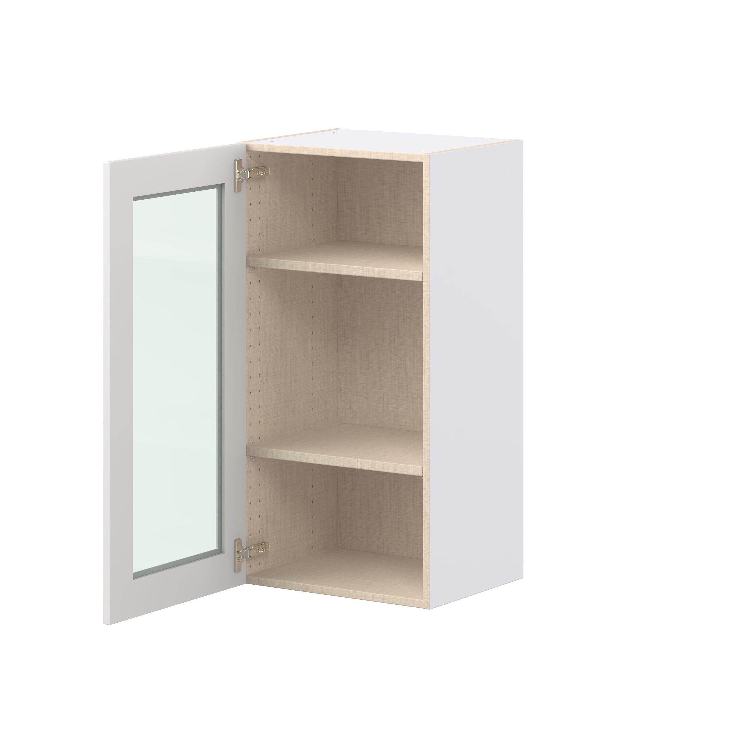 Transform your space with the elegance of Candler wide-rail shaker styles. Both the warm white and slate gray options create a rich transitional backdrop to complement any decor. Crafted from one-piece MDF Studio Design Collection Candler 18 in. Painted Warm White Wall Cabinet with Glass Door is designed to resist hairline cracks while the easy-to-clean finish stands up to stains and moisture. Featuring 5-piece doors and dovetail drawer joints, these cabinets offer durability and elegance. This collection combines style with everyday storage solutions.