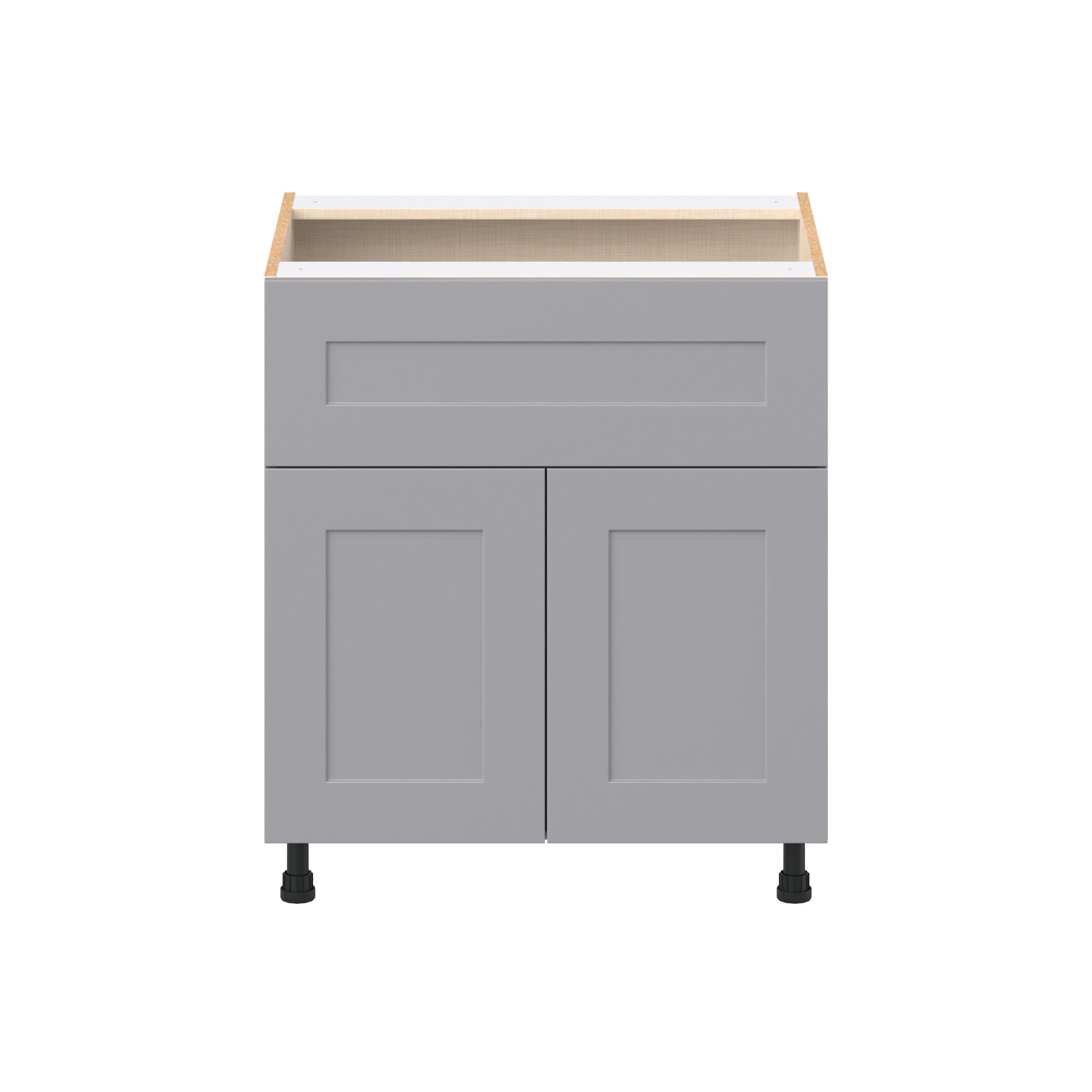 Transform your space with the elegance of Candler wide-rail shaker styles. Both the warm white and slate gray options create a rich transitional backdrop to complement any decor. Crafted from one-piece MDF Studio Design Collection Candler 30 in. Painted Slate Gray Door and Drawer Base Cabinet is designed to resist hairline cracks while the easy-to-clean finish stands up to stains and moisture. Featuring 5-piece doors and dovetail drawer joints, these cabinets offer durability and elegance. This collection combines style with everyday storage solutions.