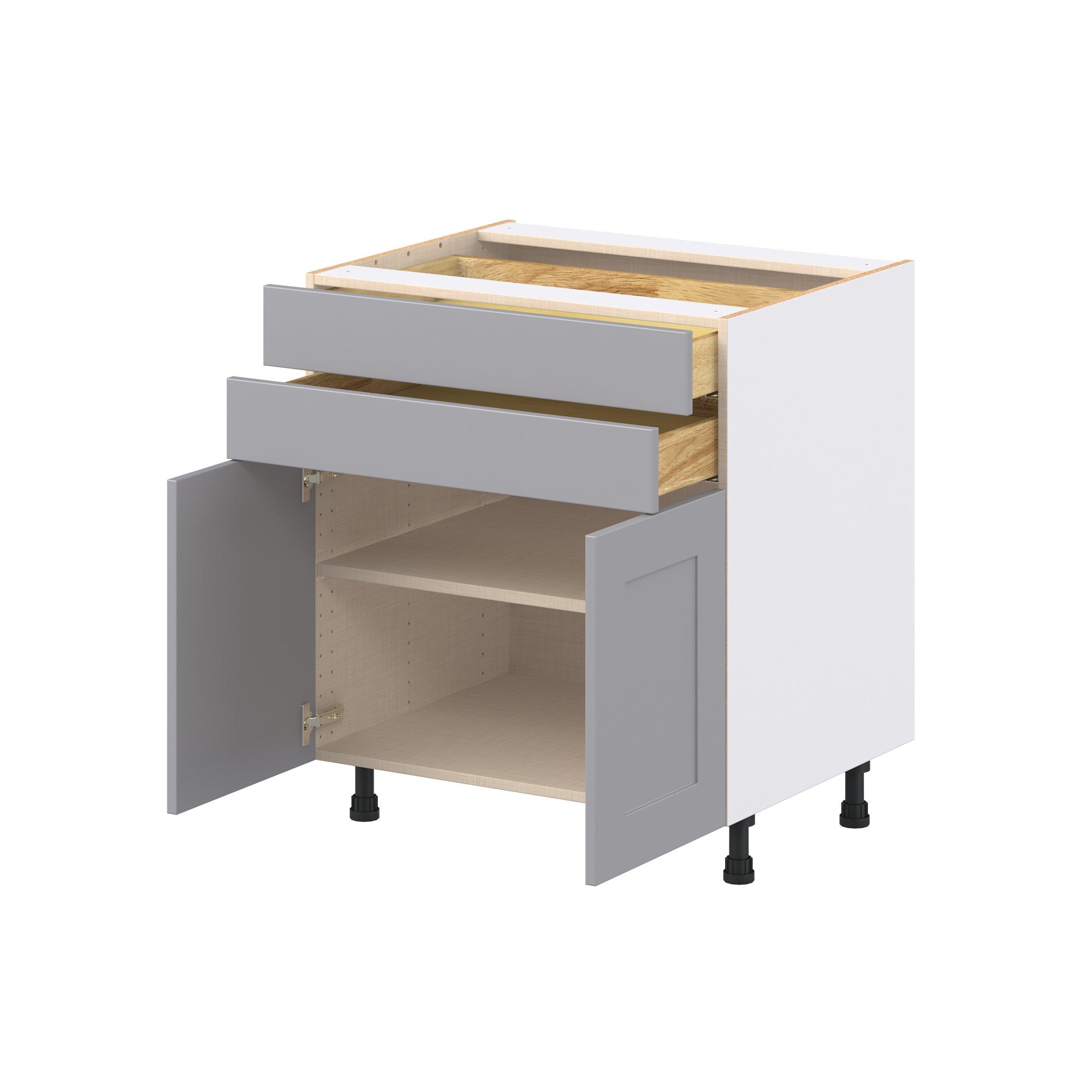 Transform your space with the elegance of Candler wide-rail shaker styles. Both the warm white and slate gray options create a rich transitional backdrop to complement any decor. Crafted from one-piece MDF Studio Design Collection Candler 30 in. Painted Slate Gray Door and Drawer Base Cabinet is designed to resist hairline cracks while the easy-to-clean finish stands up to stains and moisture. Featuring 5-piece doors and dovetail drawer joints, these cabinets offer durability and elegance. This collection combines style with everyday storage solutions.