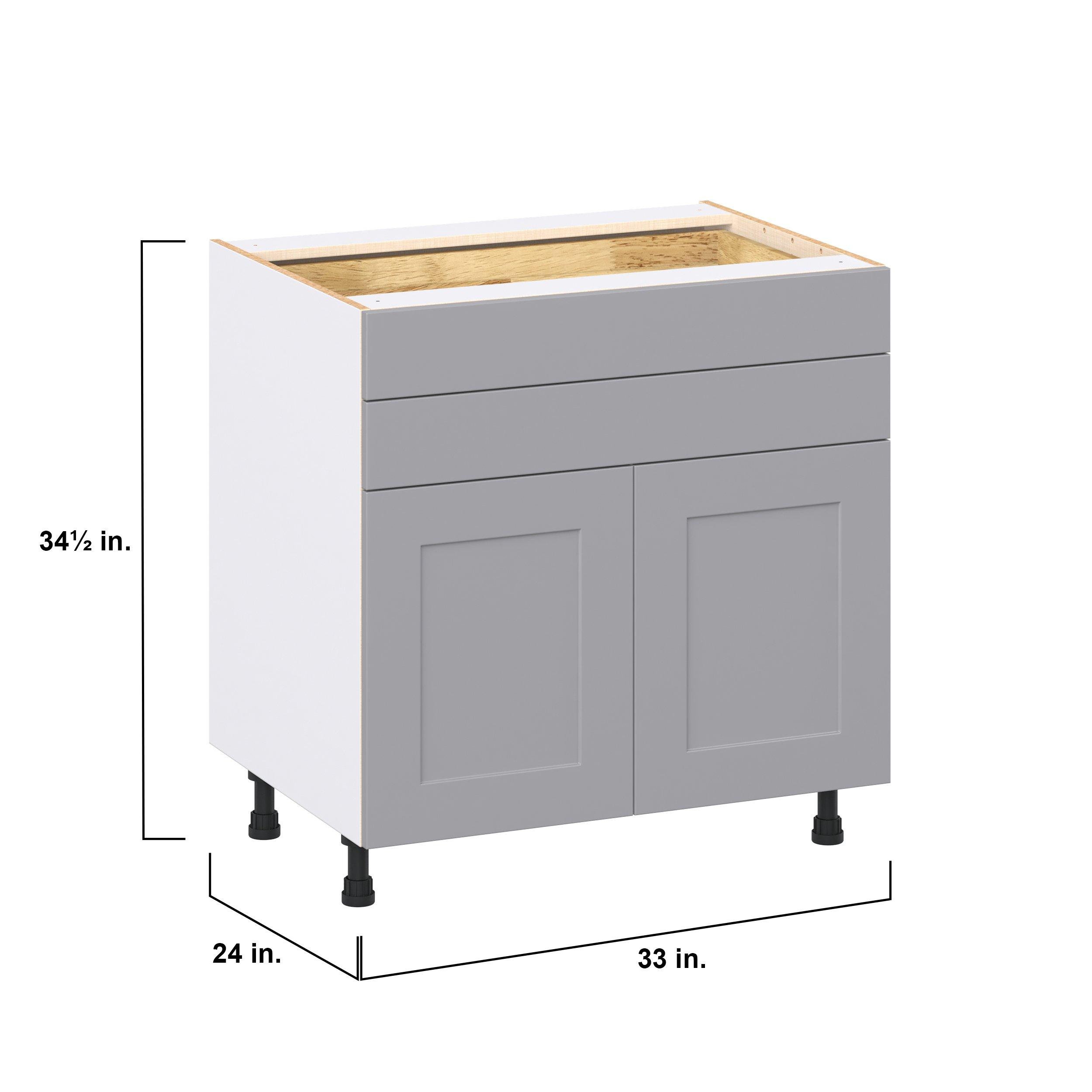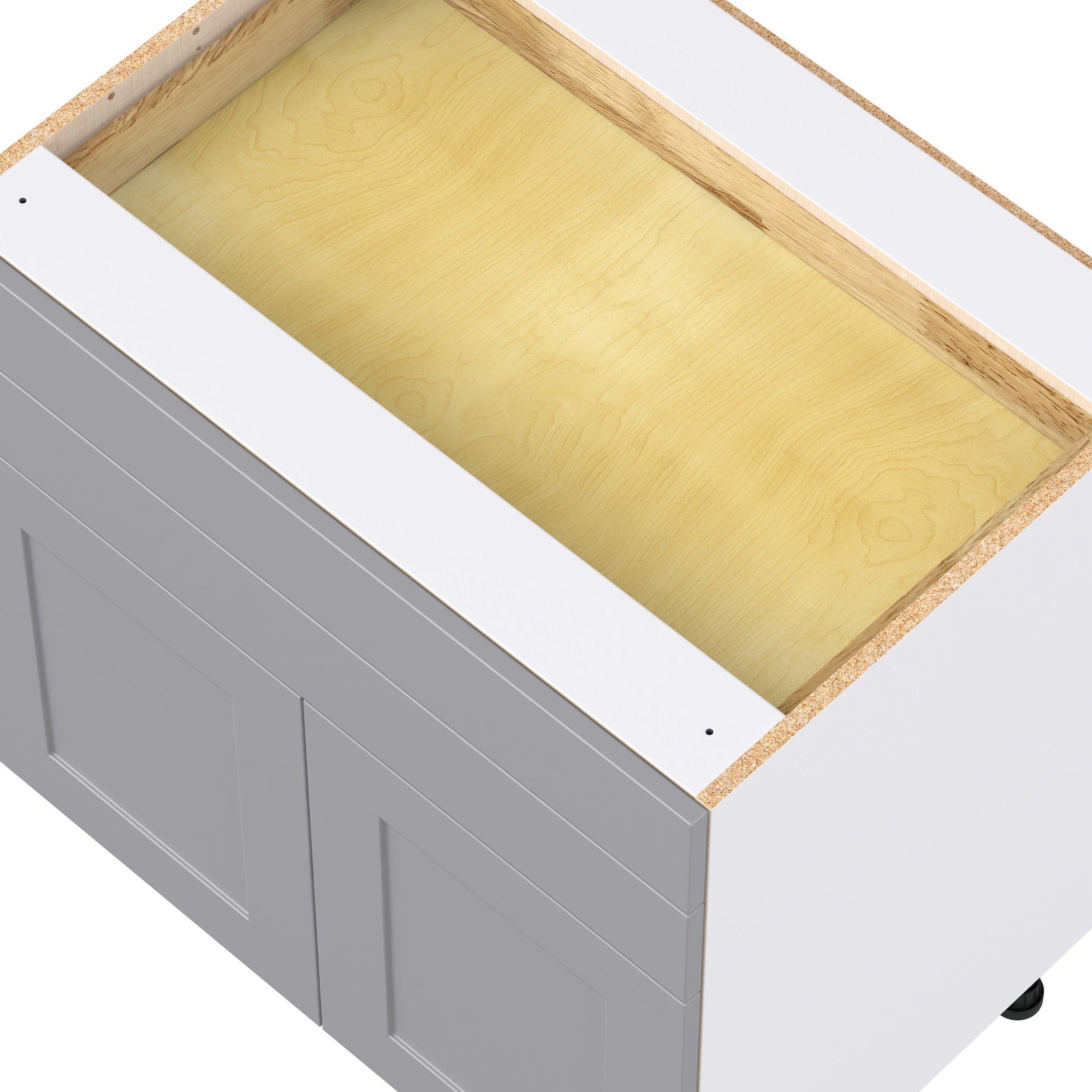 Transform your space with the elegance of Candler wide-rail shaker styles. Both the warm white and slate gray options create a rich transitional backdrop to complement any decor. Crafted from one-piece MDF Studio Design Collection Candler 33 in. Painted Slate Gray Door and Drawer Base Cabinet is designed to resist hairline cracks while the easy-to-clean finish stands up to stains and moisture. Featuring 5-piece doors and dovetail drawer joints, these cabinets offer durability and elegance. This collection combines style with everyday storage solutions.