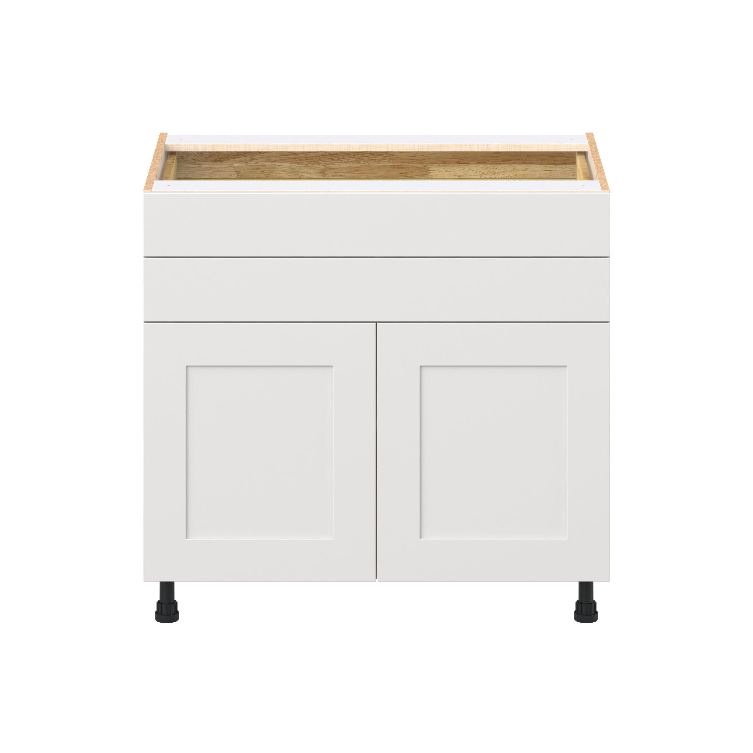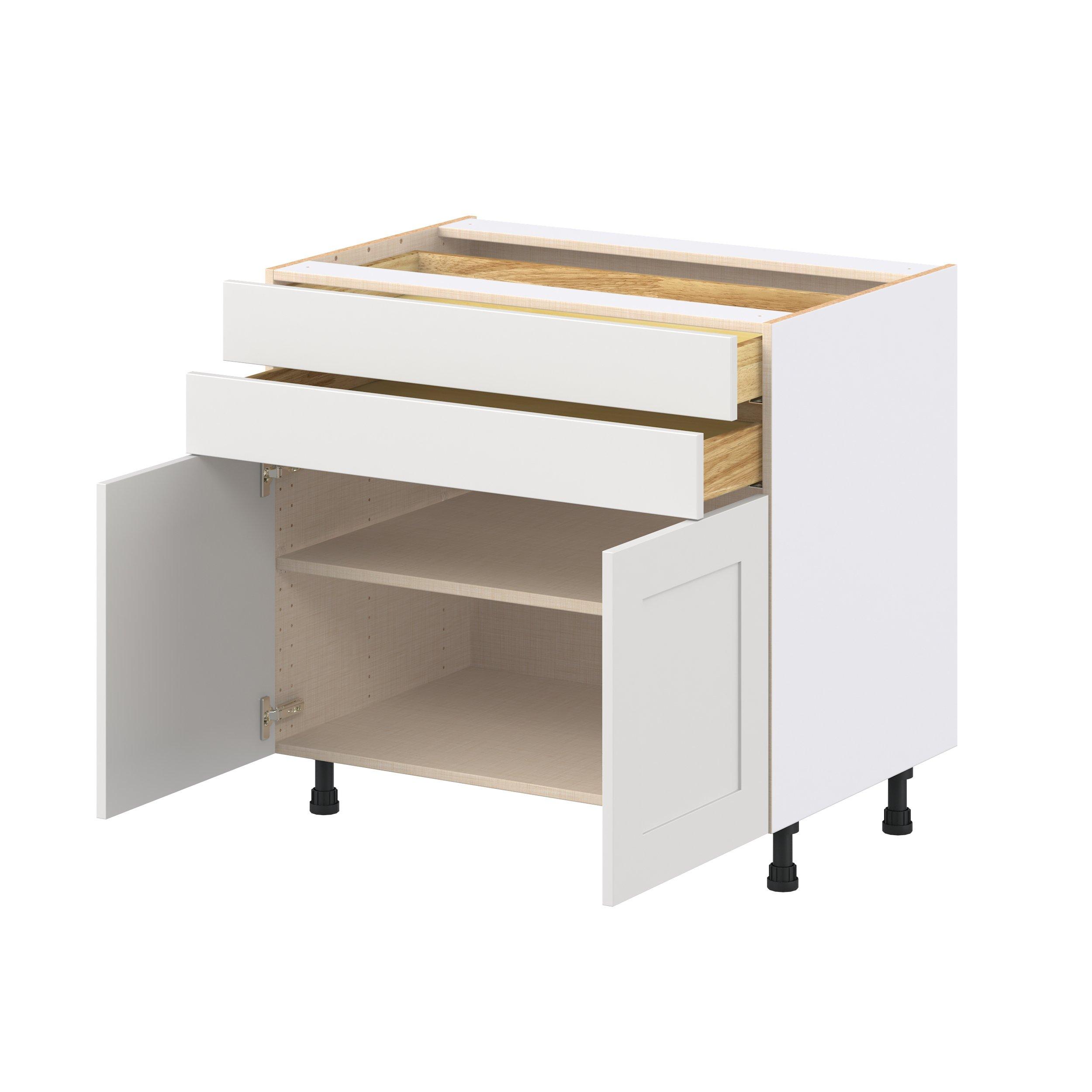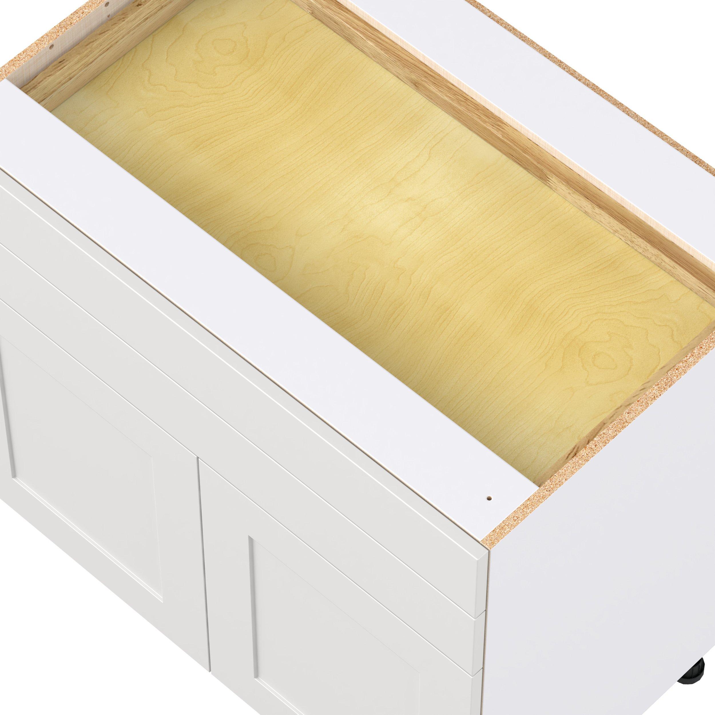 Transform your space with the elegance of Candler wide-rail shaker styles. Both the warm white and slate gray options create a rich transitional backdrop to complement any decor. Crafted from one-piece MDF Studio Design Collection Candler 36 in. Painted Warm White Door and Drawer Base Cabinet is designed to resist hairline cracks while the easy-to-clean finish stands up to stains and moisture. Featuring 5-piece doors and dovetail drawer joints, these cabinets offer durability and elegance. This collection combines style with everyday storage solutions.