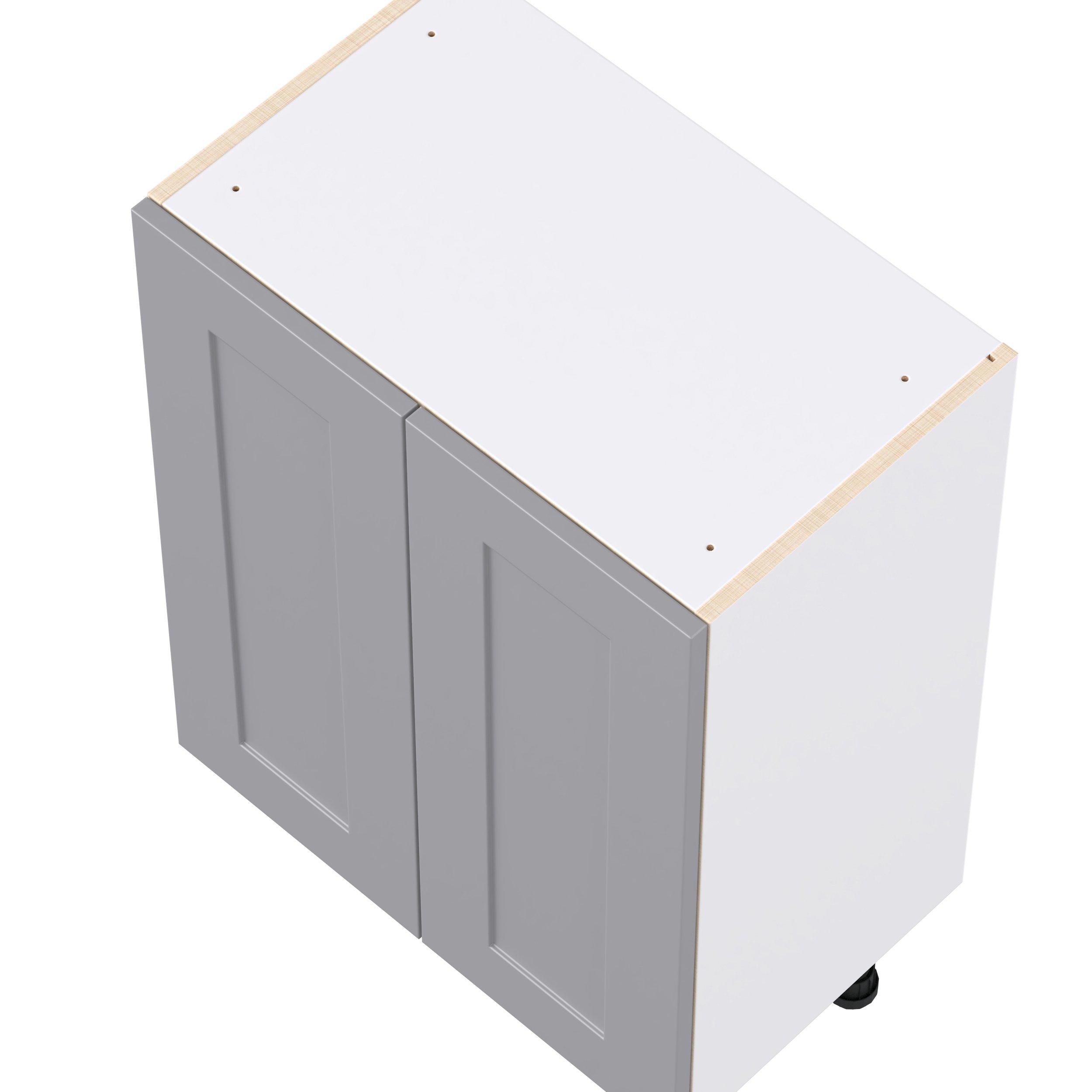 Transform your space with the elegance of Candler wide-rail shaker styles. Both the warm white and slate gray options create a rich transitional backdrop to complement any decor. Crafted from one-piece MDF Studio Design Collection Candler 24 in. Painted Slate Gray Shallow Base Cabinet is designed to resist hairline cracks while the easy-to-clean finish stands up to stains and moisture. Featuring 5-piece doors and dovetail drawer joints, these cabinets offer durability and elegance. This collection combines style with everyday storage solutions.