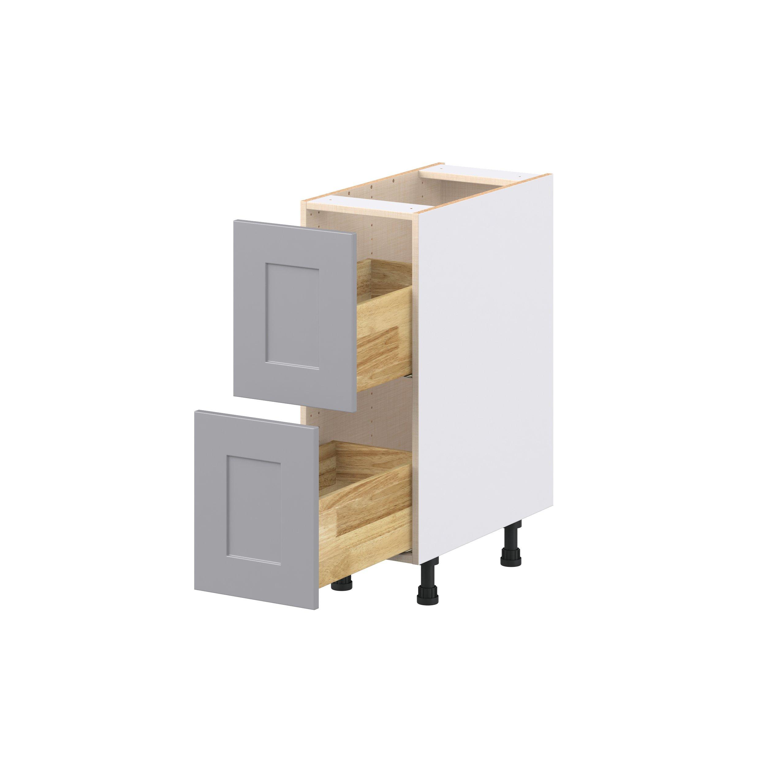 Transform your space with the elegance of Candler wide-rail shaker styles. Both the warm white and slate gray options create a rich transitional backdrop to complement any decor. Crafted from one-piece MDF Studio Design Collection Candler 12 in. Painted Slate Gray Drawer Base Cabinet is designed to resist hairline cracks while the easy-to-clean finish stands up to stains and moisture. Featuring 5-piece doors and dovetail drawer joints, these cabinets offer durability and elegance. This collection combines style with everyday storage solutions.