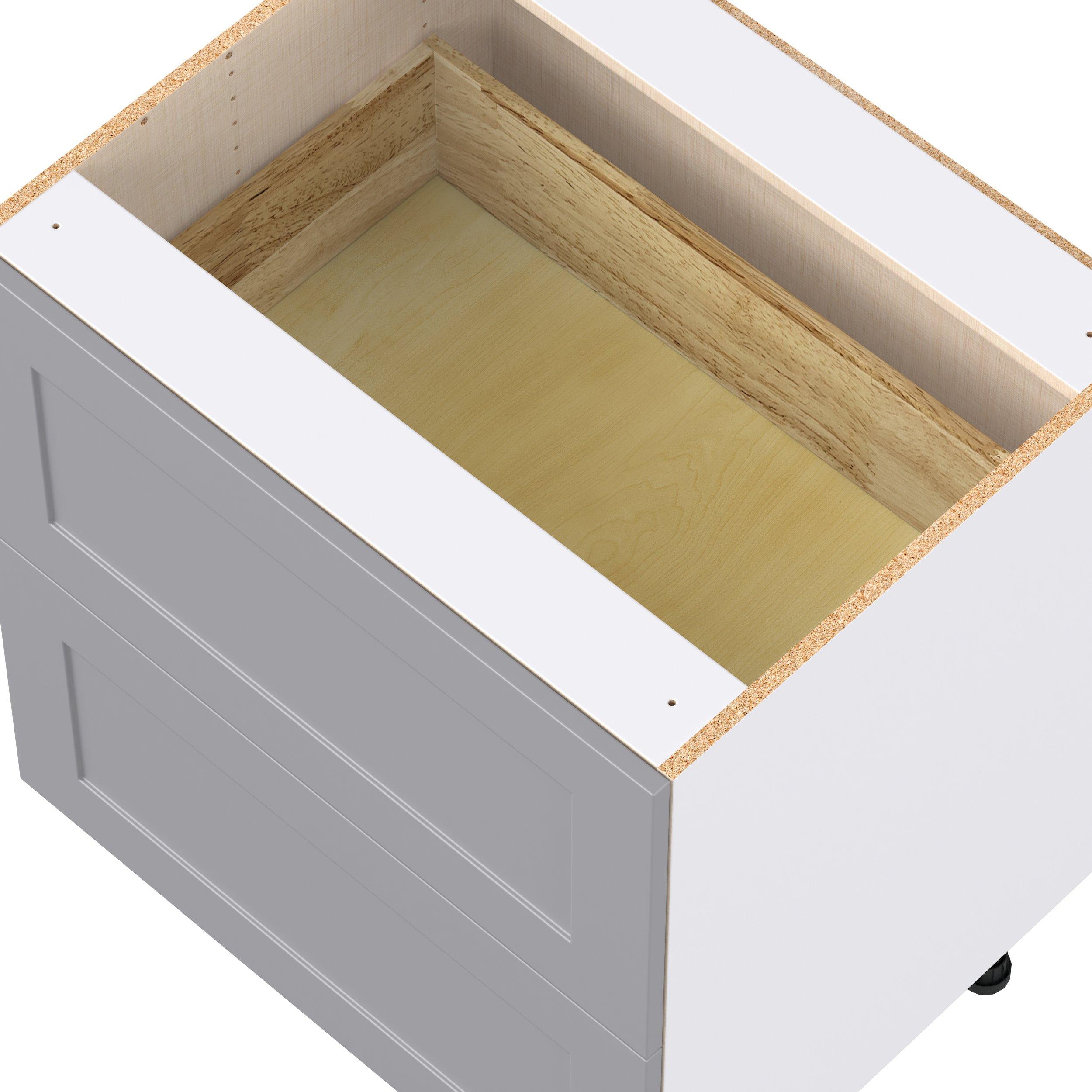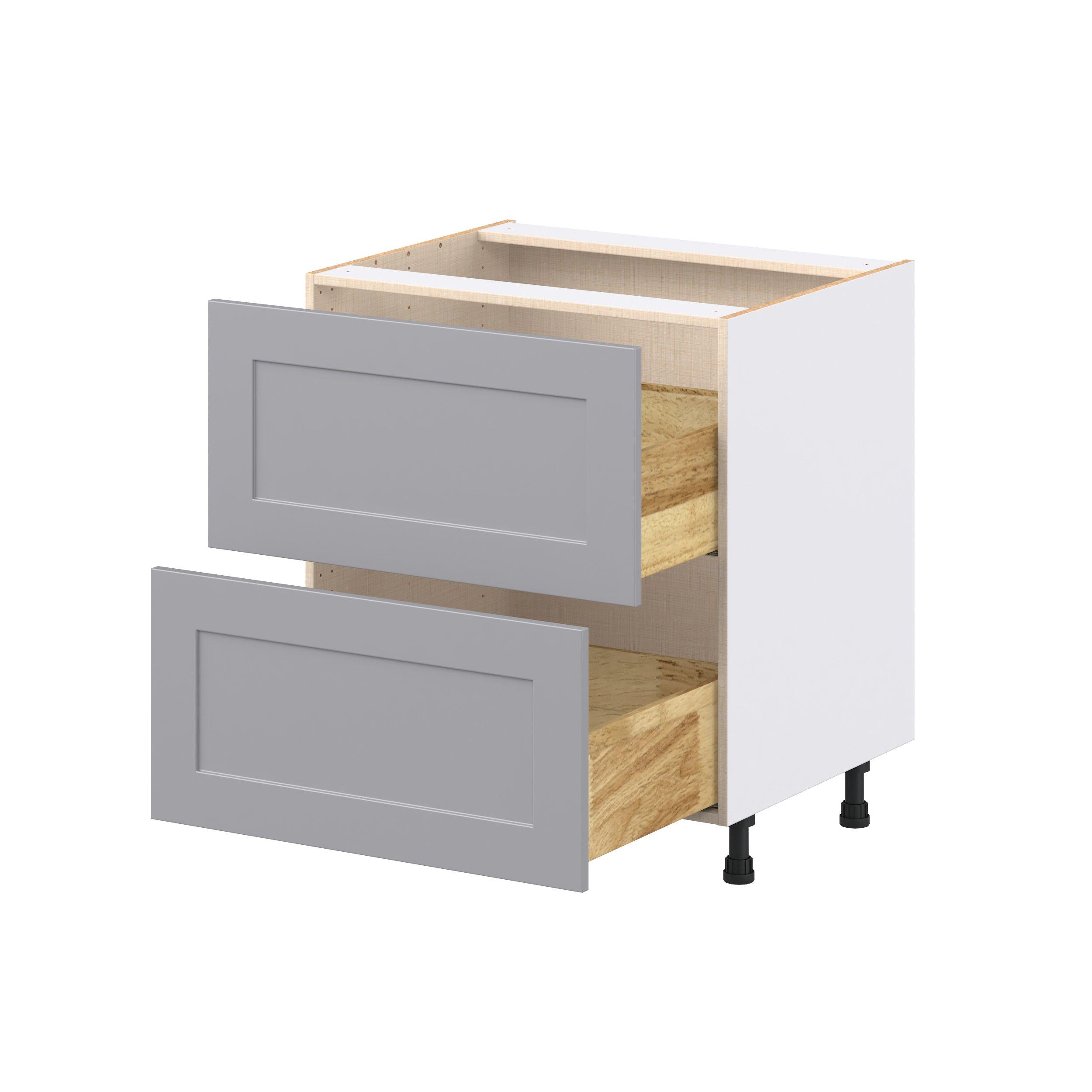 Transform your space with the elegance of Candler wide-rail shaker styles. Both the warm white and slate gray options create a rich transitional backdrop to complement any decor. Crafted from one-piece MDF Studio Design Collection Candler 30 in. Painted Slate Gray Drawer Base Cabinet is designed to resist hairline cracks while the easy-to-clean finish stands up to stains and moisture. Featuring 5-piece doors and dovetail drawer joints, these cabinets offer durability and elegance. This collection combines style with everyday storage solutions.