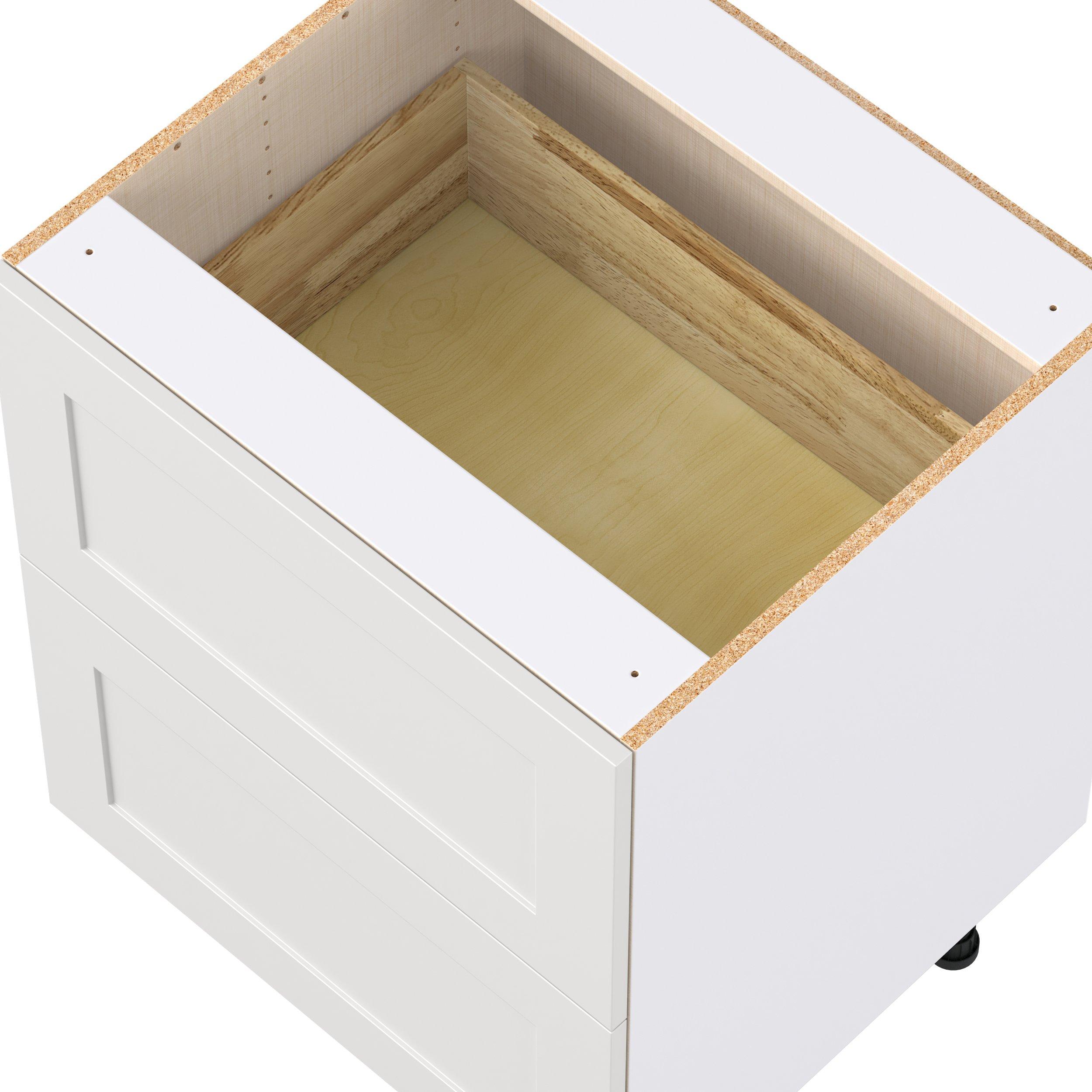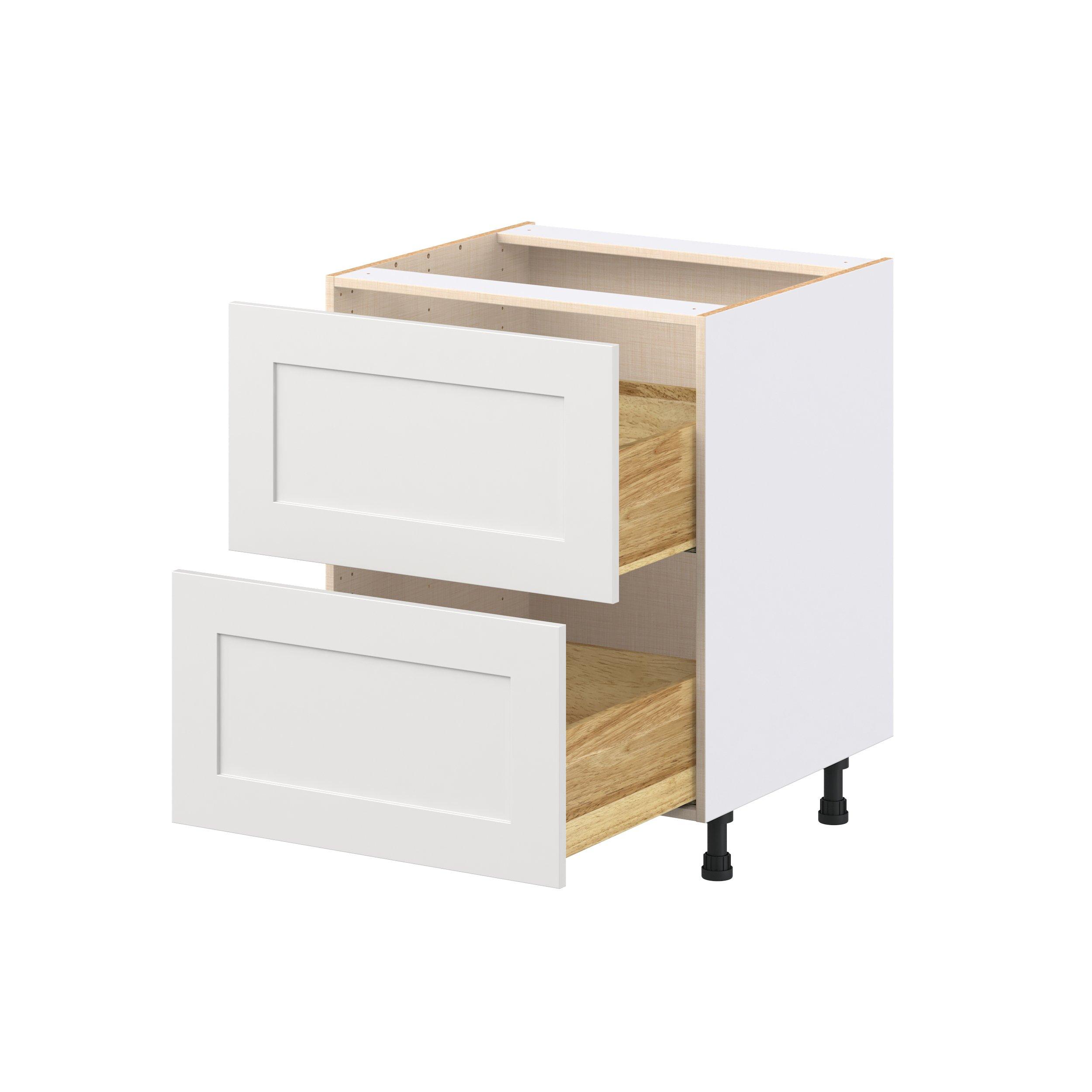 Transform your space with the elegance of Candler wide-rail shaker styles. Both the warm white and slate gray options create a rich transitional backdrop to complement any decor. Crafted from one-piece MDF Studio Design Collection Candler 27 in. Painted Warm White Drawer Base Cabinet is designed to resist hairline cracks while the easy-to-clean finish stands up to stains and moisture. Featuring 5-piece doors and dovetail drawer joints, these cabinets offer durability and elegance. This collection combines style with everyday storage solutions.