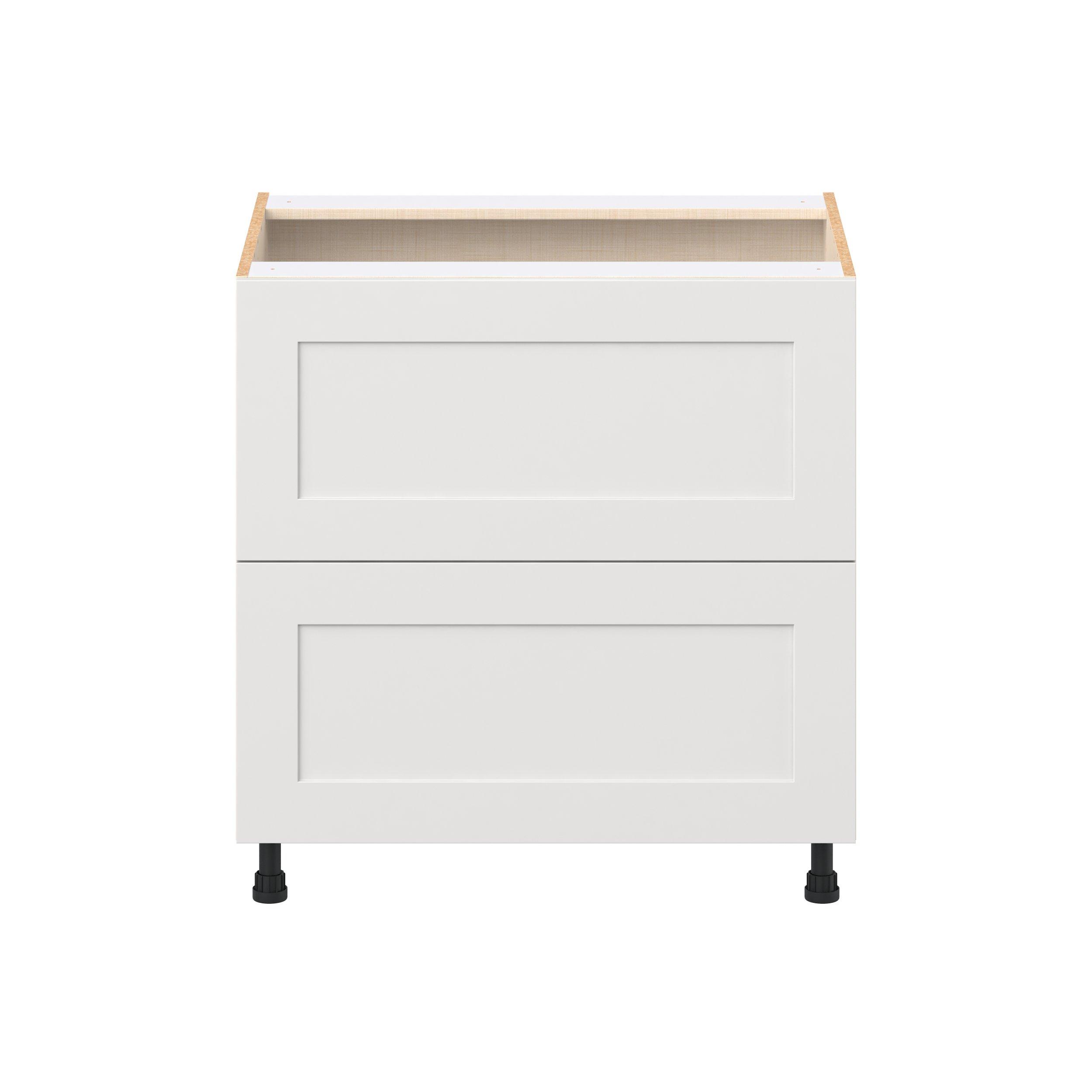 Transform your space with the elegance of Candler wide-rail shaker styles. Both the warm white and slate gray options create a rich transitional backdrop to complement any decor. Crafted from one-piece MDF Studio Design Collection Candler 33 in. Painted Warm White Drawer Base Cabinet is designed to resist hairline cracks while the easy-to-clean finish stands up to stains and moisture. Featuring 5-piece doors and dovetail drawer joints, these cabinets offer durability and elegance. This collection combines style with everyday storage solutions.