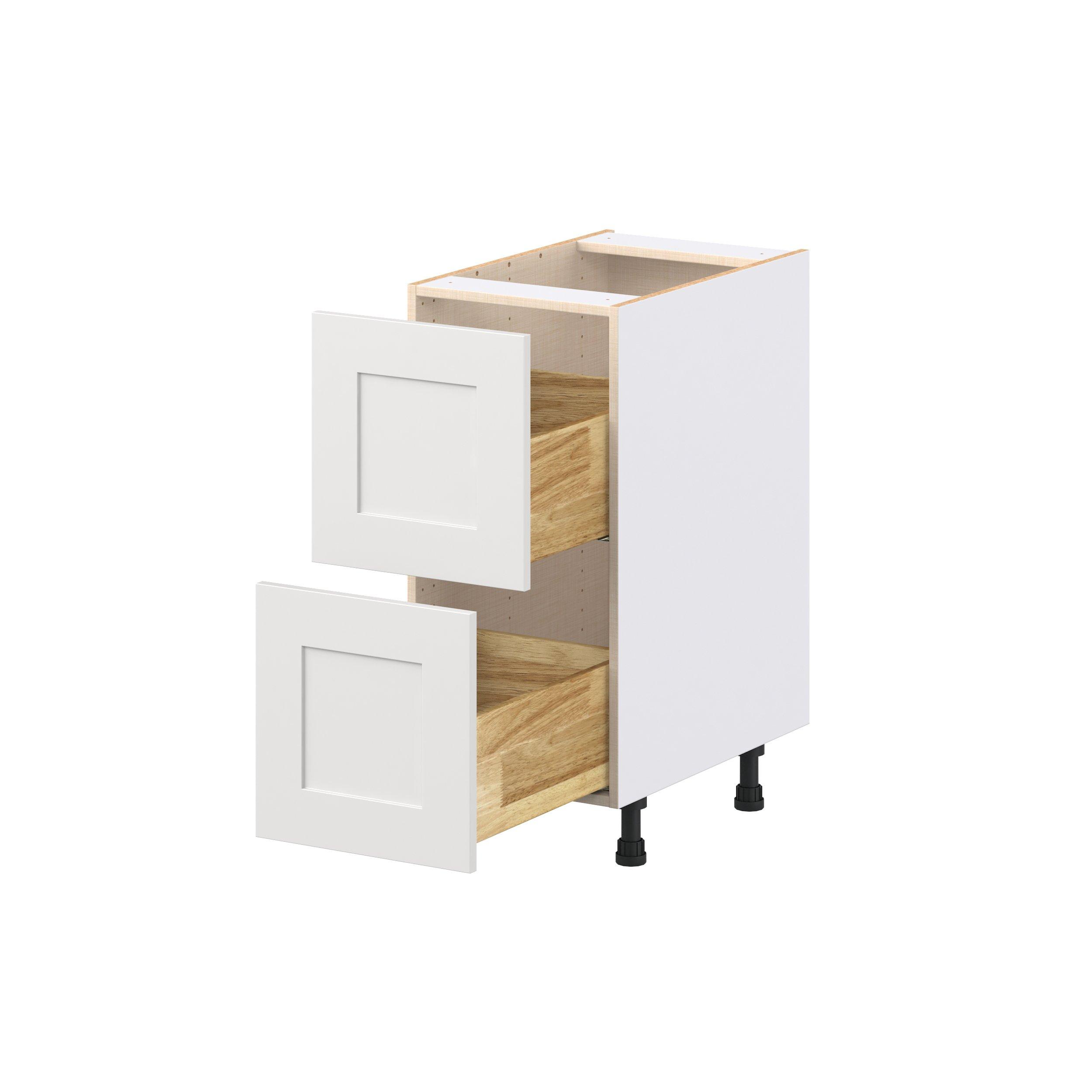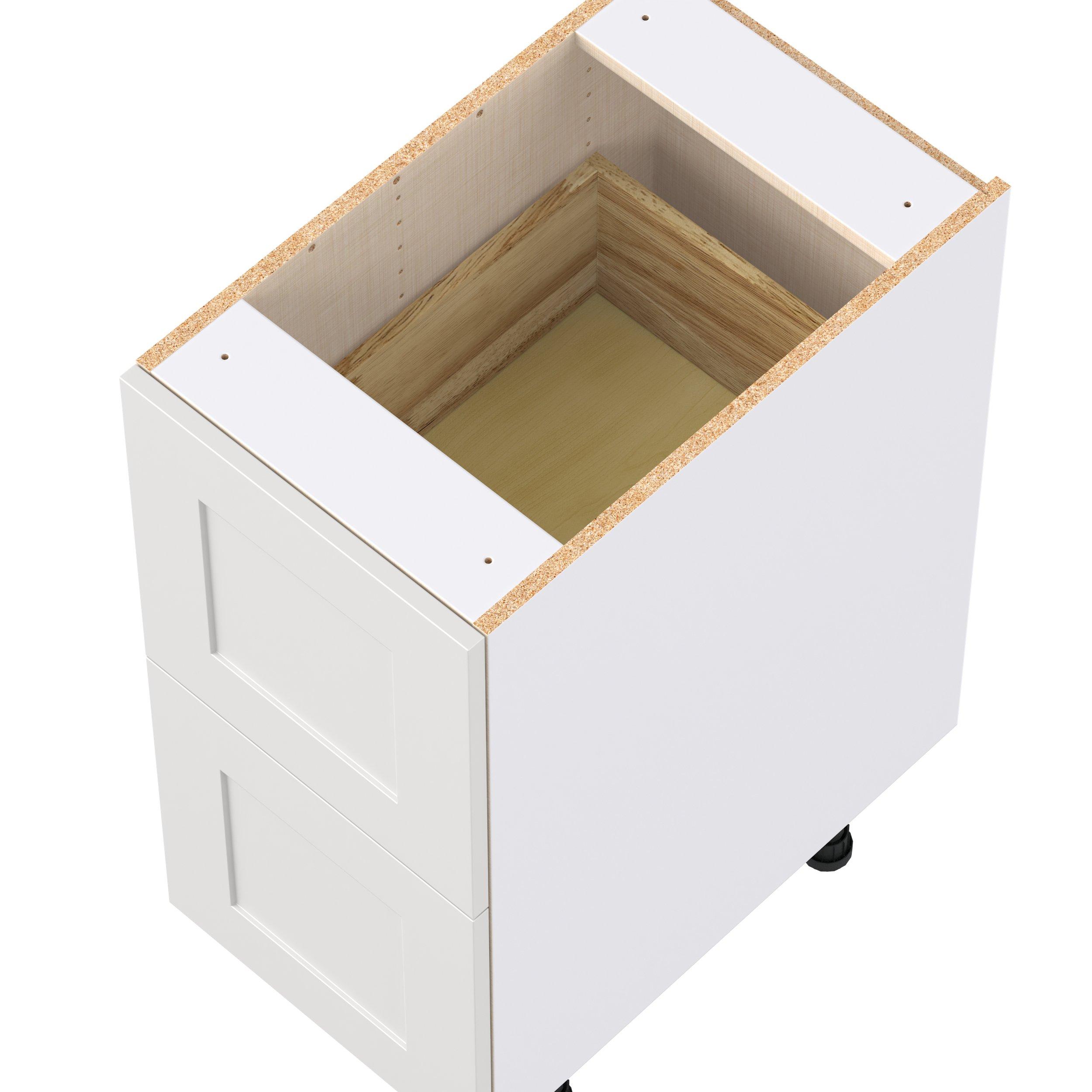 Transform your space with the elegance of Candler wide-rail shaker styles. Both the warm white and slate gray options create a rich transitional backdrop to complement any decor. Crafted from one-piece MDF Studio Design Collection Candler 15 in. Painted Warm White Drawer Base Cabinet is designed to resist hairline cracks while the easy-to-clean finish stands up to stains and moisture. Featuring 5-piece doors and dovetail drawer joints, these cabinets offer durability and elegance. This collection combines style with everyday storage solutions.