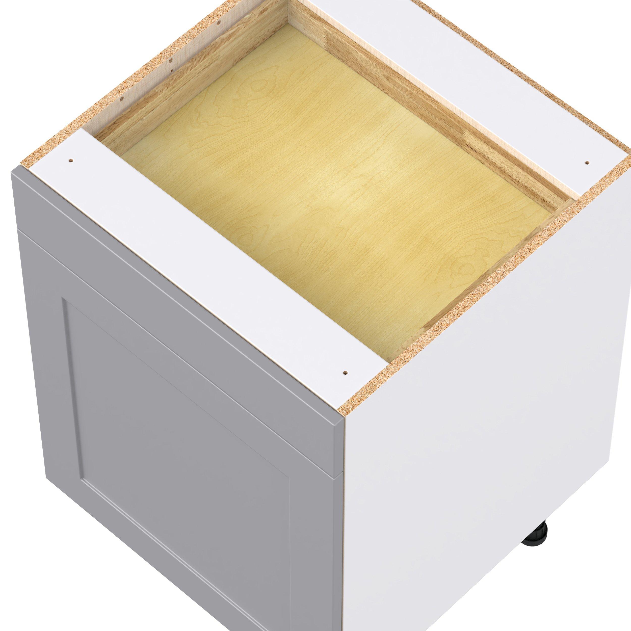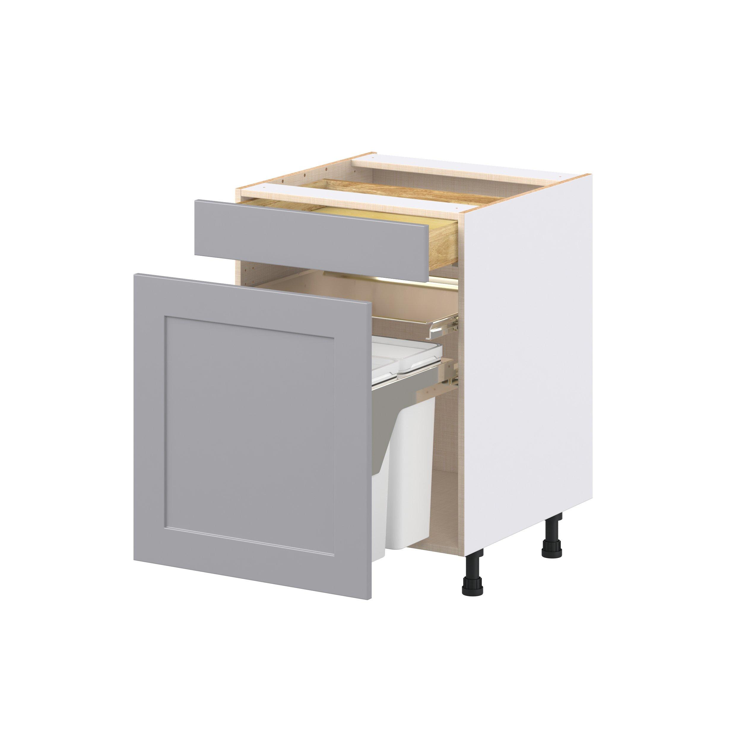Transform your space with the elegance of Candler wide-rail shaker styles. Both the warm white and slate gray options create a rich transitional backdrop to complement any decor. Crafted from one-piece MDF Studio Design Collection Candler 24 in. Painted Slate Gray Trash Can Pull-Out Base Cabinet is designed to resist hairline cracks while the easy-to-clean finish stands up to stains and moisture. Featuring 5-piece doors and dovetail drawer joints, these cabinets offer durability and elegance. This collection combines style with everyday storage solutions.