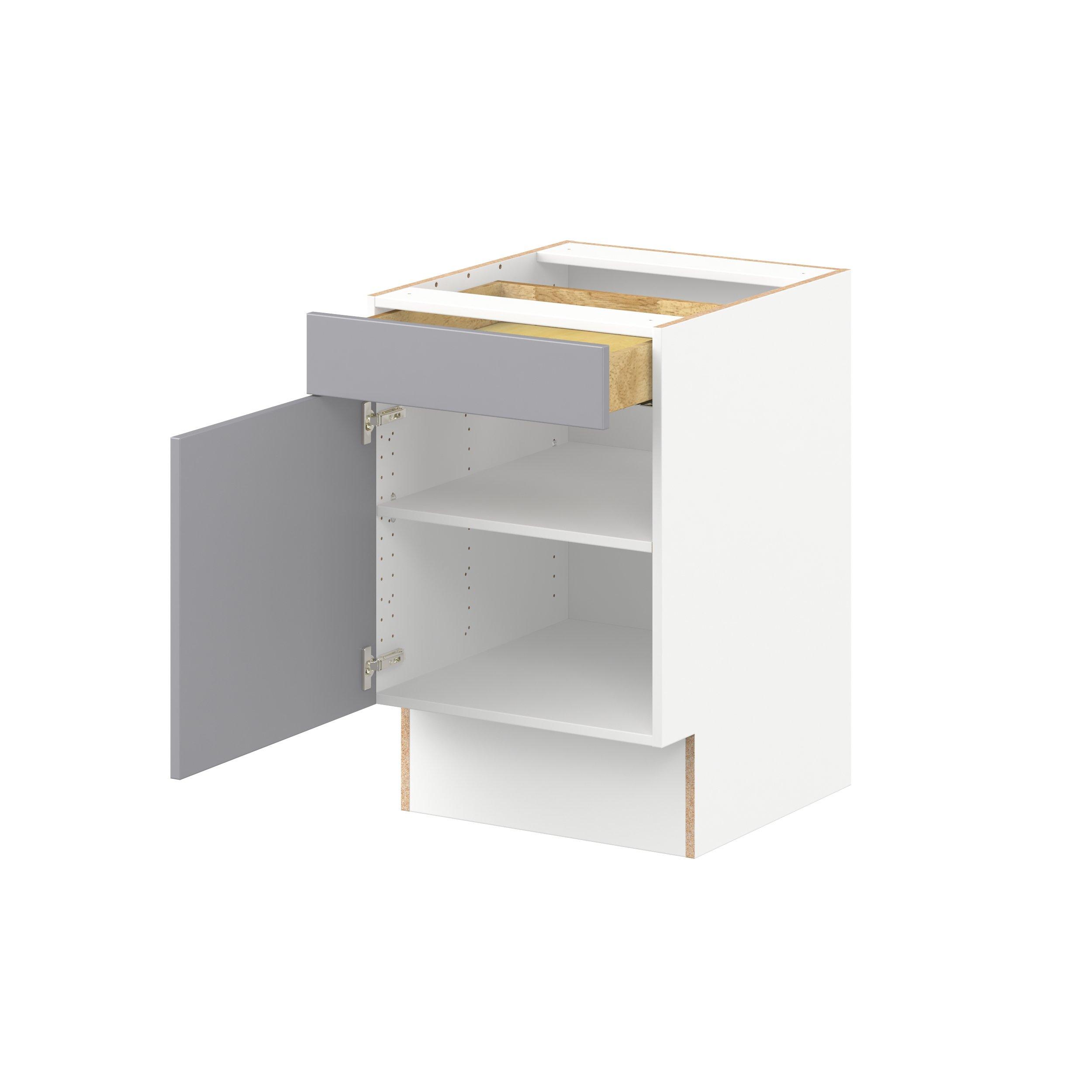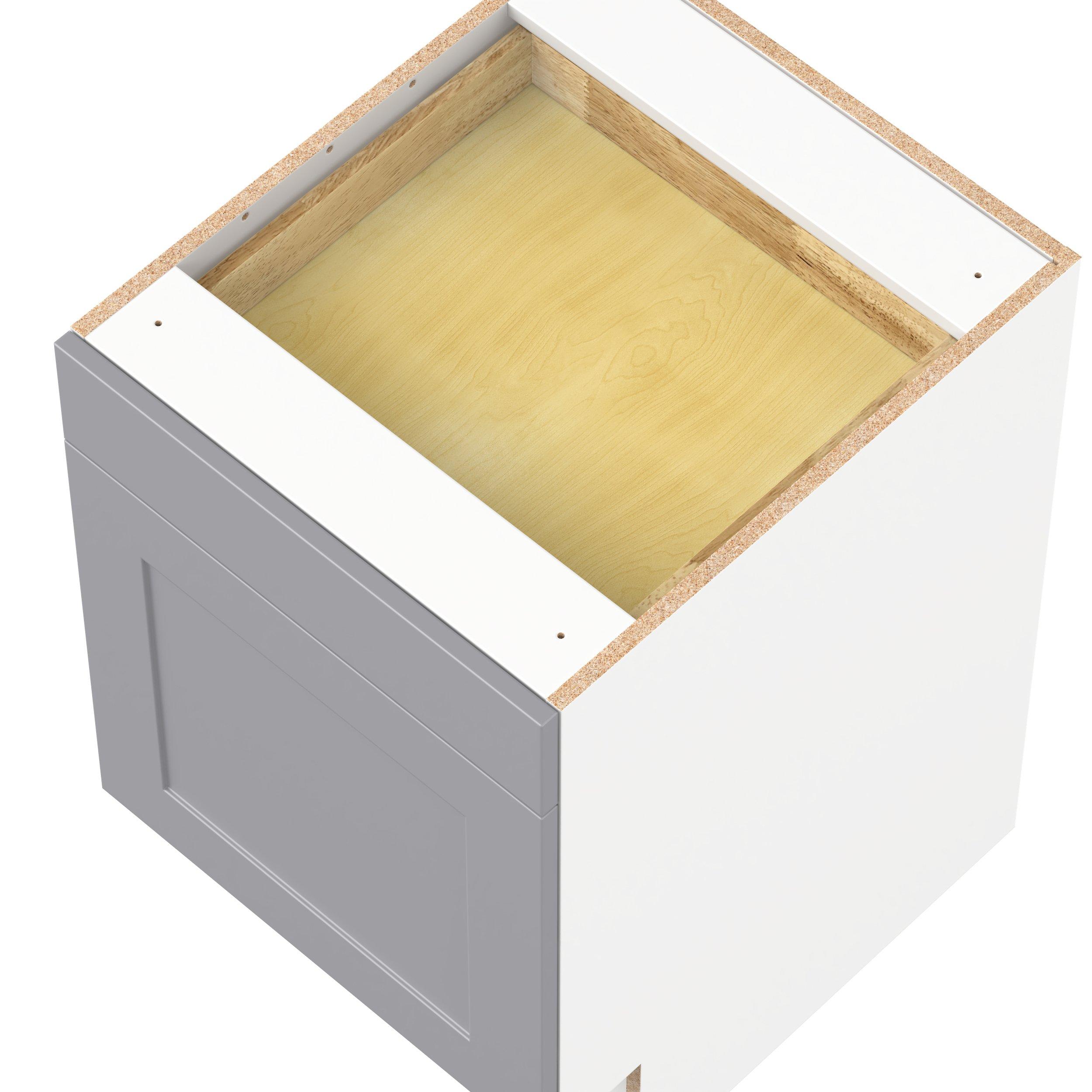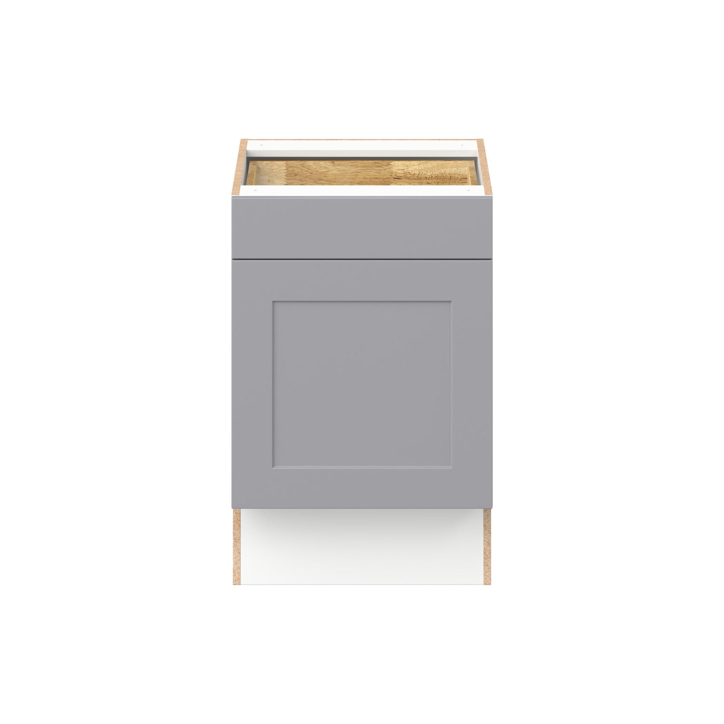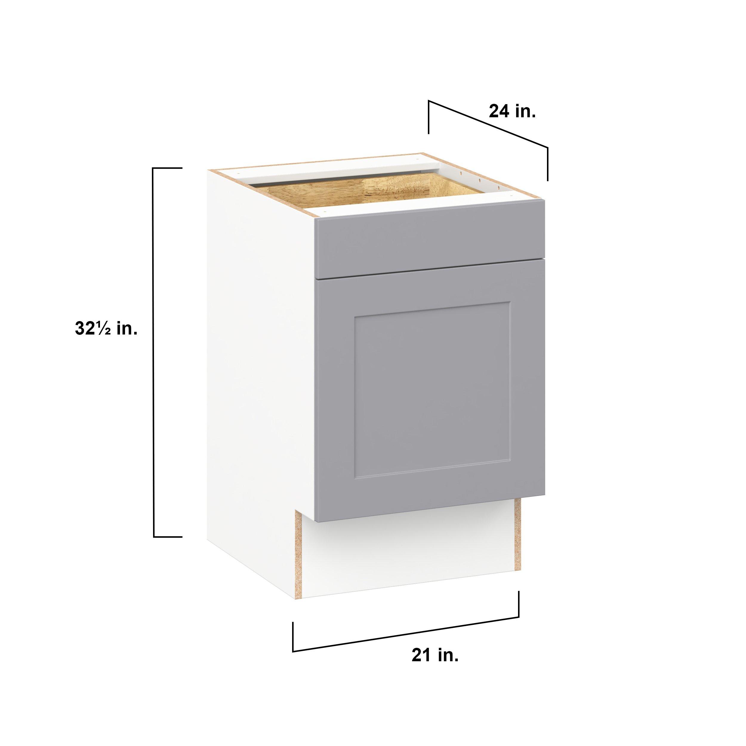 Transform your space with the elegance of Candler wide-rail shaker styles. Both the warm white and slate gray options create a rich transitional backdrop to complement any decor. Crafted from one-piece MDF Studio Design Collection Candler 21 in. Painted Slate Gray Door and Drawer Base Cabinet - ADA is designed to resist hairline cracks while the easy-to-clean finish stands up to stains and moisture. Featuring 5-piece doors and dovetail drawer joints, these cabinets offer durability and elegance. This collection combines style with everyday storage solutions.