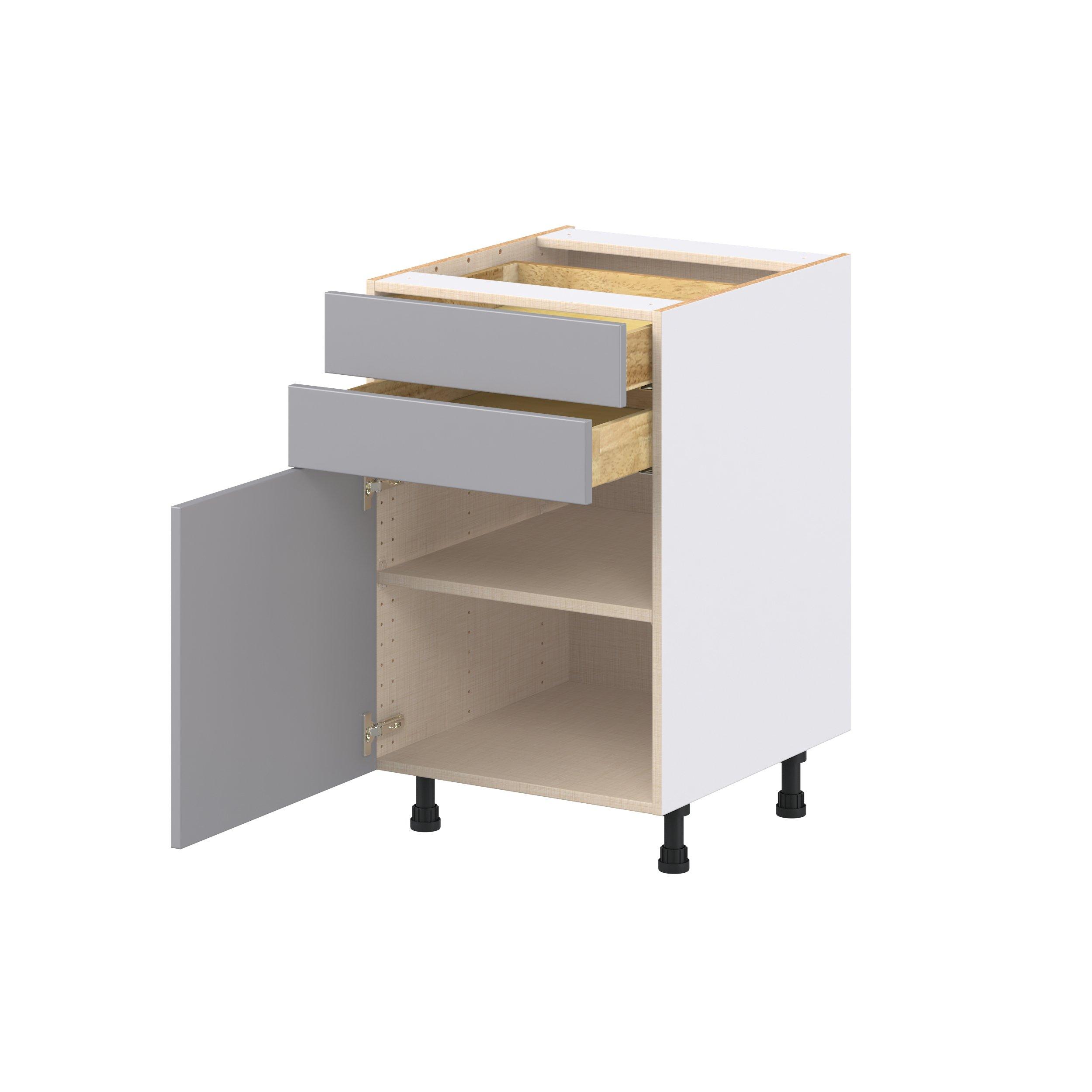 Transform your space with the elegance of Candler wide-rail shaker styles. Both the warm white and slate gray options create a rich transitional backdrop to complement any decor. Crafted from one-piece MDF Studio Design Collection Candler 21 in. Painted Slate Gray Door and Drawer Base Cabinet is designed to resist hairline cracks while the easy-to-clean finish stands up to stains and moisture. Featuring 5-piece doors and dovetail drawer joints, these cabinets offer durability and elegance. This collection combines style with everyday storage solutions.