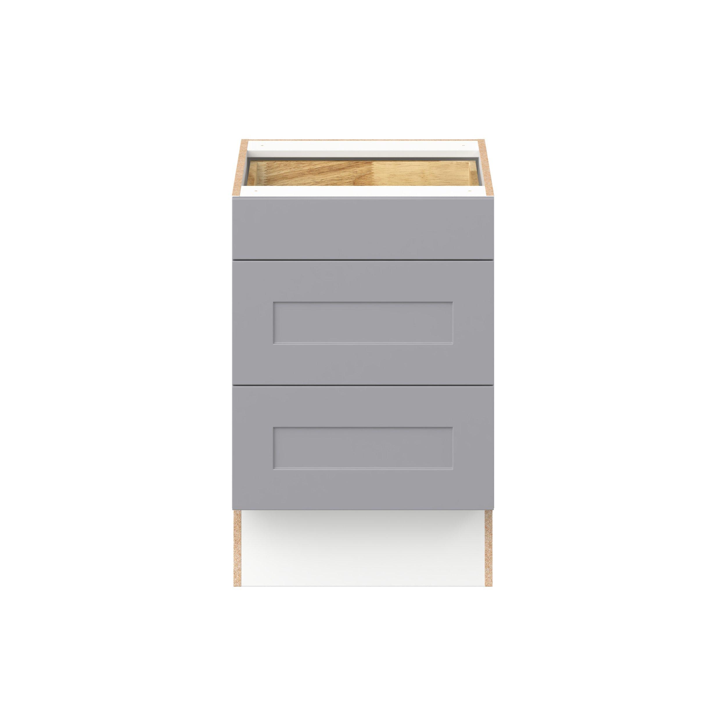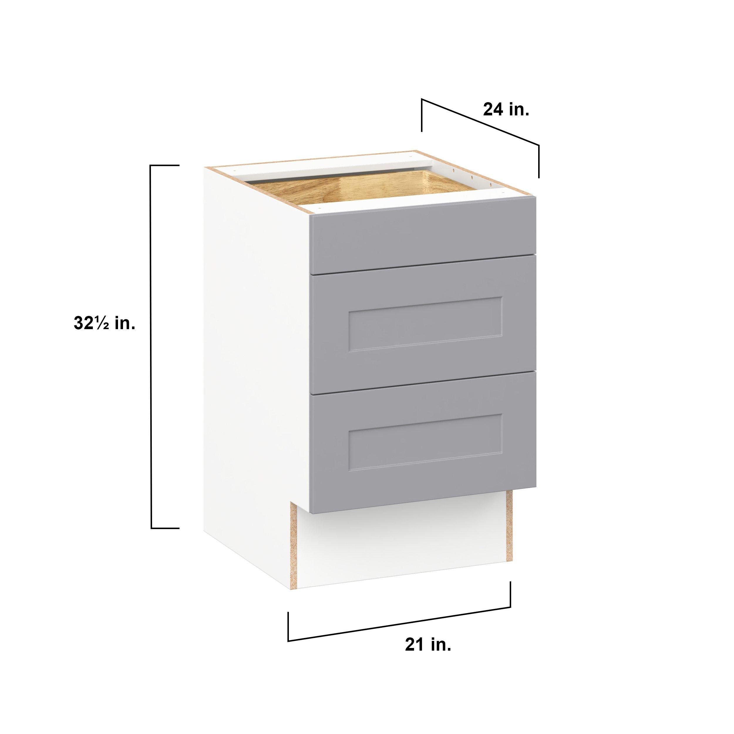 Transform your space with the elegance of Candler wide-rail shaker styles. Both the warm white and slate gray options create a rich transitional backdrop to complement any decor. Crafted from one-piece MDF Studio Design Collection Candler 21 in. Painted Slate Gray Drawer Base Cabinet - ADA is designed to resist hairline cracks while the easy-to-clean finish stands up to stains and moisture. Featuring 5-piece doors and dovetail drawer joints, these cabinets offer durability and elegance. This collection combines style with everyday storage solutions.