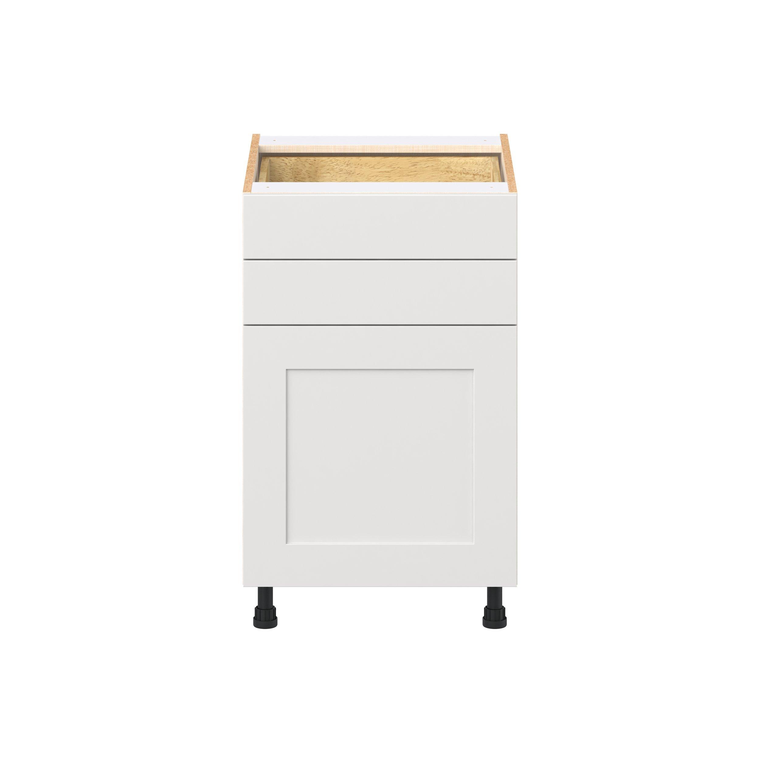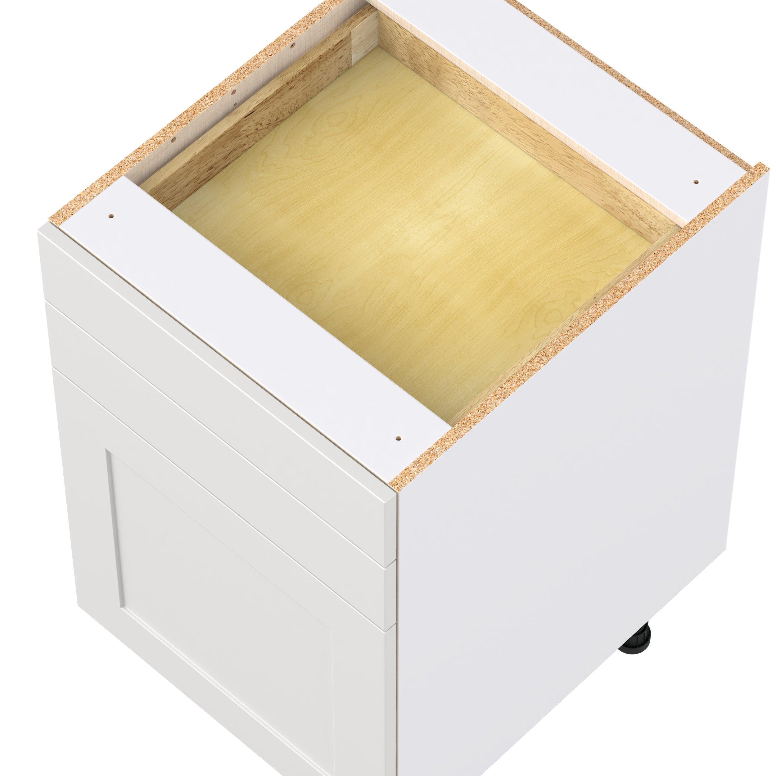 Transform your space with the elegance of Candler wide-rail shaker styles. Both the warm white and slate gray options create a rich transitional backdrop to complement any decor. Crafted from one-piece MDF Studio Design Collection Candler 21 in. Painted Warm White Door and Drawer Base Cabinet is designed to resist hairline cracks while the easy-to-clean finish stands up to stains and moisture. Featuring 5-piece doors and dovetail drawer joints, these cabinets offer durability and elegance. This collection combines style with everyday storage solutions.