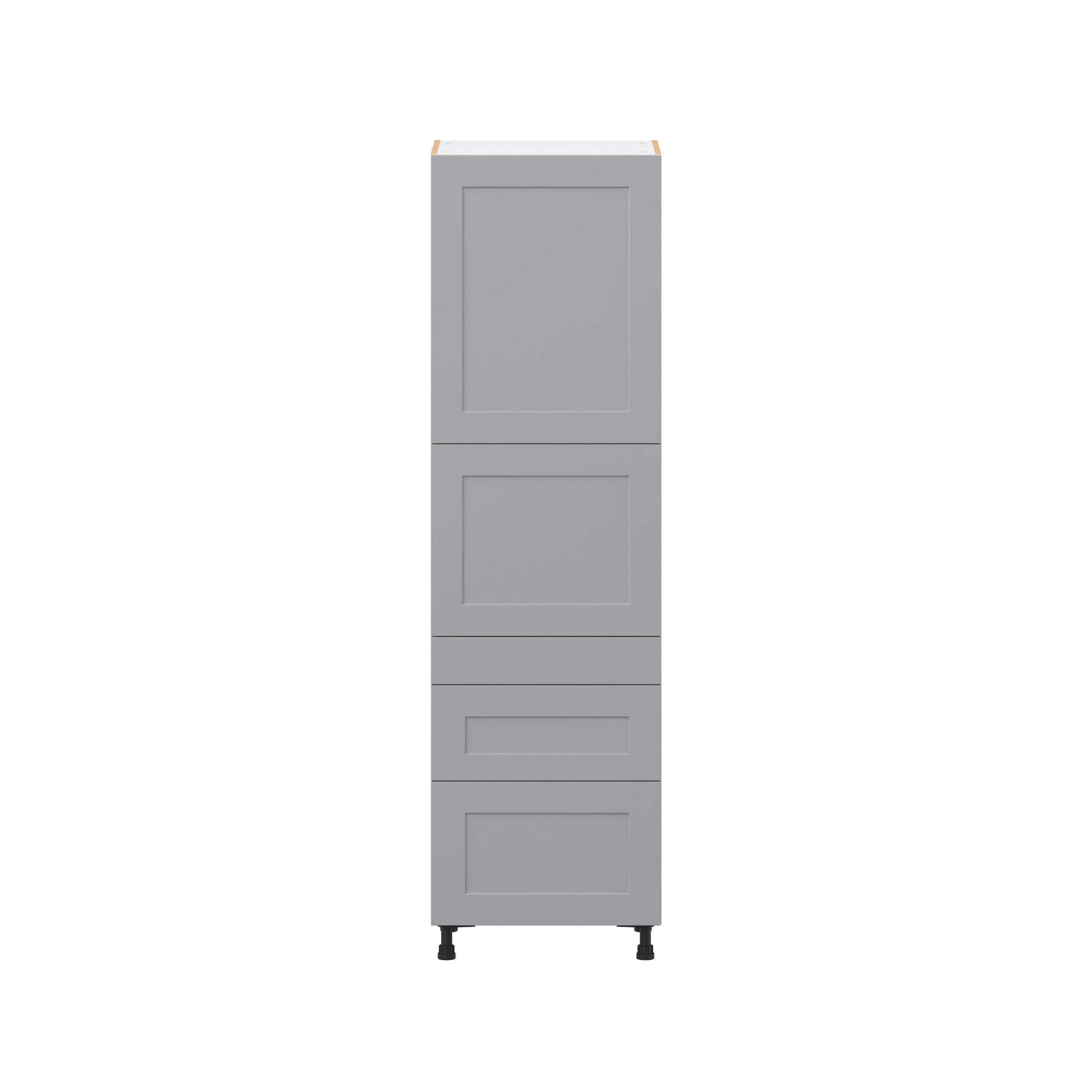 Transform your space with the elegance of Candler wide-rail shaker styles. Both the warm white and slate gray options create a rich transitional backdrop to complement any decor. Crafted from one-piece MDF Studio Design Collection Candler 24 in. Painted Slate Gray Door and Drawer Pantry Cabinet with Inner Pull-Out is designed to resist hairline cracks while the easy-to-clean finish stands up to stains and moisture. Featuring 5-piece doors and dovetail drawer joints, these cabinets offer durability and elegance. This collection combines style with everyday storage solutions.