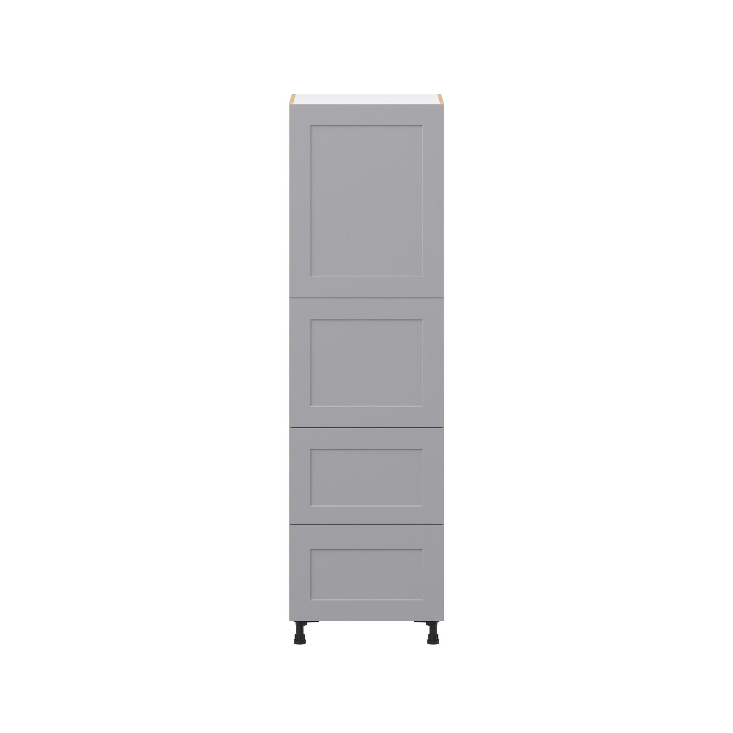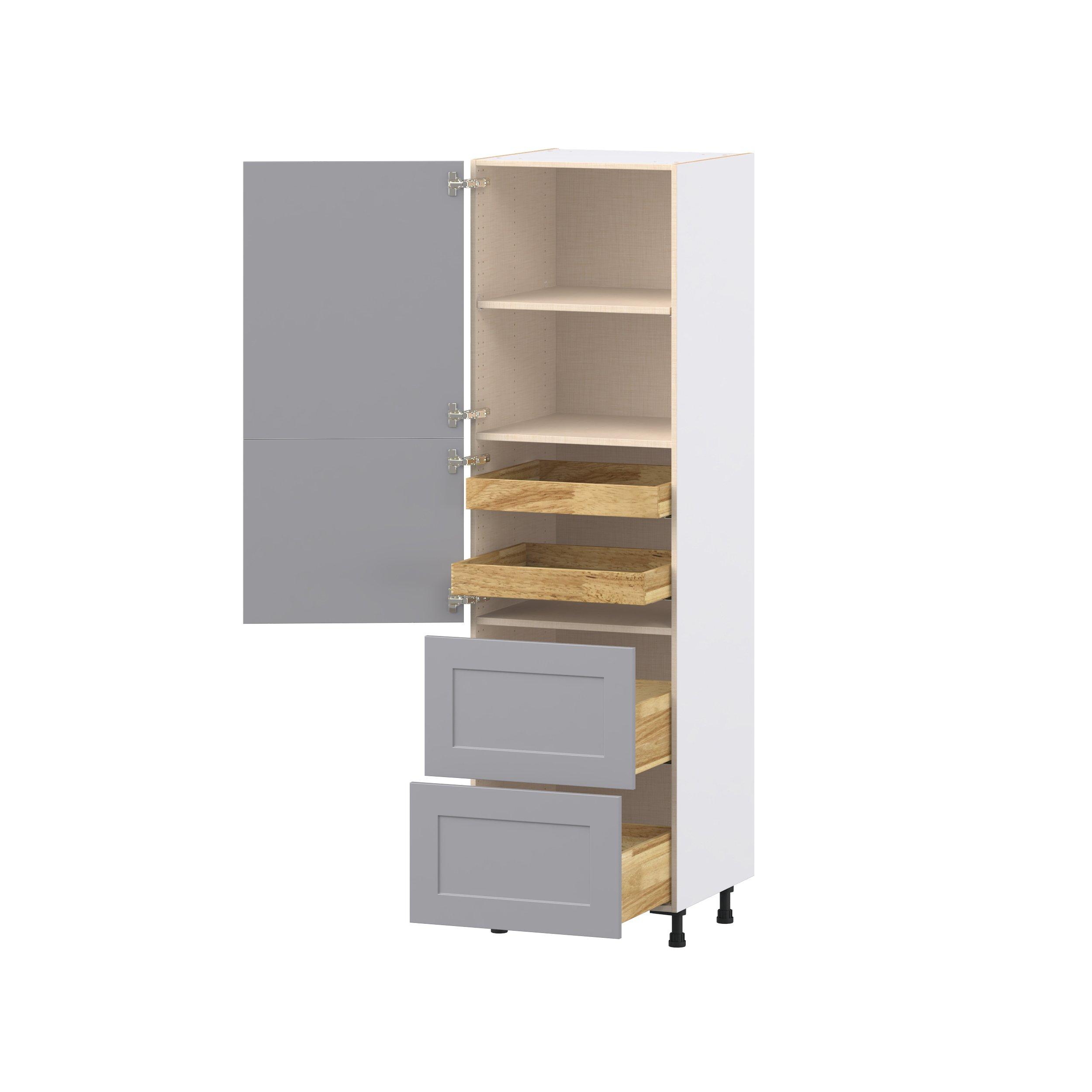 Transform your space with the elegance of Candler wide-rail shaker styles. Both the warm white and slate gray options create a rich transitional backdrop to complement any decor. Crafted from one-piece MDF Studio Design Collection Candler 24 in. Painted Slate Gray Door and Drawer Pantry Cabinet with Inner Pull-Out is designed to resist hairline cracks while the easy-to-clean finish stands up to stains and moisture. Featuring 5-piece doors and dovetail drawer joints, these cabinets offer durability and elegance. This collection combines style with everyday storage solutions.