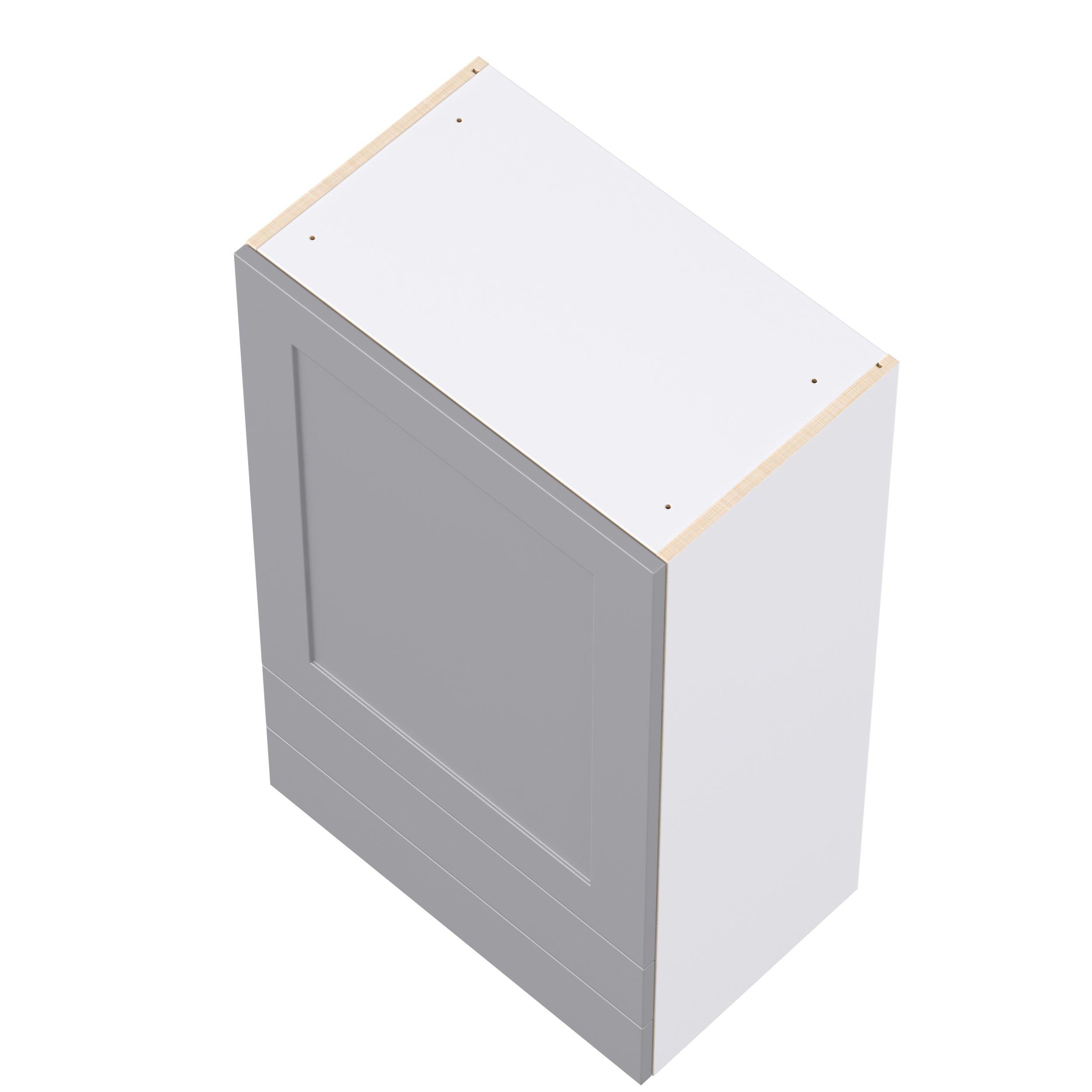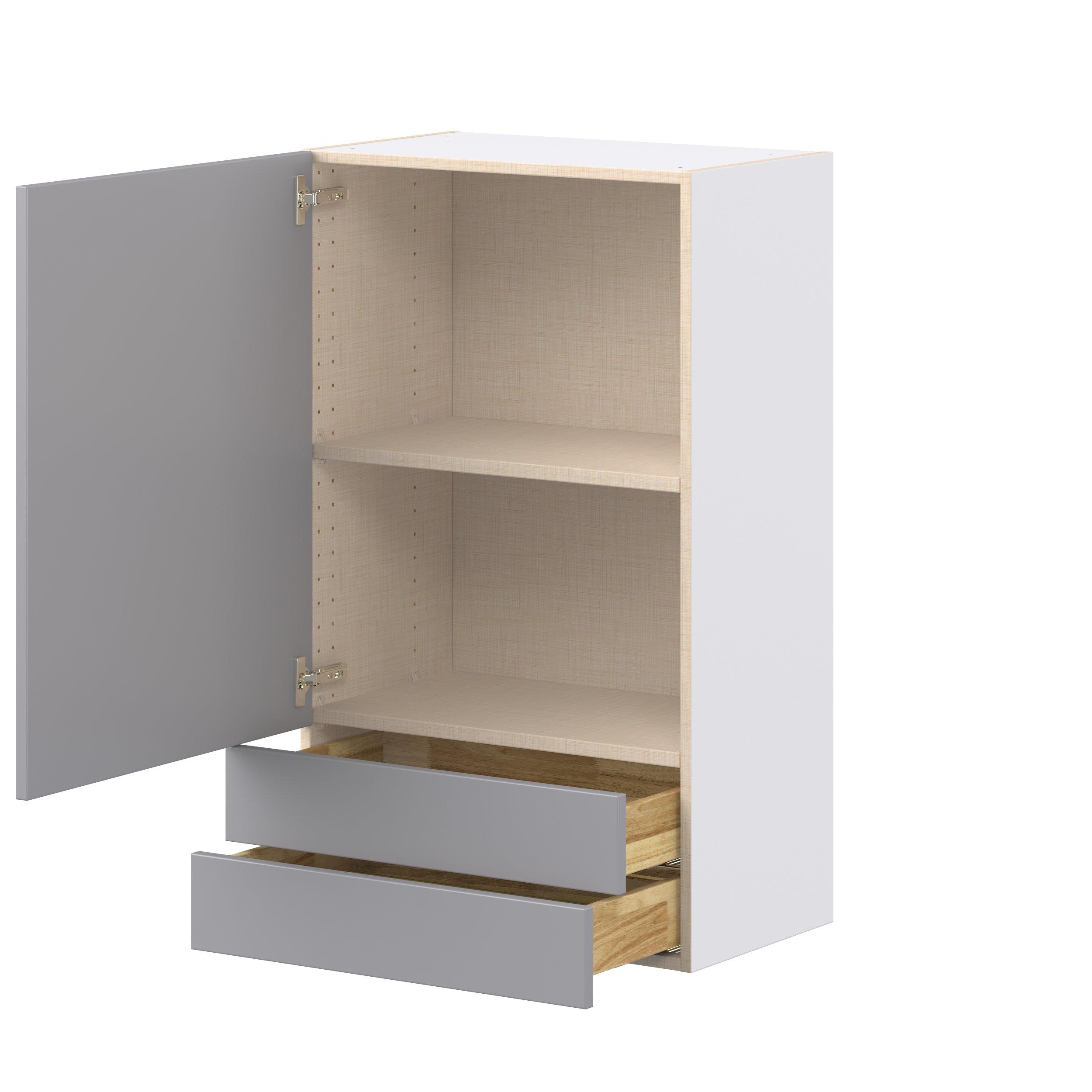 Transform your space with the elegance of Candler wide-rail shaker styles. Both the warm white and slate gray options create a rich transitional backdrop to complement any decor. Crafted from one-piece MDF Studio Design Collection Candler 24 in. Painted Slate Gray Door and Drawer Wall Cabinet is designed to resist hairline cracks while the easy-to-clean finish stands up to stains and moisture. Featuring 5-piece doors and dovetail drawer joints, these cabinets offer durability and elegance. This collection combines style with everyday storage solutions.