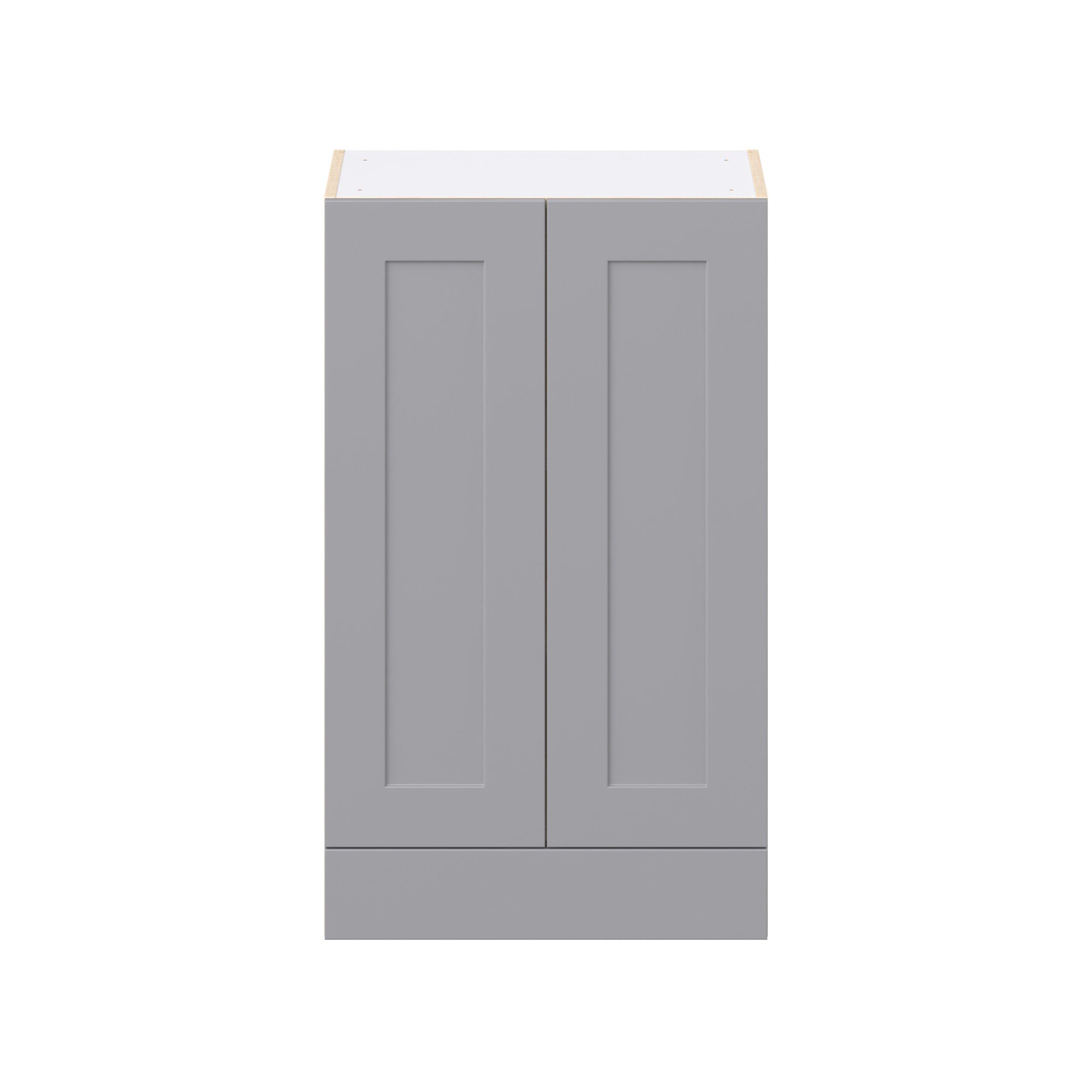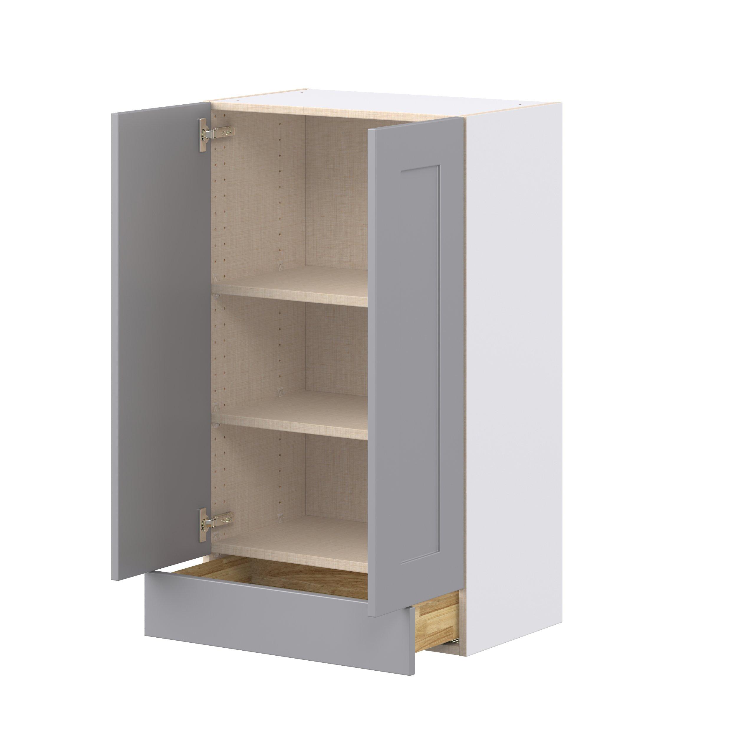 Transform your space with the elegance of Candler wide-rail shaker styles. Both the warm white and slate gray options create a rich transitional backdrop to complement any decor. Crafted from one-piece MDF Studio Design Collection Candler 24 in. Painted Slate Gray Door and Drawer Wall Cabinet is designed to resist hairline cracks while the easy-to-clean finish stands up to stains and moisture. Featuring 5-piece doors and dovetail drawer joints, these cabinets offer durability and elegance. This collection combines style with everyday storage solutions.