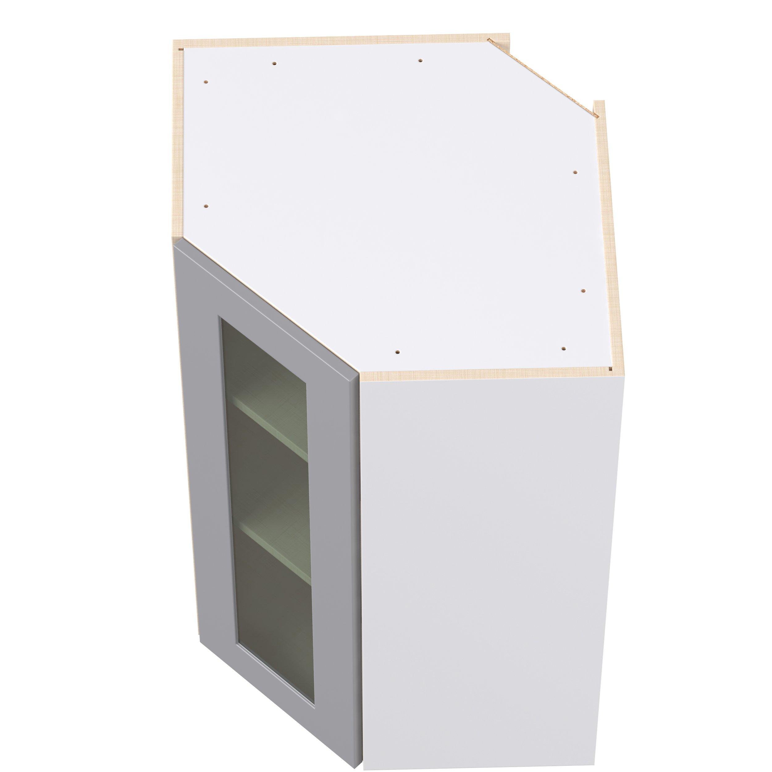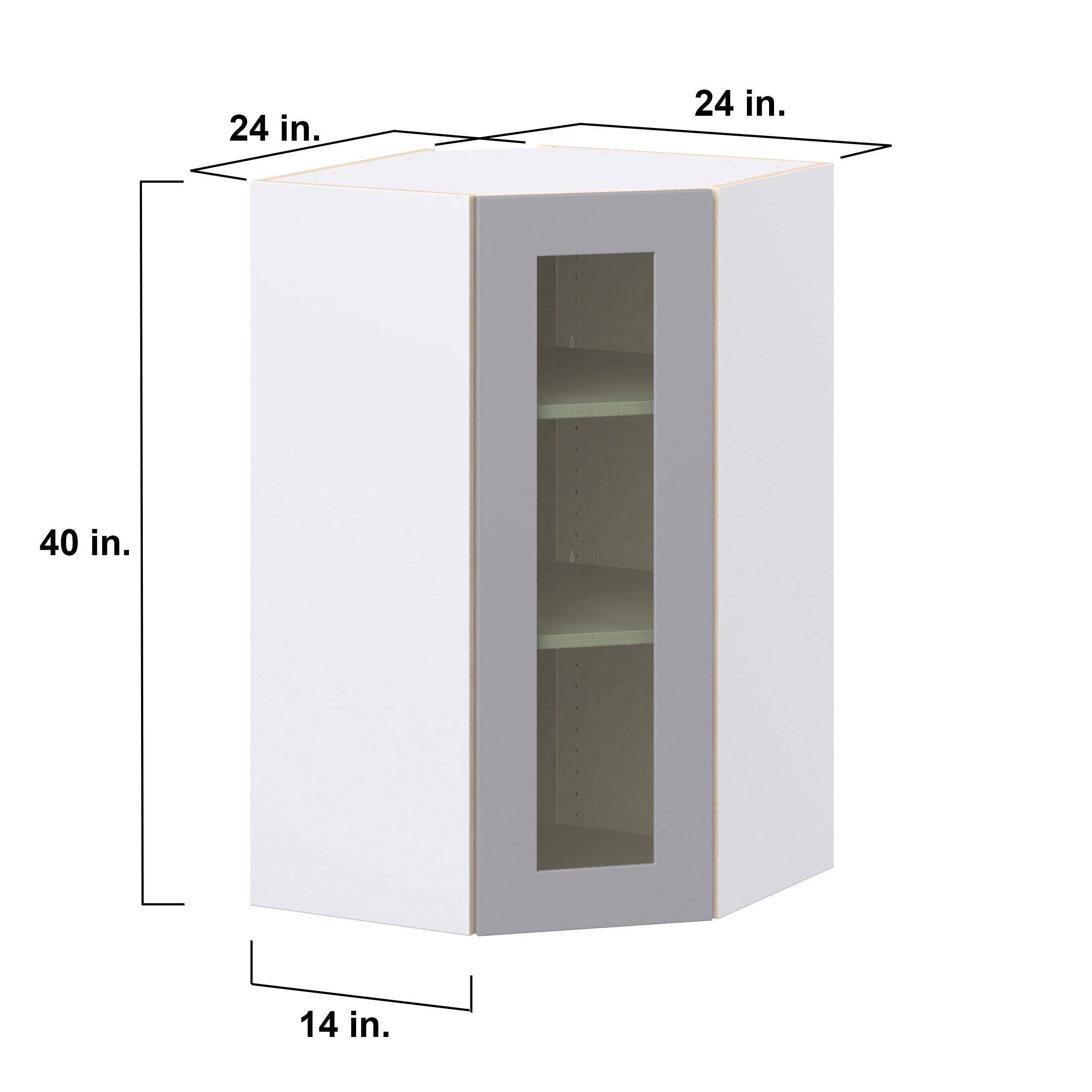 Transform your space with the elegance of Candler wide-rail shaker styles. Both the warm white and slate gray options create a rich transitional backdrop to complement any decor. Crafted from one-piece MDF Studio Design Collection Candler 24 in. Painted Slate Gray Wall Angle Corner Cabinet with Glass Door is designed to resist hairline cracks while the easy-to-clean finish stands up to stains and moisture. Featuring 5-piece doors and dovetail drawer joints, these cabinets offer durability and elegance. This collection combines style with everyday storage solutions.