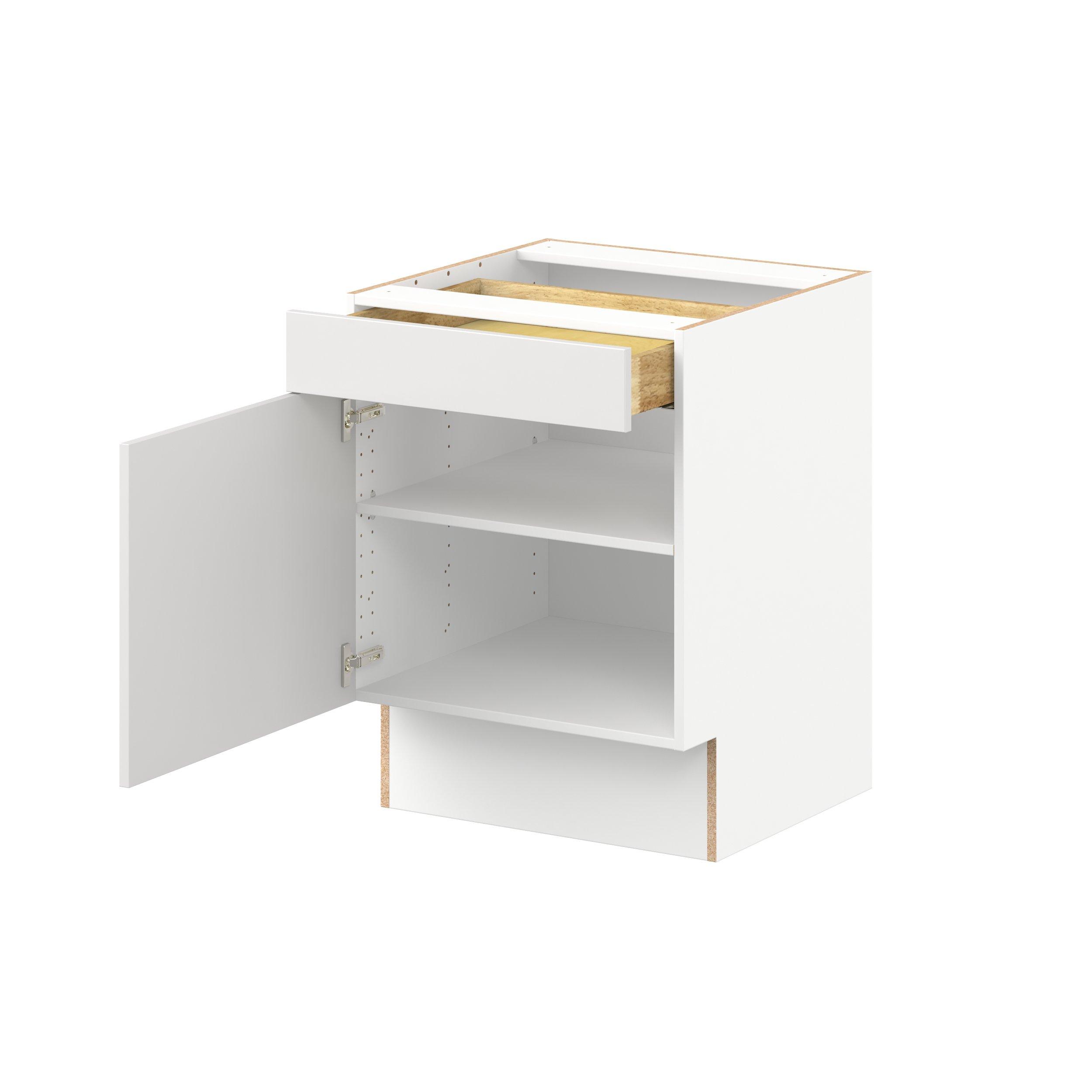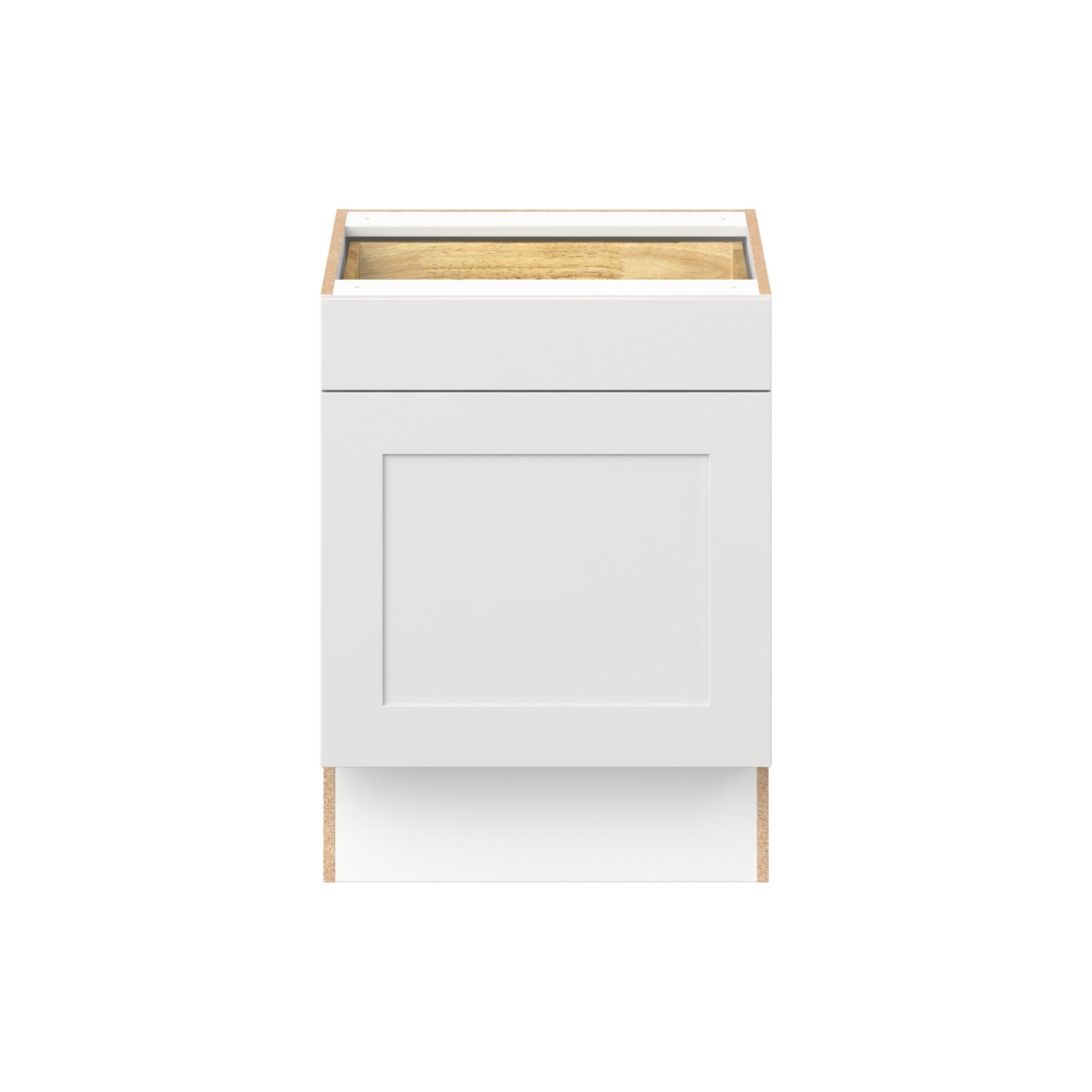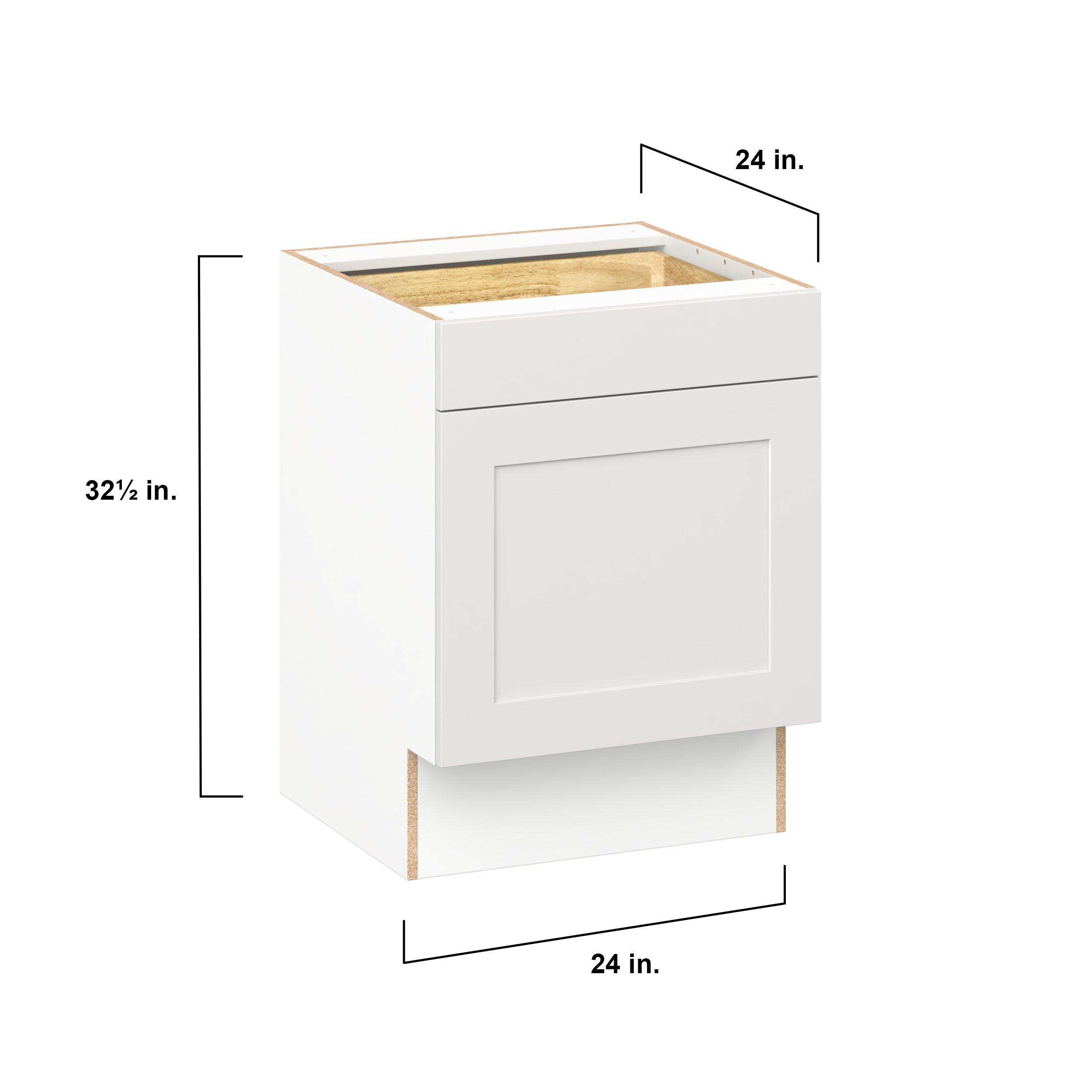 Transform your space with the elegance of Candler wide-rail shaker styles. Both the warm white and slate gray options create a rich transitional backdrop to complement any decor. Crafted from one-piece MDF Studio Design Collection Candler 24 in. Painted Warm White Door and Drawer Base Cabinet - ADA is designed to resist hairline cracks while the easy-to-clean finish stands up to stains and moisture. Featuring 5-piece doors and dovetail drawer joints, these cabinets offer durability and elegance. This collection combines style with everyday storage solutions.