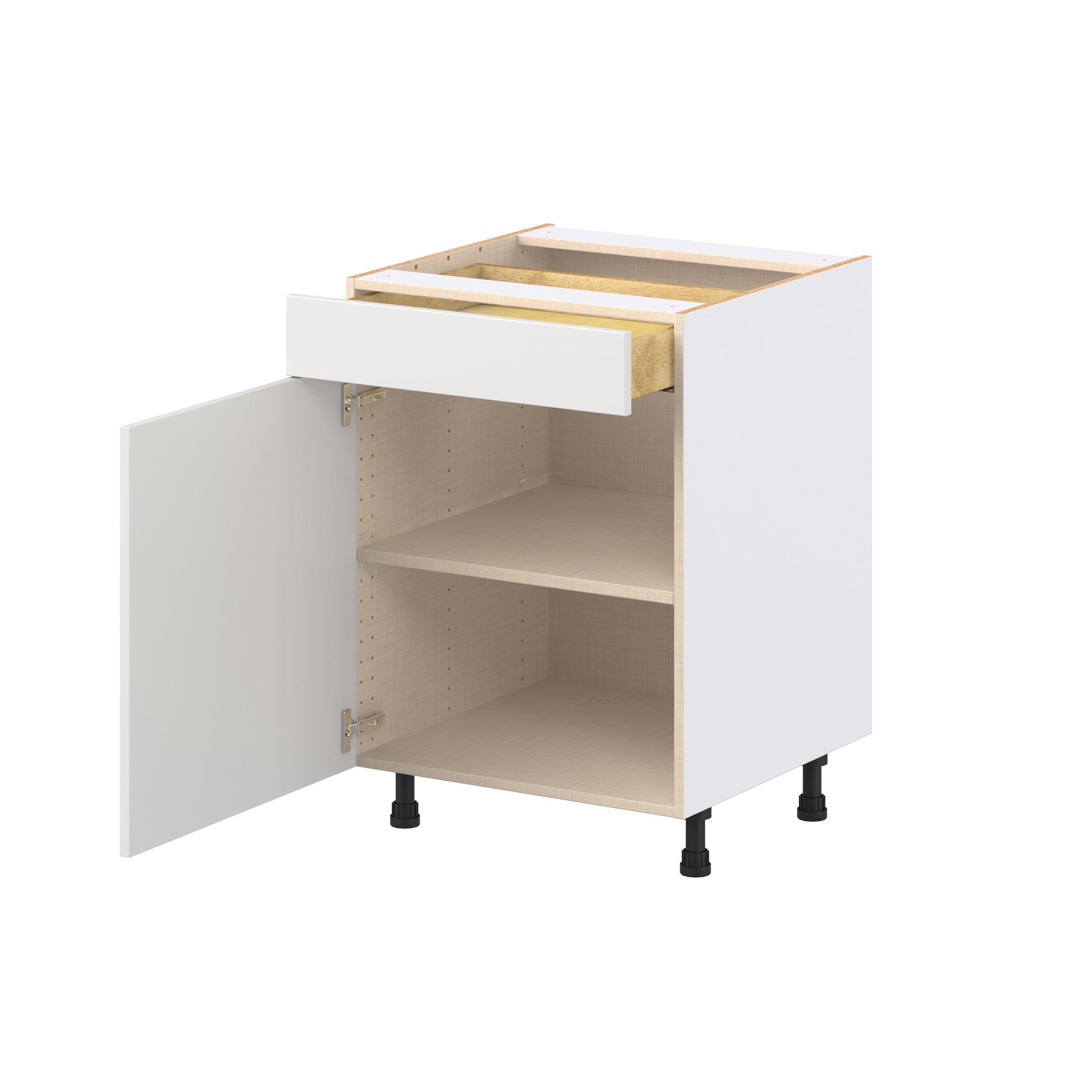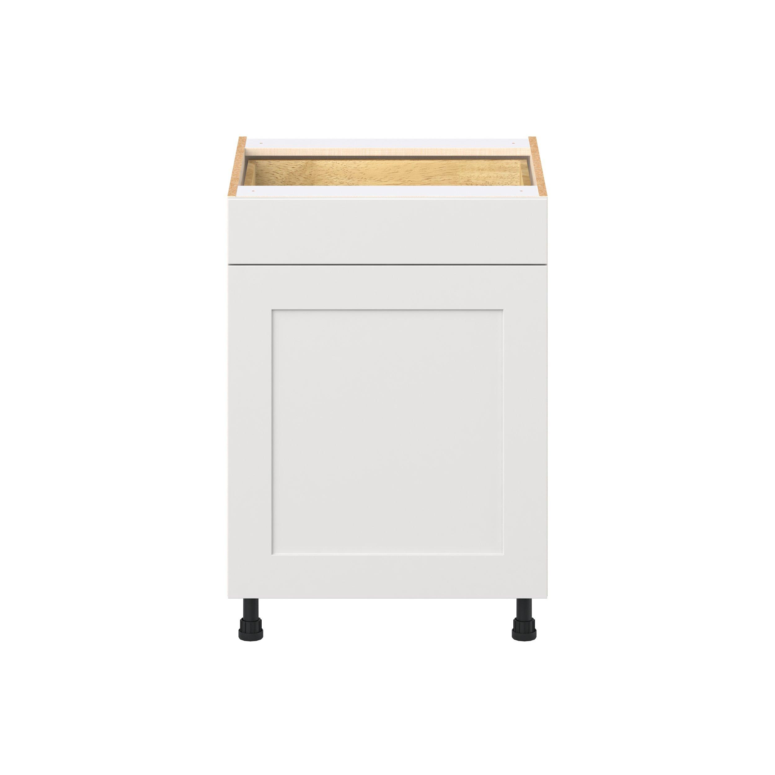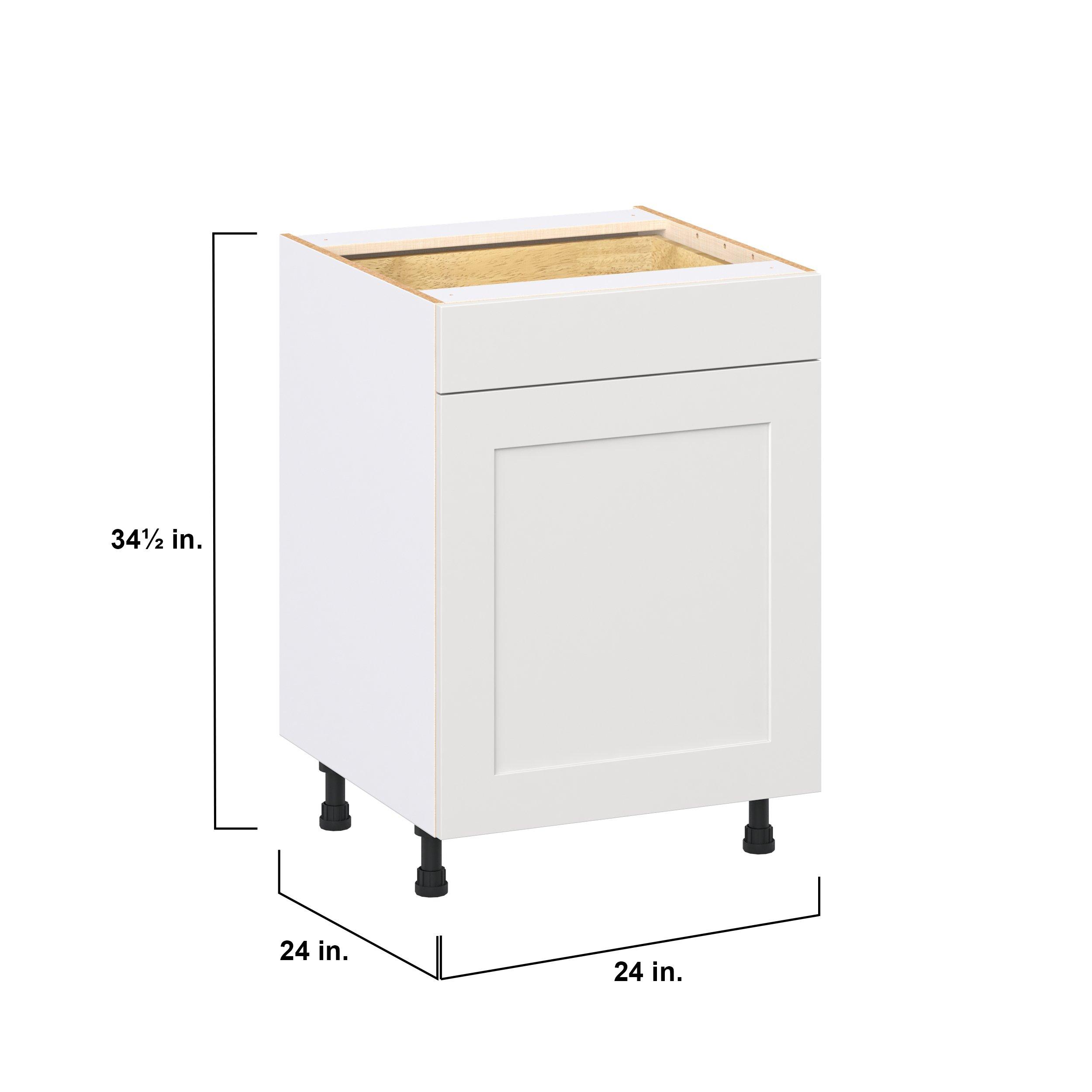 Transform your space with the elegance of Candler wide-rail shaker styles. Both the warm white and slate gray options create a rich transitional backdrop to complement any decor. Crafted from one-piece MDF Studio Design Collection Candler 24 in. Painted Warm White Door and Drawer Base Cabinet is designed to resist hairline cracks while the easy-to-clean finish stands up to stains and moisture. Featuring 5-piece doors and dovetail drawer joints, these cabinets offer durability and elegance. This collection combines style with everyday storage solutions.