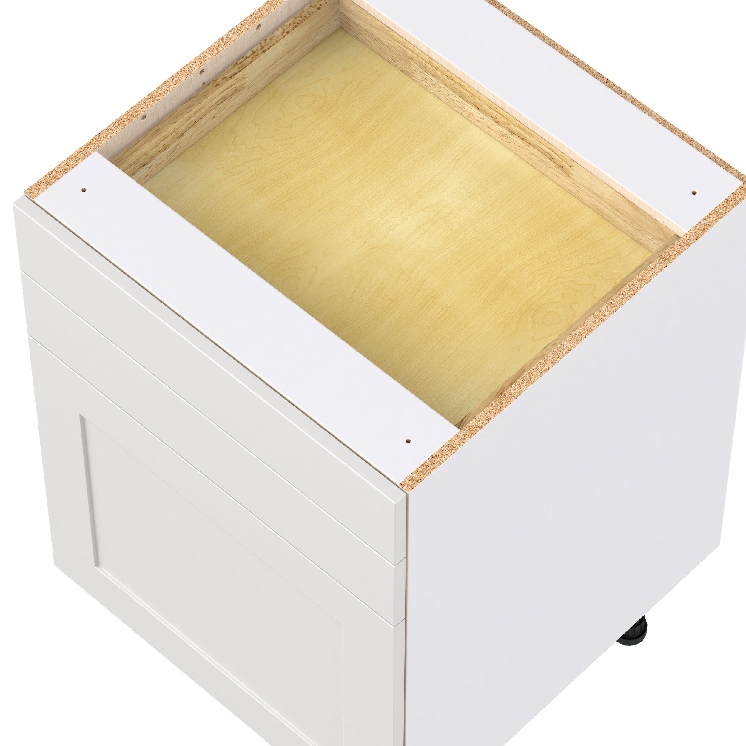 Transform your space with the elegance of Candler wide-rail shaker styles. Both the warm white and slate gray options create a rich transitional backdrop to complement any decor. Crafted from one-piece MDF Studio Design Collection Candler 24 in. Painted Warm White Door and Drawer Base Cabinet is designed to resist hairline cracks while the easy-to-clean finish stands up to stains and moisture. Featuring 5-piece doors and dovetail drawer joints, these cabinets offer durability and elegance. This collection combines style with everyday storage solutions.