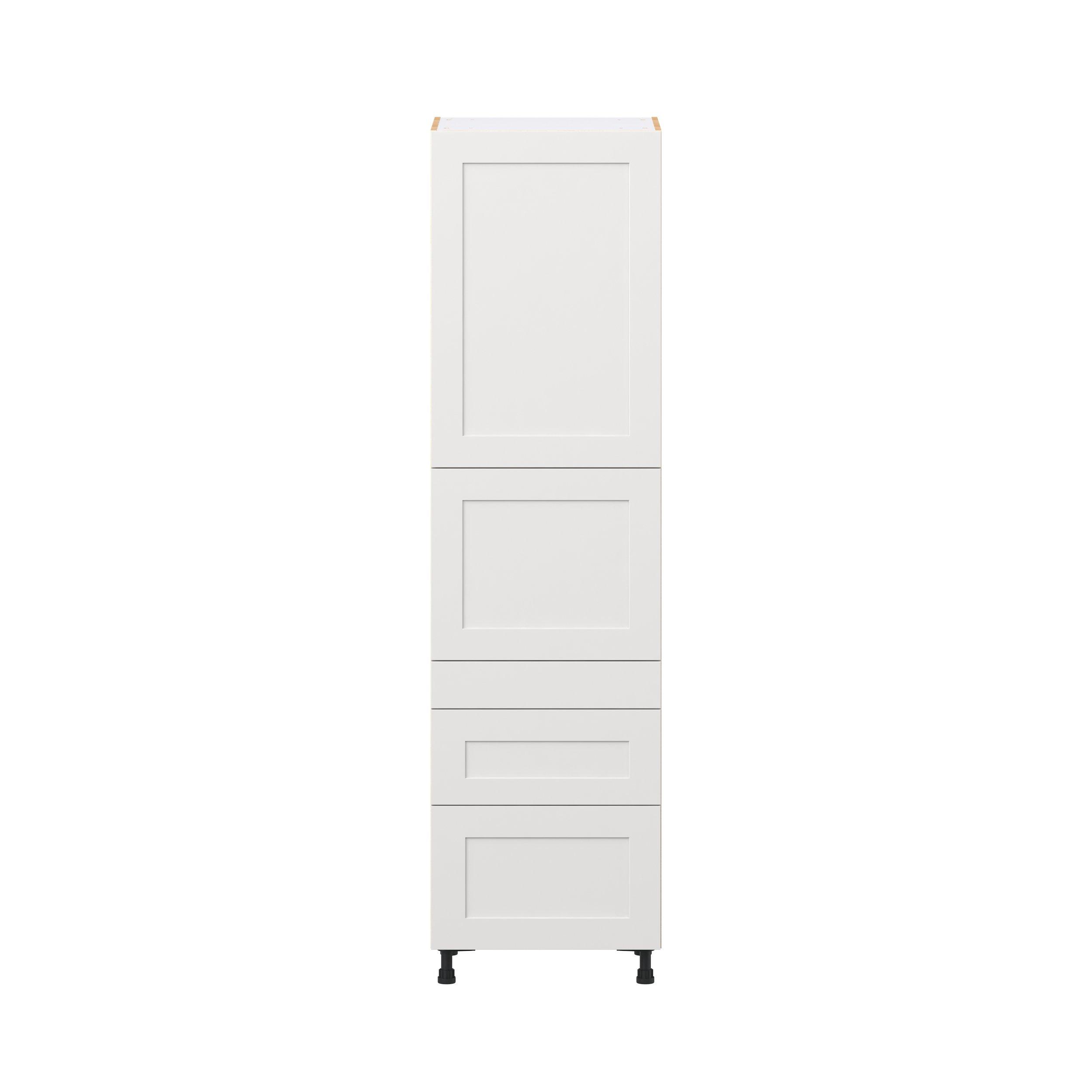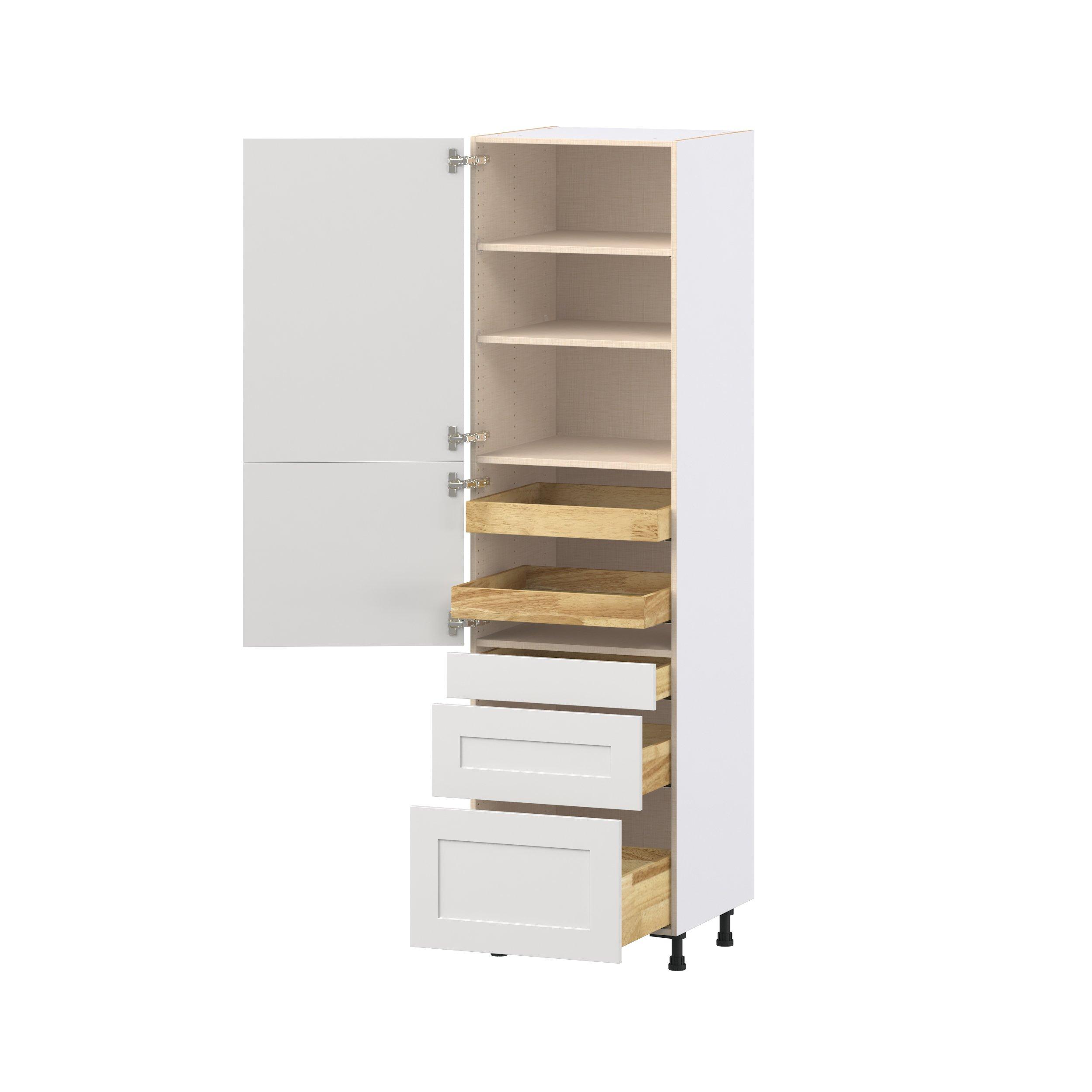 Transform your space with the elegance of Candler wide-rail shaker styles. Both the warm white and slate gray options create a rich transitional backdrop to complement any decor. Crafted from one-piece MDF Studio Design Collection Candler 24 in. Painted Warm White Door and Drawer Pantry Cabinet with Inner Pull-Out is designed to resist hairline cracks while the easy-to-clean finish stands up to stains and moisture. Featuring 5-piece doors and dovetail drawer joints, these cabinets offer durability and elegance. This collection combines style with everyday storage solutions.