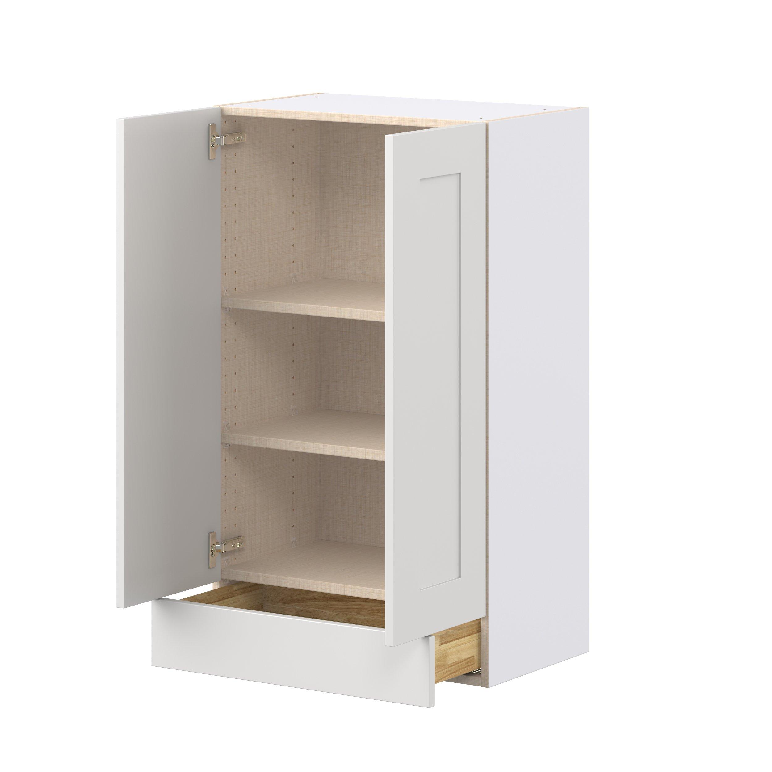 Transform your space with the elegance of Candler wide-rail shaker styles. Both the warm white and slate gray options create a rich transitional backdrop to complement any decor. Crafted from one-piece MDF Studio Design Collection Candler 24 in. Painted Warm White Door and Drawer Wall Cabinet is designed to resist hairline cracks while the easy-to-clean finish stands up to stains and moisture. Featuring 5-piece doors and dovetail drawer joints, these cabinets offer durability and elegance. This collection combines style with everyday storage solutions.