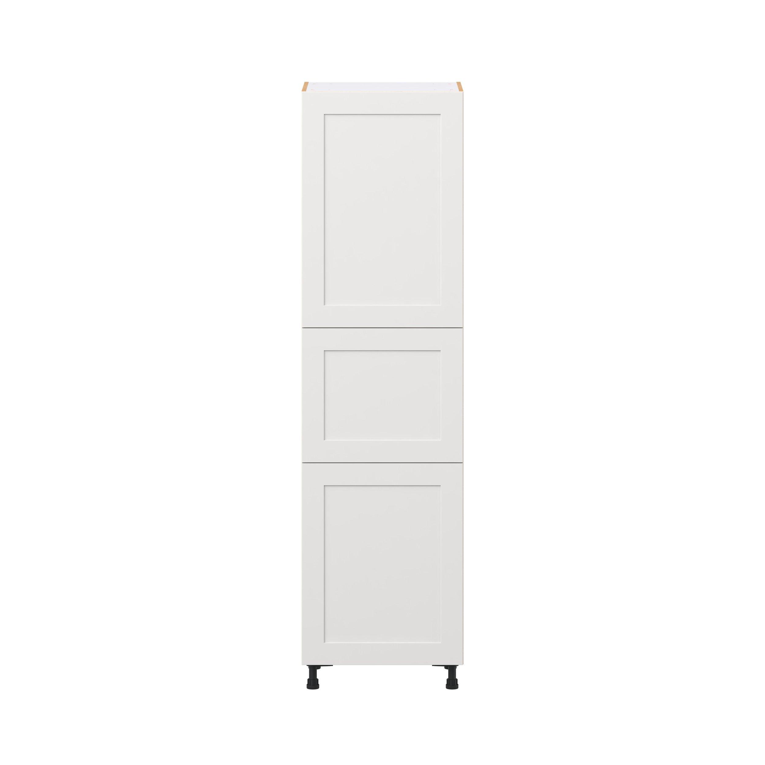 Transform your space with the elegance of Candler wide-rail shaker styles. Both the warm white and slate gray options create a rich transitional backdrop to complement any decor. Crafted from one-piece MDF Studio Design Collection Candler 24 in. Painted Warm White Door Pantry Cabinet is designed to resist hairline cracks while the easy-to-clean finish stands up to stains and moisture. Featuring 5-piece doors and dovetail drawer joints, these cabinets offer durability and elegance. This collection combines style with everyday storage solutions.
