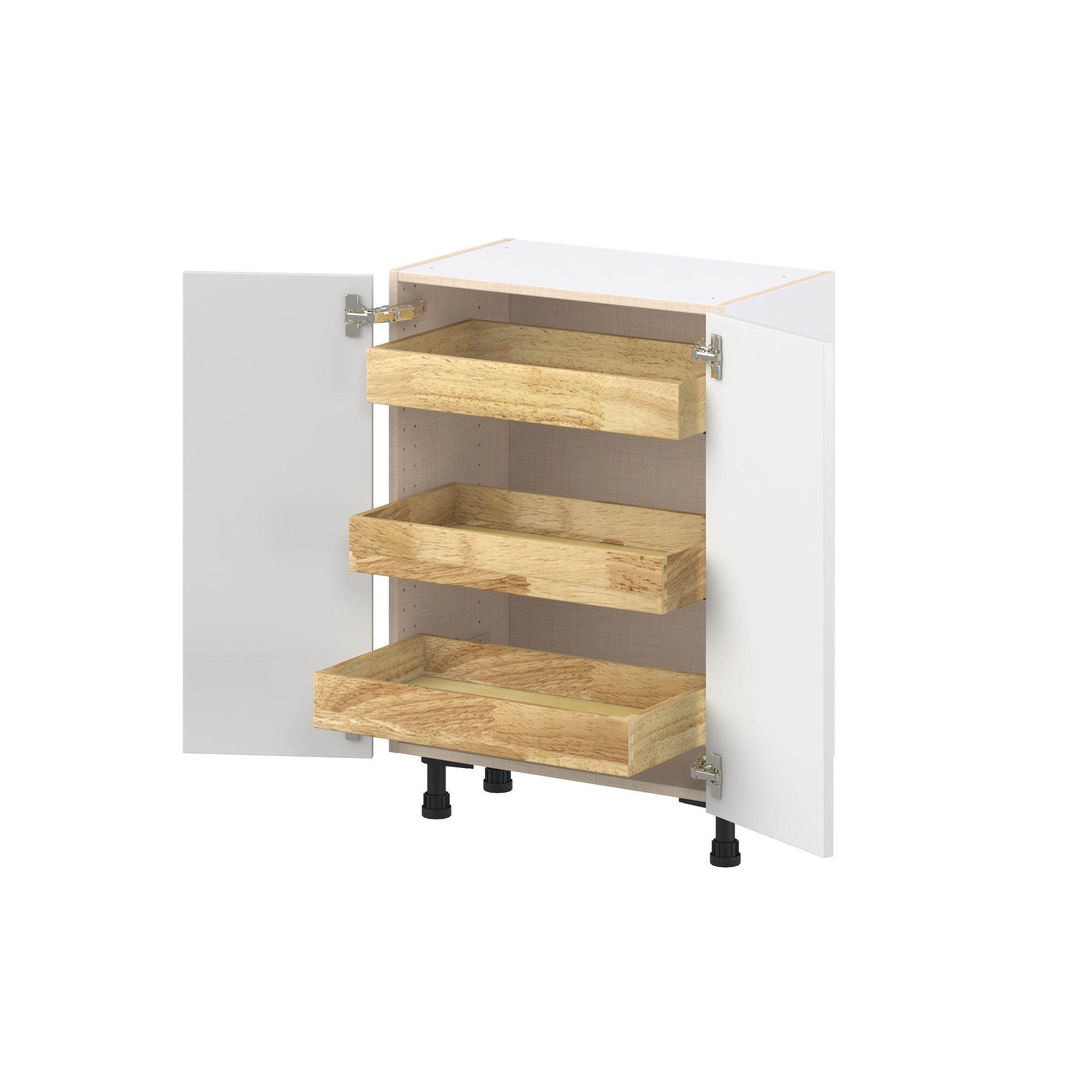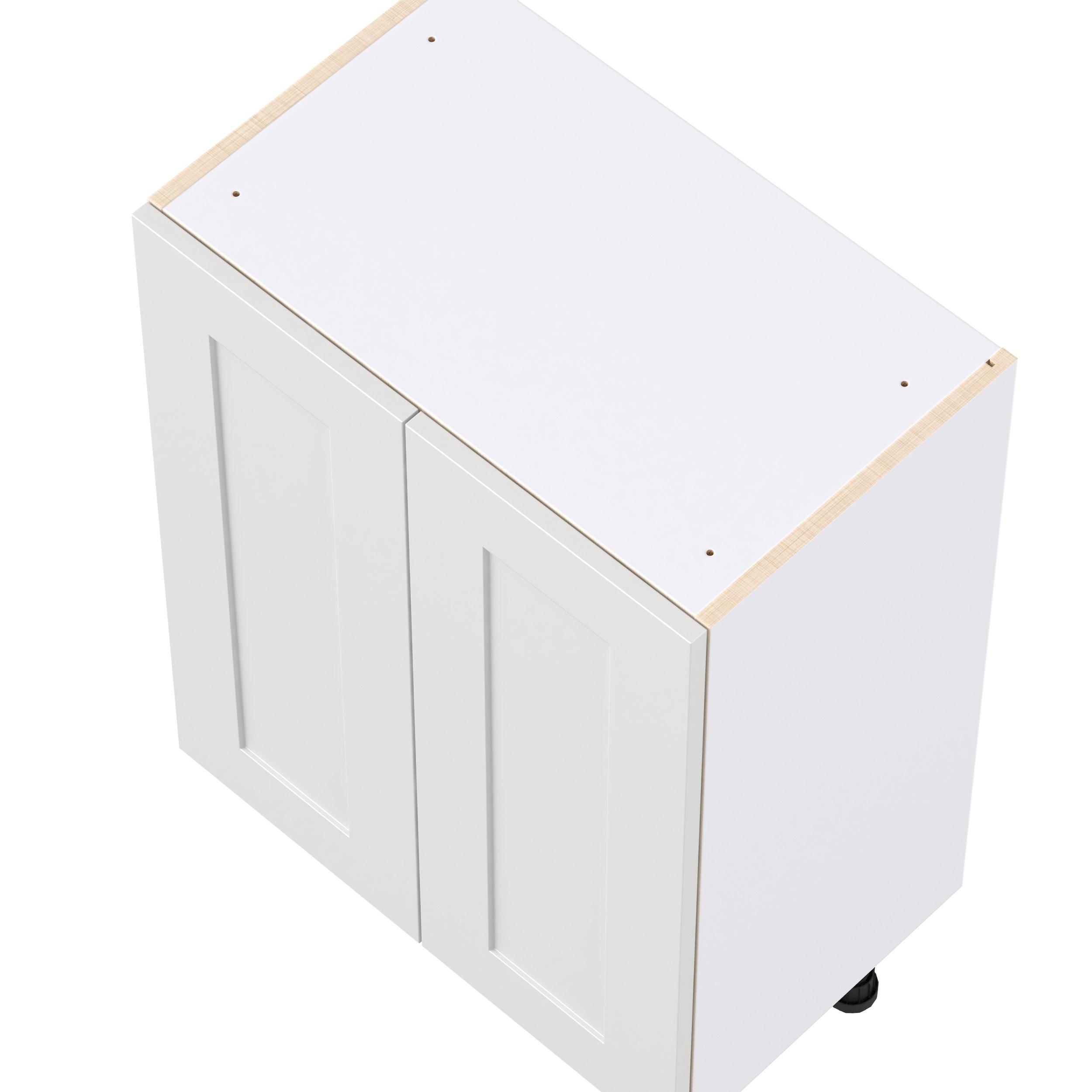 Transform your space with the elegance of Candler wide-rail shaker styles. Both the warm white and slate gray options create a rich transitional backdrop to complement any decor. Crafted from one-piece MDF Studio Design Collection Candler 24 in. Painted Warm White Shallow Base Cabinet with Inner Pull-Out Drawer is designed to resist hairline cracks while the easy-to-clean finish stands up to stains and moisture. Featuring 5-piece doors and dovetail drawer joints, these cabinets offer durability and elegance. This collection combines style with everyday storage solutions.