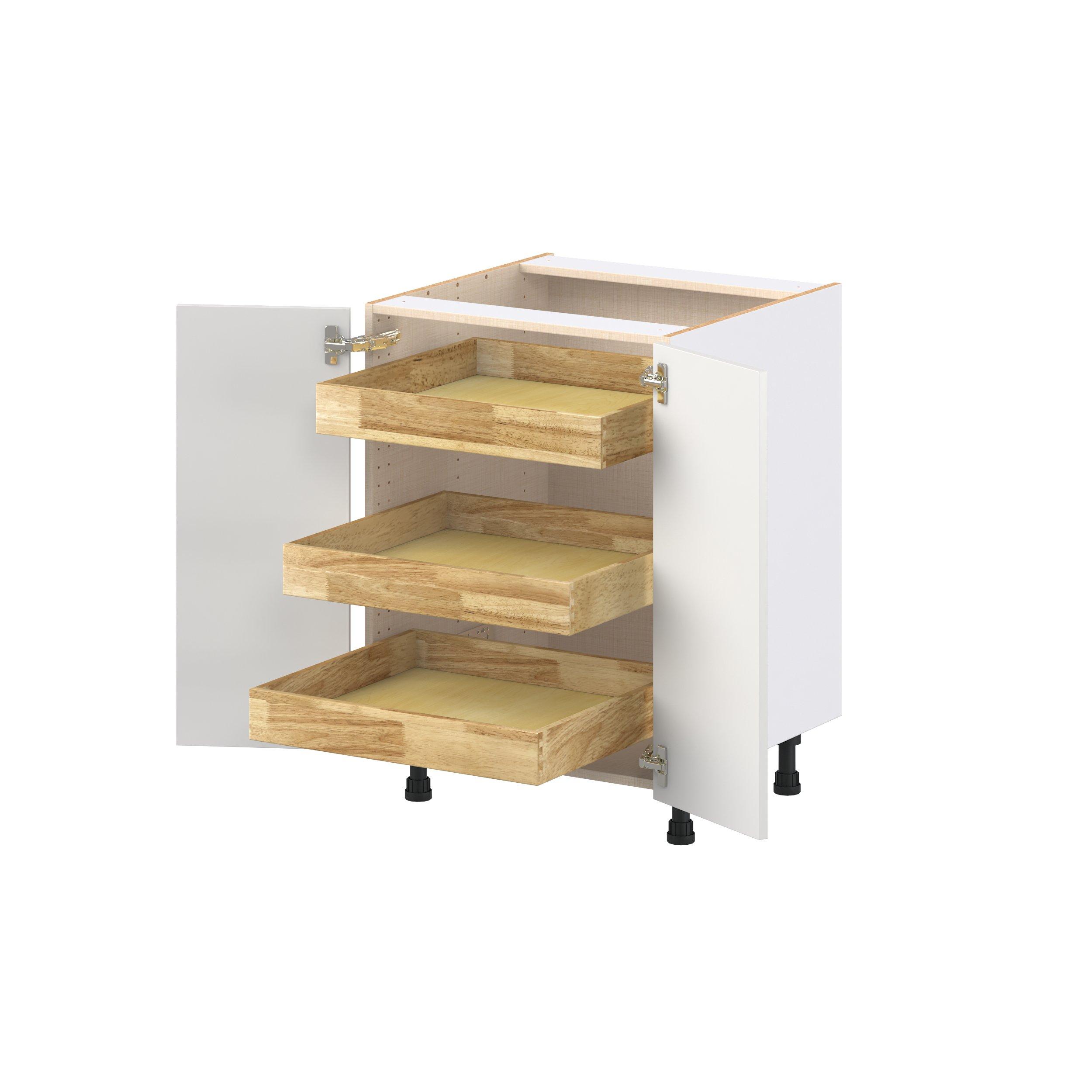 Transform your space with the elegance of Candler wide-rail shaker styles. Both the warm white and slate gray options create a rich transitional backdrop to complement any decor. Crafted from one-piece MDF Studio Design Collection Candler 24 in. Painted Warm White Shallow Base Cabinet with Inner Pull-Out Drawer is designed to resist hairline cracks while the easy-to-clean finish stands up to stains and moisture. Featuring 5-piece doors and dovetail drawer joints, these cabinets offer durability and elegance. This collection combines style with everyday storage solutions.