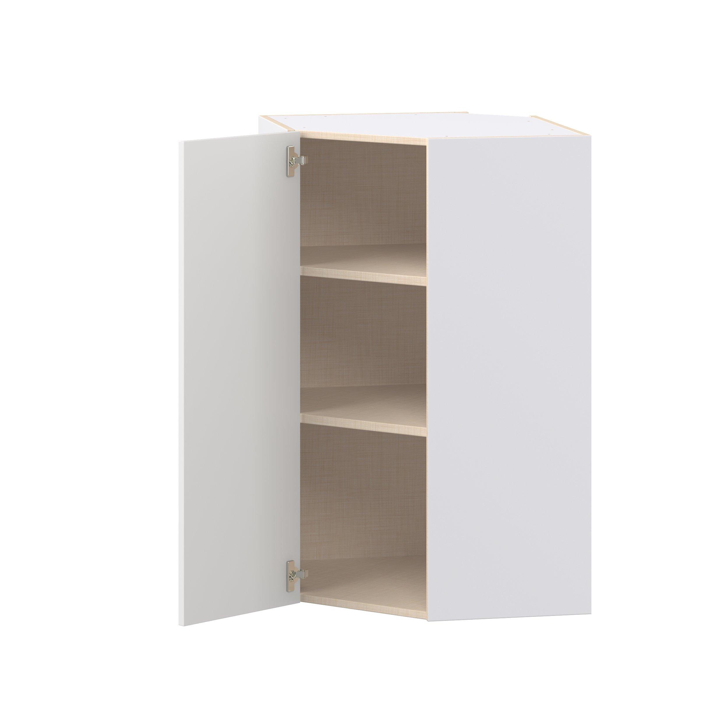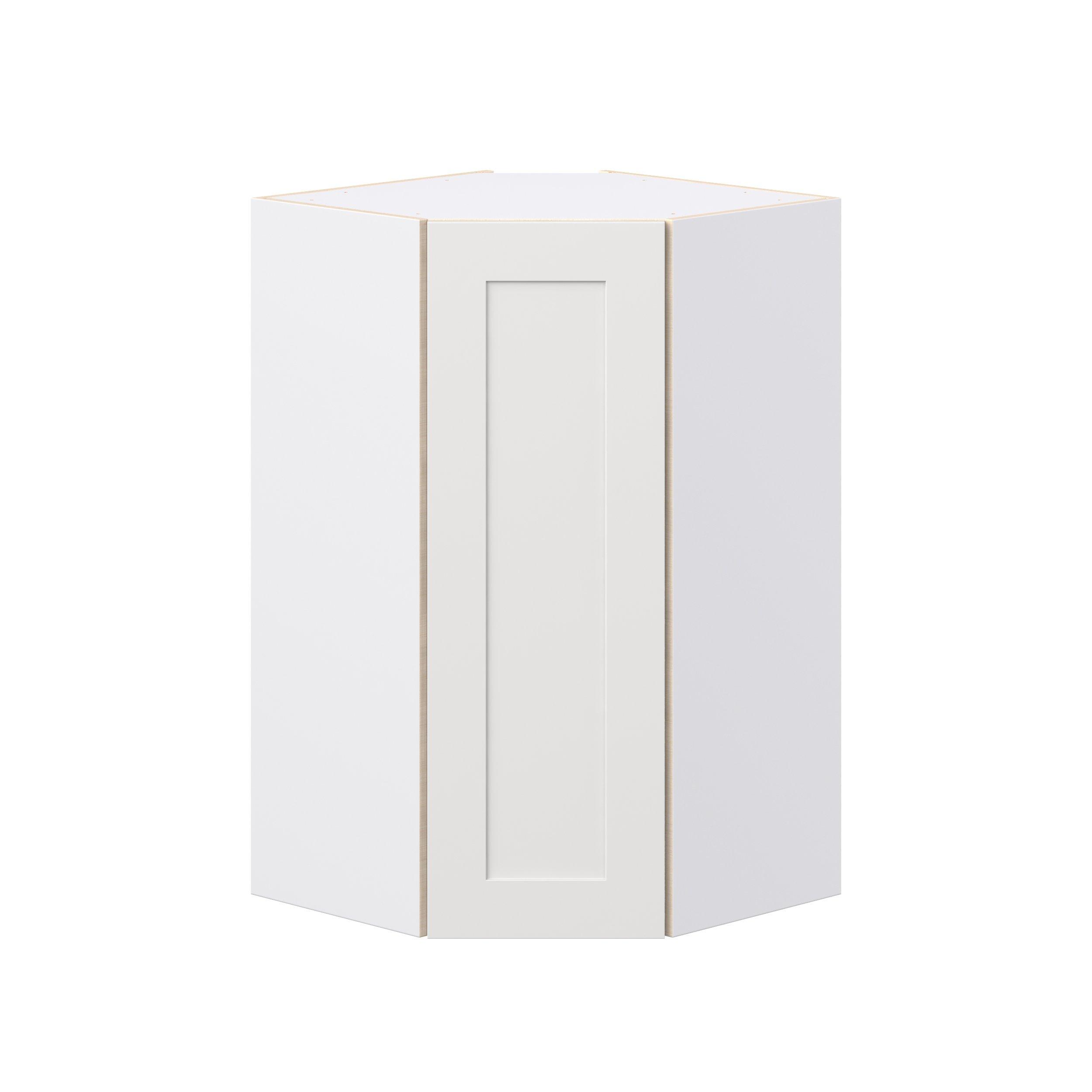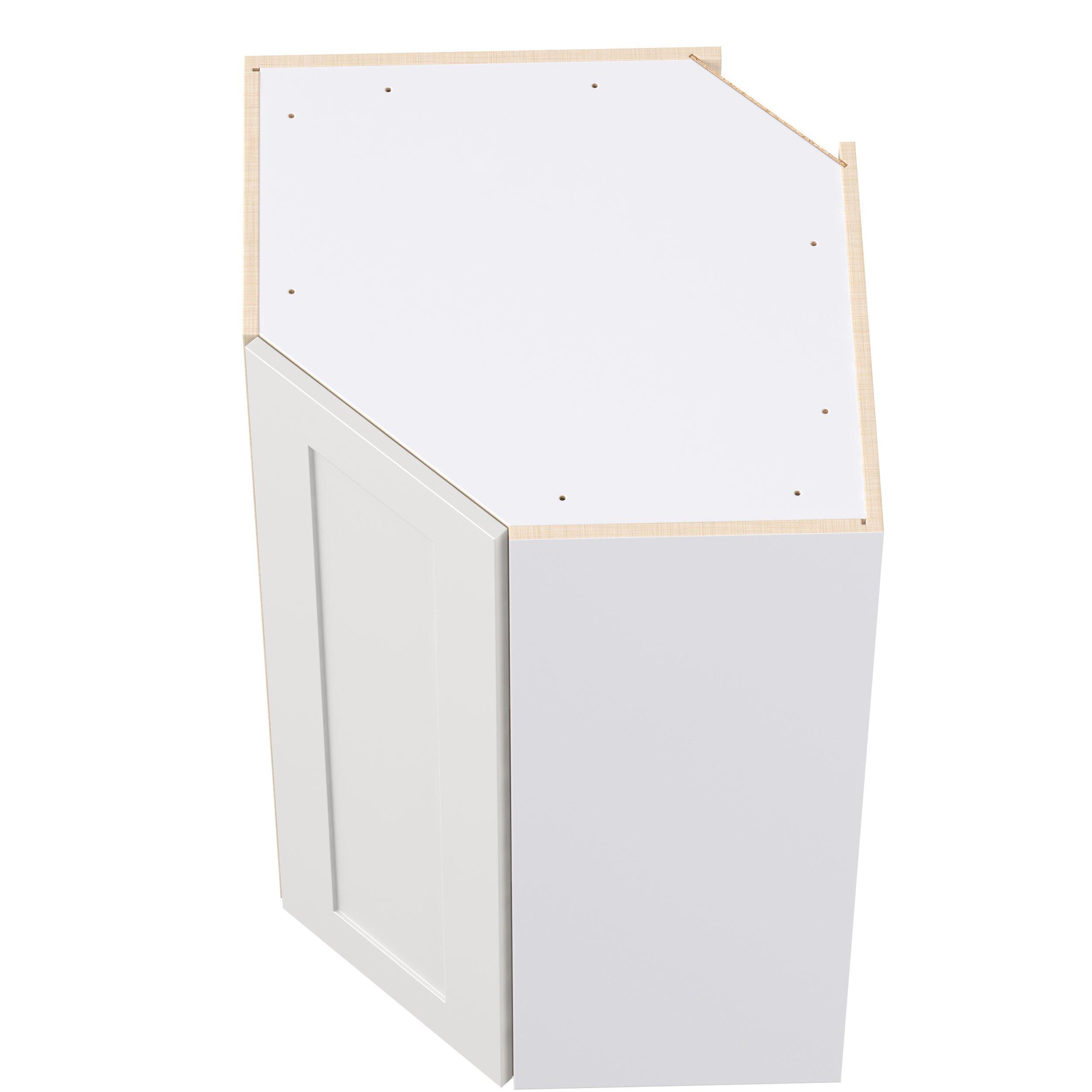 Transform your space with the elegance of Candler wide-rail shaker styles. Both the warm white and slate gray options create a rich transitional backdrop to complement any decor. Crafted from one-piece MDF Studio Design Collection Candler 24 in. Painted Warm White Wall Angle Corner Cabinet is designed to resist hairline cracks while the easy-to-clean finish stands up to stains and moisture. Featuring 5-piece doors and dovetail drawer joints, these cabinets offer durability and elegance. This collection combines style with everyday storage solutions.