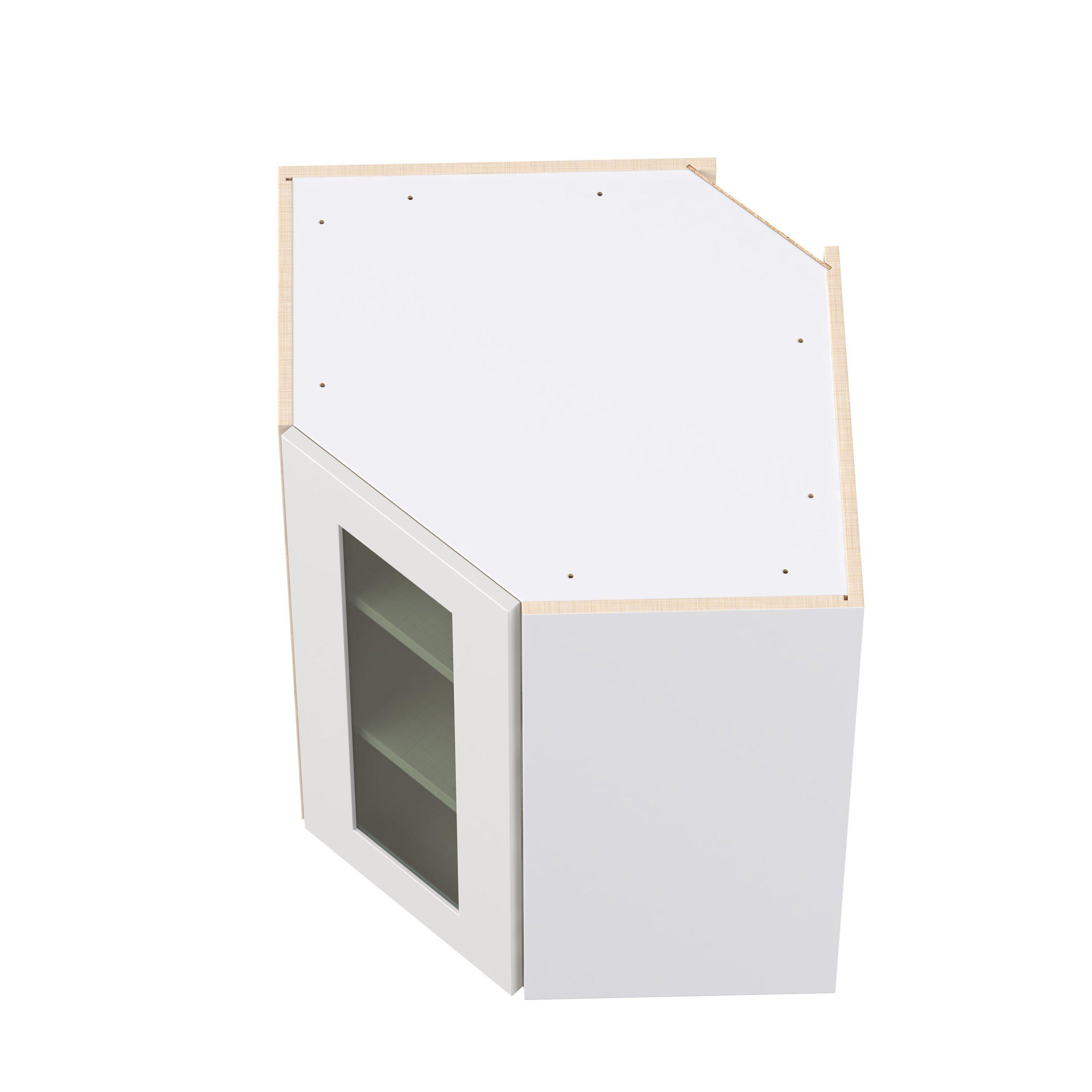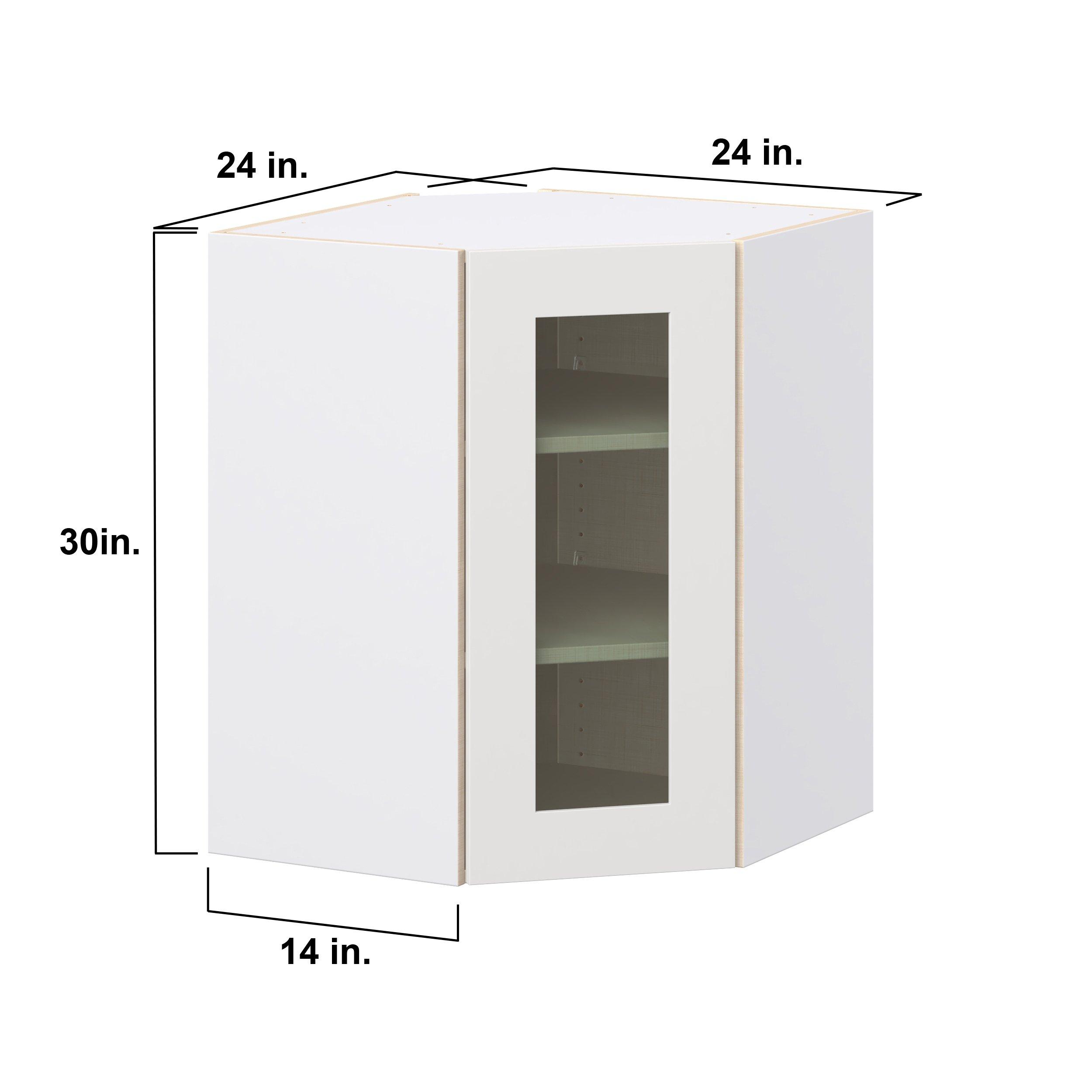 Transform your space with the elegance of Candler wide-rail shaker styles. Both the warm white and slate gray options create a rich transitional backdrop to complement any decor. Crafted from one-piece MDF Studio Design Collection Candler 24 in. Painted Warm White Wall Angle Corner Cabinet with Glass Door is designed to resist hairline cracks while the easy-to-clean finish stands up to stains and moisture. Featuring 5-piece doors and dovetail drawer joints, these cabinets offer durability and elegance. This collection combines style with everyday storage solutions.