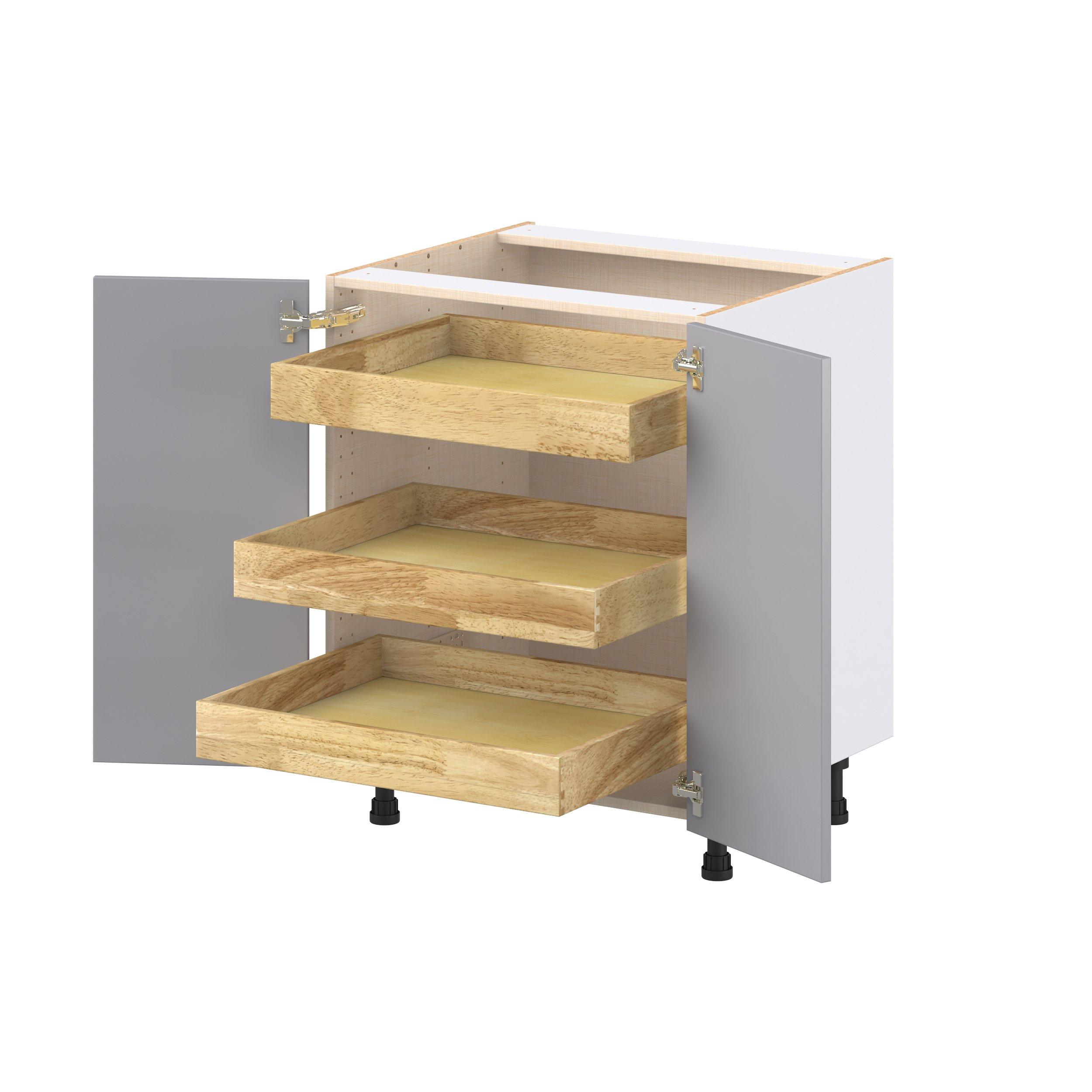 Transform your space with the elegance of Candler wide-rail shaker styles. Both the warm white and slate gray options create a rich transitional backdrop to complement any decor. Crafted from one-piece MDF Studio Design Collection Candler 27 in. Painted Slate Gray Base Cabinet with Inner Pull-Out Drawer is designed to resist hairline cracks while the easy-to-clean finish stands up to stains and moisture. Featuring 5-piece doors and dovetail drawer joints, these cabinets offer durability and elegance. This collection combines style with everyday storage solutions.