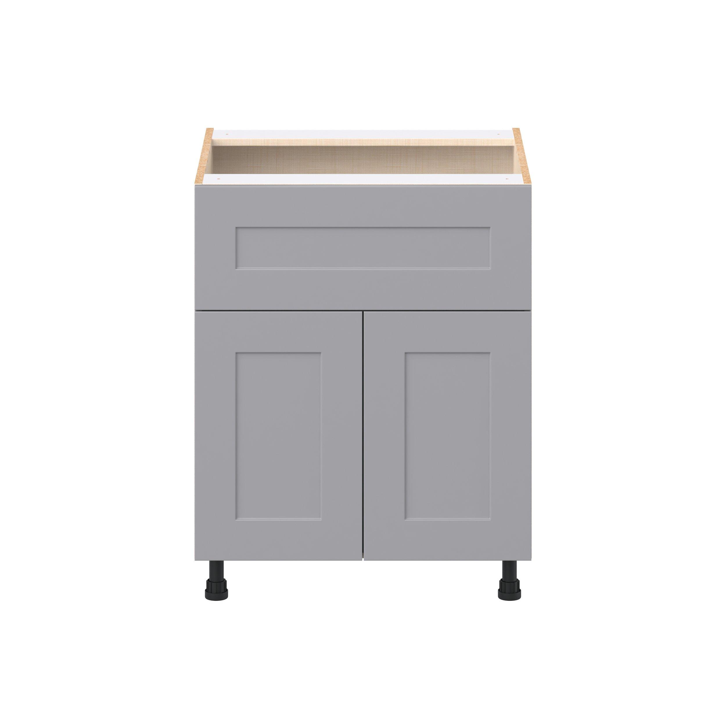 Transform your space with the elegance of Candler wide-rail shaker styles. Both the warm white and slate gray options create a rich transitional backdrop to complement any decor. Crafted from one-piece MDF Studio Design Collection Candler 27 in. Painted Slate Gray Door and Drawer Base Cabinet is designed to resist hairline cracks while the easy-to-clean finish stands up to stains and moisture. Featuring 5-piece doors and dovetail drawer joints, these cabinets offer durability and elegance. This collection combines style with everyday storage solutions.