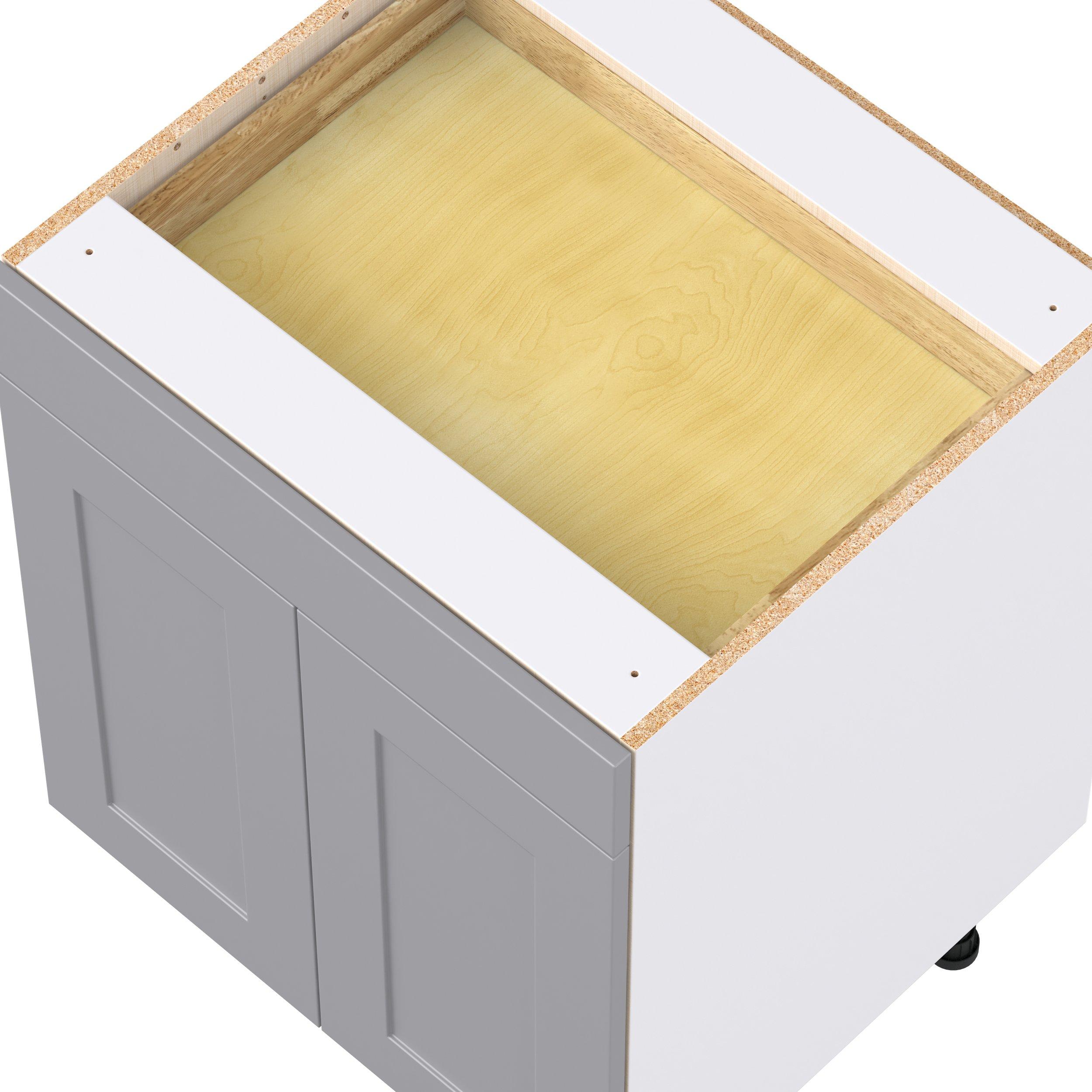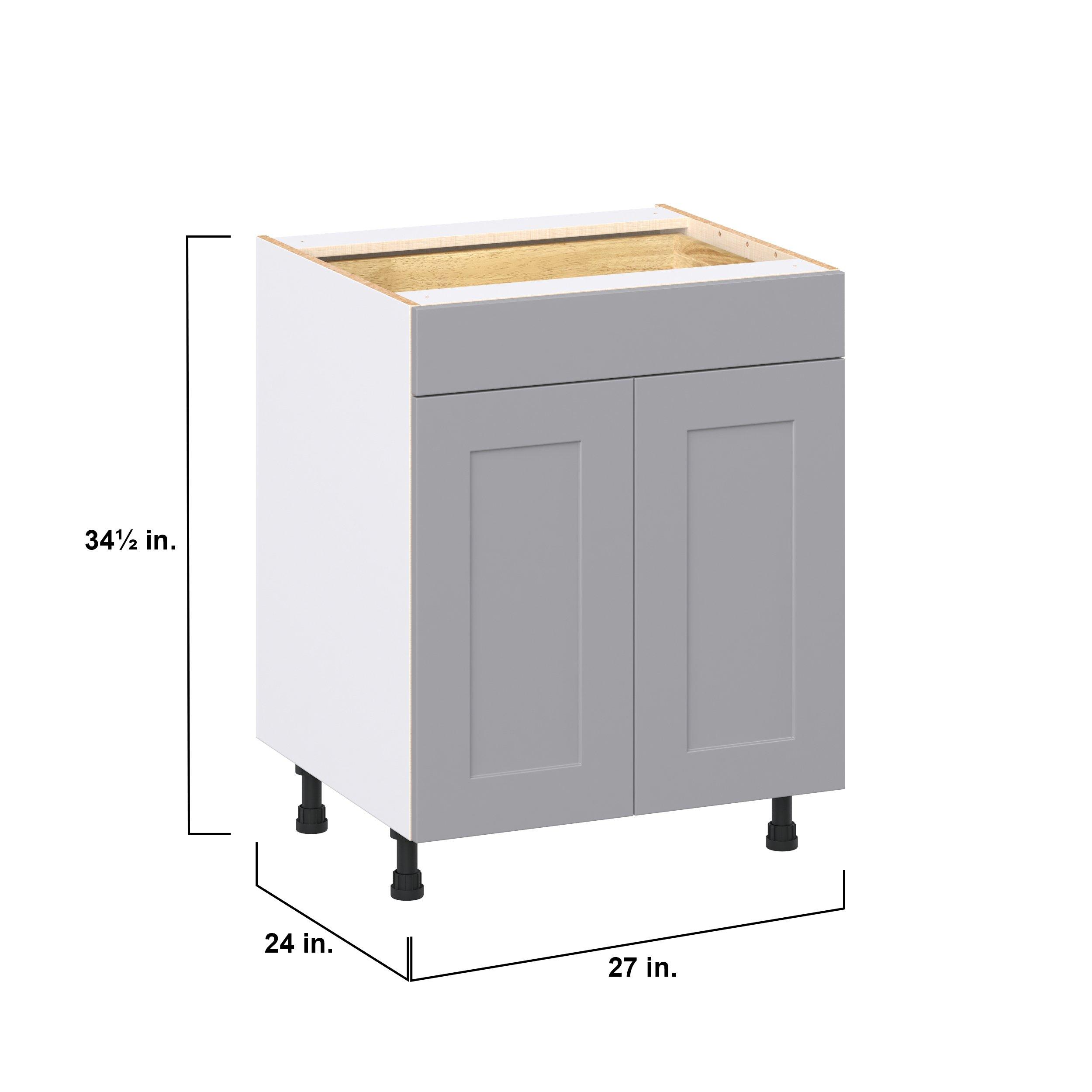 Transform your space with the elegance of Candler wide-rail shaker styles. Both the warm white and slate gray options create a rich transitional backdrop to complement any decor. Crafted from one-piece MDF Studio Design Collection Candler 27 in. Painted Slate Gray Door and Drawer Base Cabinet is designed to resist hairline cracks while the easy-to-clean finish stands up to stains and moisture. Featuring 5-piece doors and dovetail drawer joints, these cabinets offer durability and elegance. This collection combines style with everyday storage solutions.