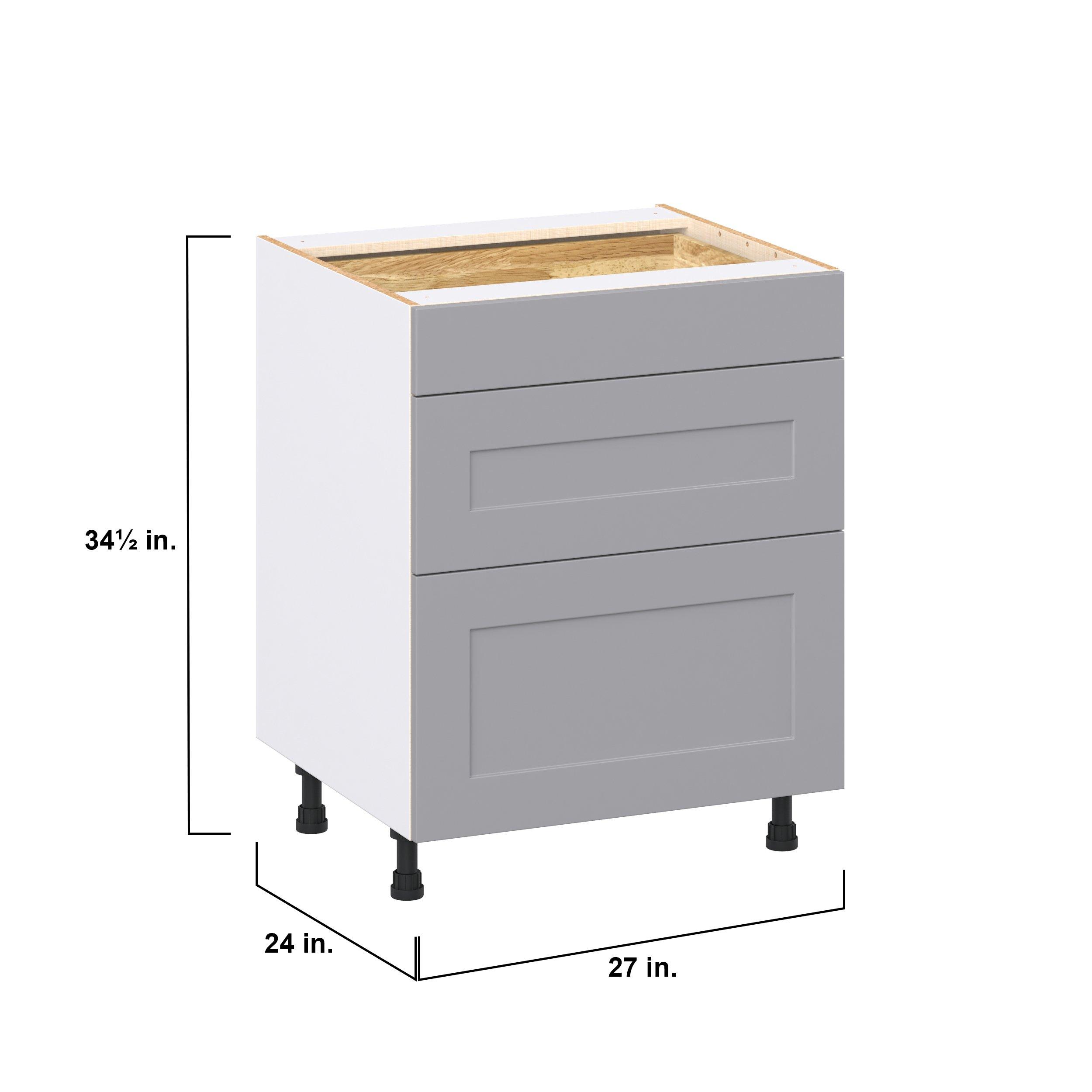 Transform your space with the elegance of Candler wide-rail shaker styles. Both the warm white and slate gray options create a rich transitional backdrop to complement any decor. Crafted from one-piece MDF Studio Design Collection Candler 27 in. Painted Slate Gray Drawer Base Cabinet is designed to resist hairline cracks while the easy-to-clean finish stands up to stains and moisture. Featuring 5-piece doors and dovetail drawer joints, these cabinets offer durability and elegance. This collection combines style with everyday storage solutions.