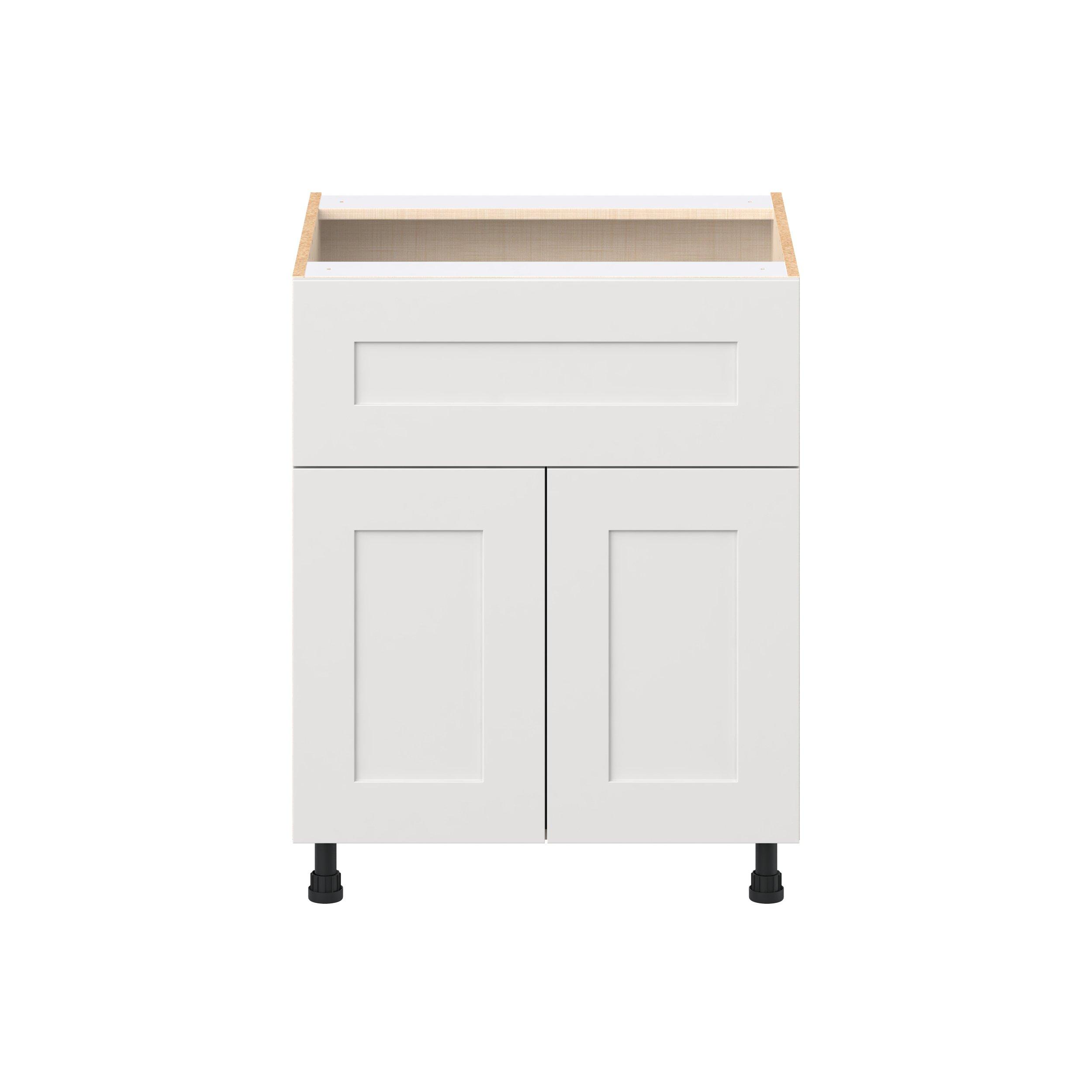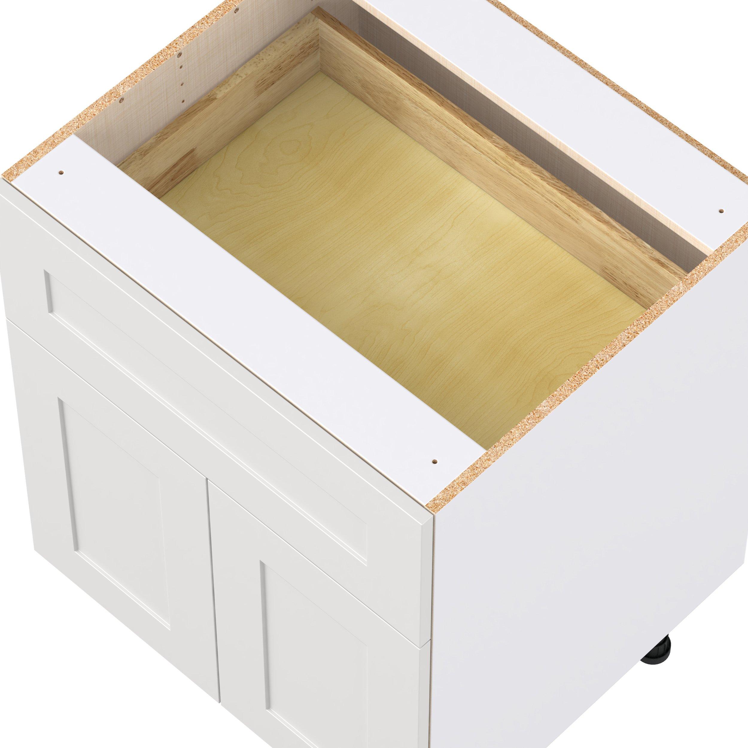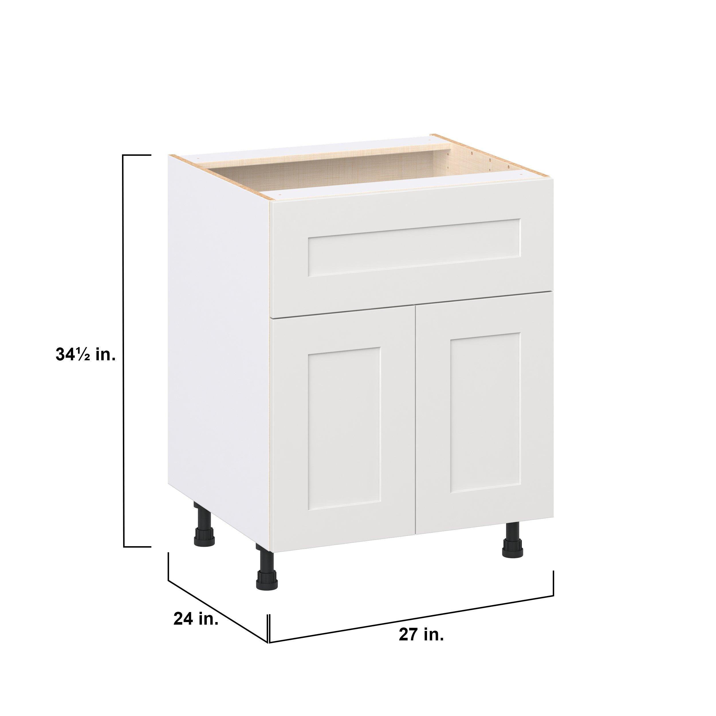 Transform your space with the elegance of Candler wide-rail shaker styles. Both the warm white and slate gray options create a rich transitional backdrop to complement any decor. Crafted from one-piece MDF Studio Design Collection Candler 27 in. Painted Warm White Door and Drawer Base Cabinet is designed to resist hairline cracks while the easy-to-clean finish stands up to stains and moisture. Featuring 5-piece doors and dovetail drawer joints, these cabinets offer durability and elegance. This collection combines style with everyday storage solutions.