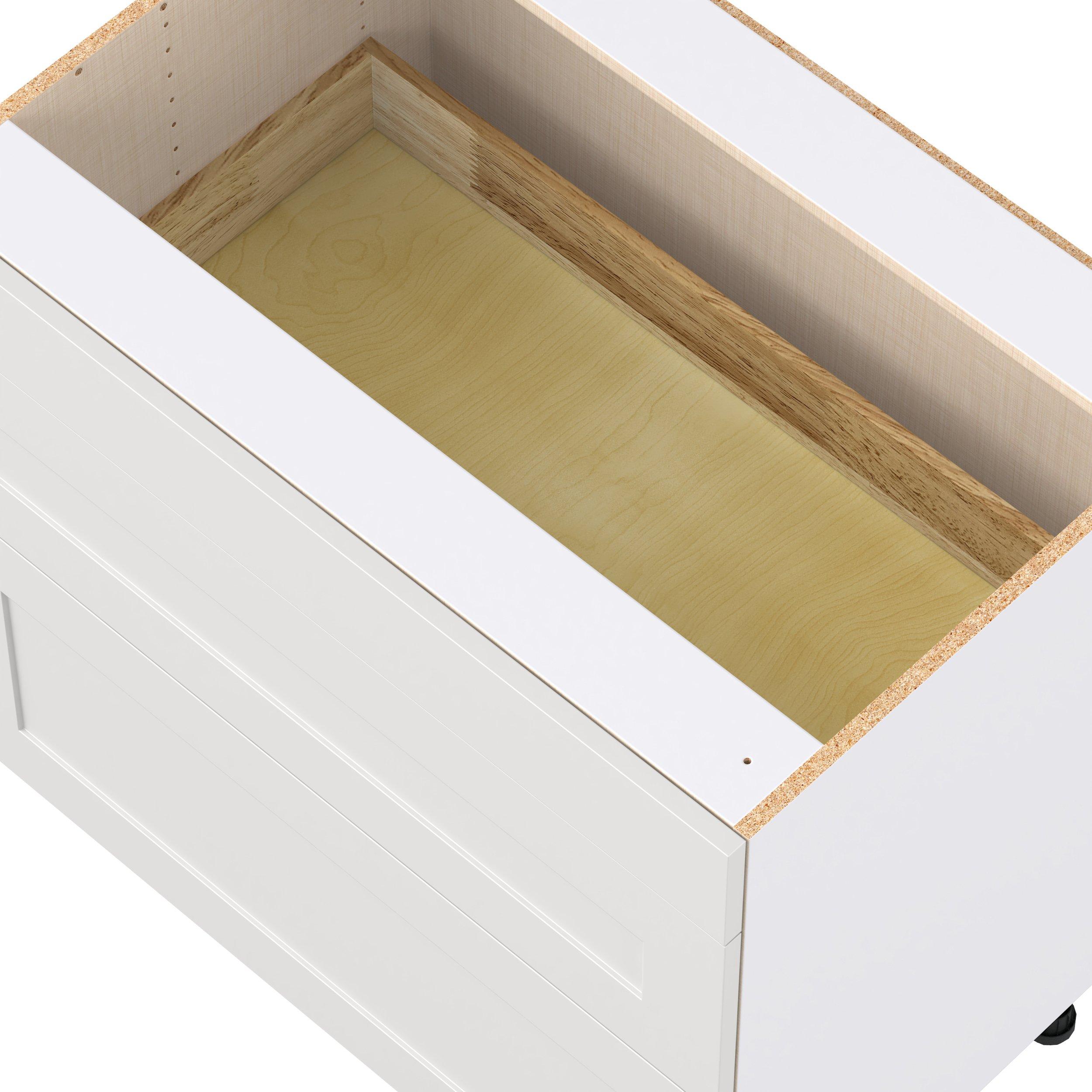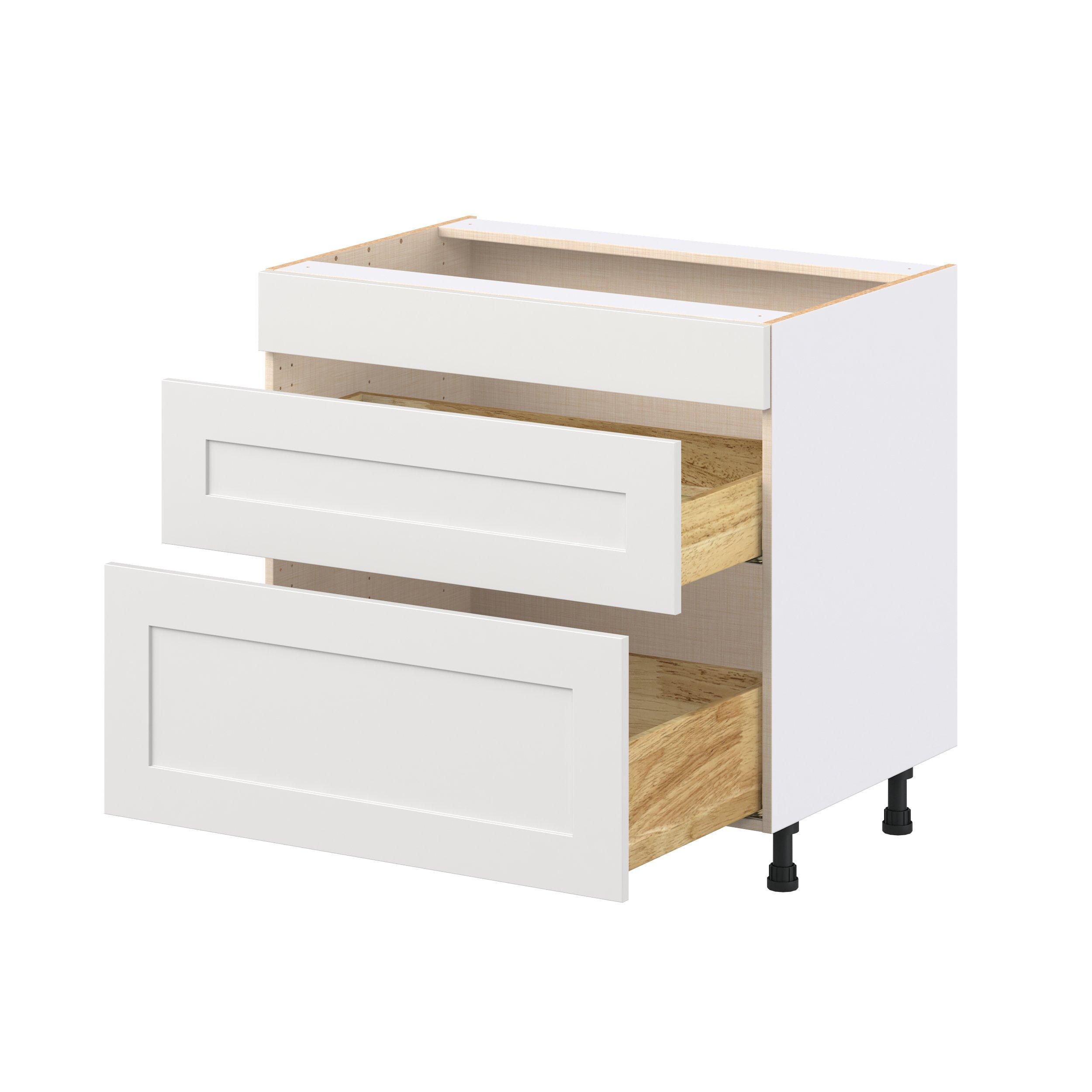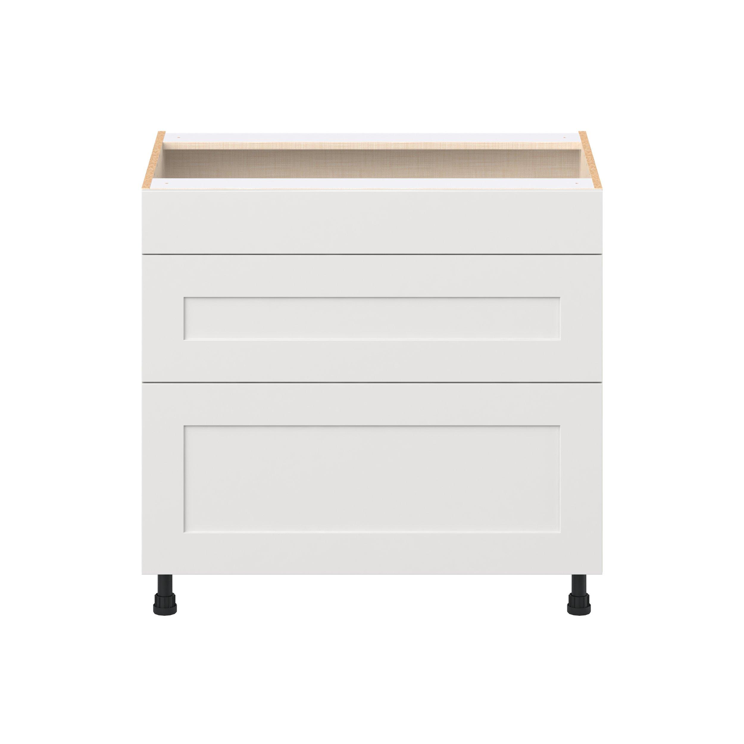 Transform your space with the elegance of Candler wide-rail shaker styles. Both the warm white and slate gray options create a rich transitional backdrop to complement any decor. Crafted from one-piece MDF Studio Design Collection Candler 36 in. Painted Warm White Cooktop Base Cabinet is designed to resist hairline cracks while the easy-to-clean finish stands up to stains and moisture. Featuring 5-piece doors and dovetail drawer joints, these cabinets offer durability and elegance. This collection combines style with everyday storage solutions.