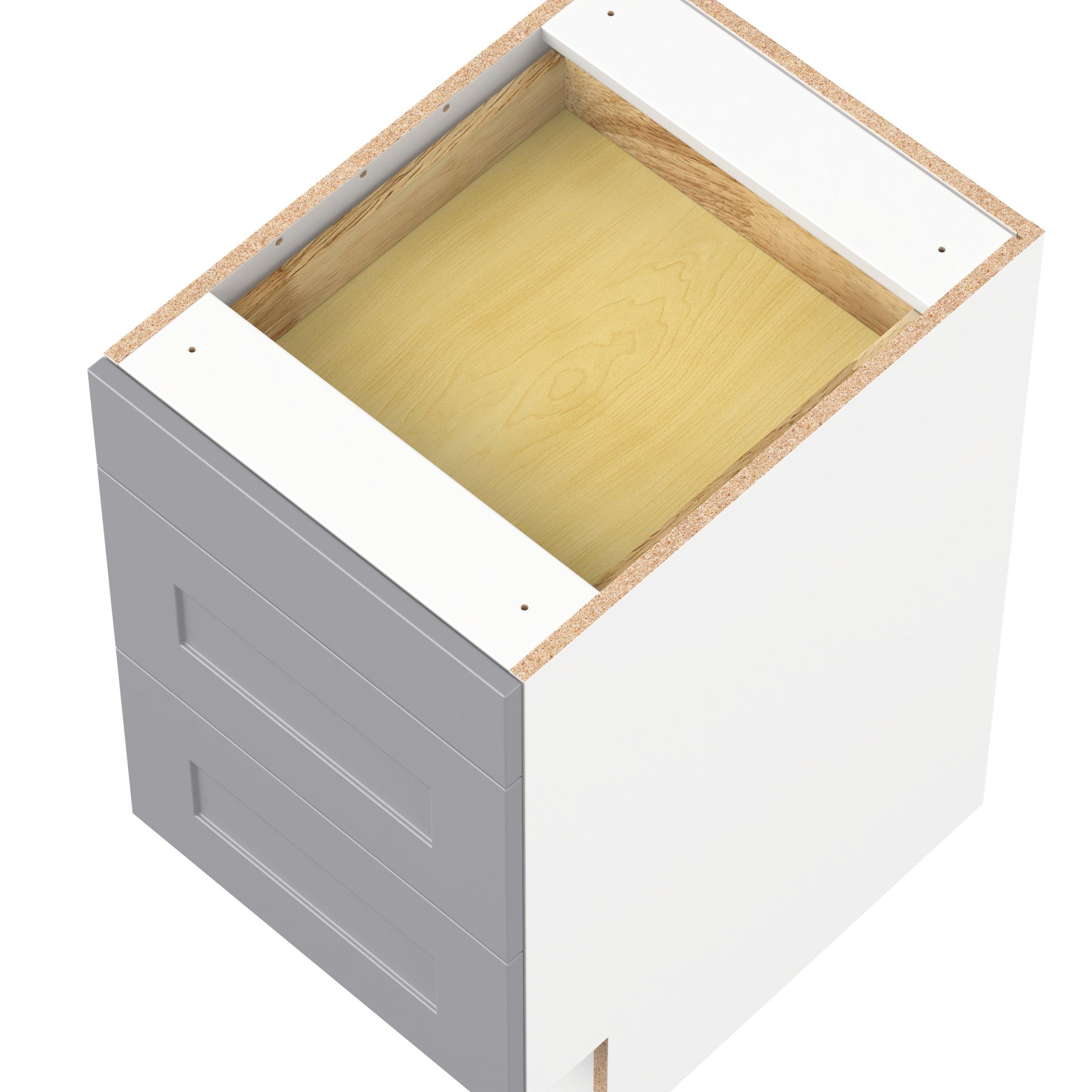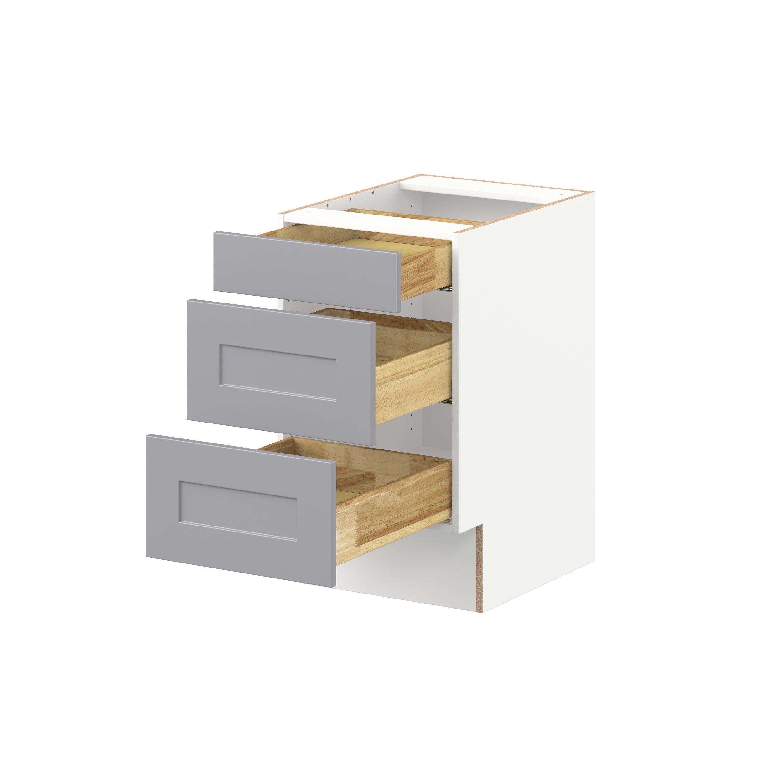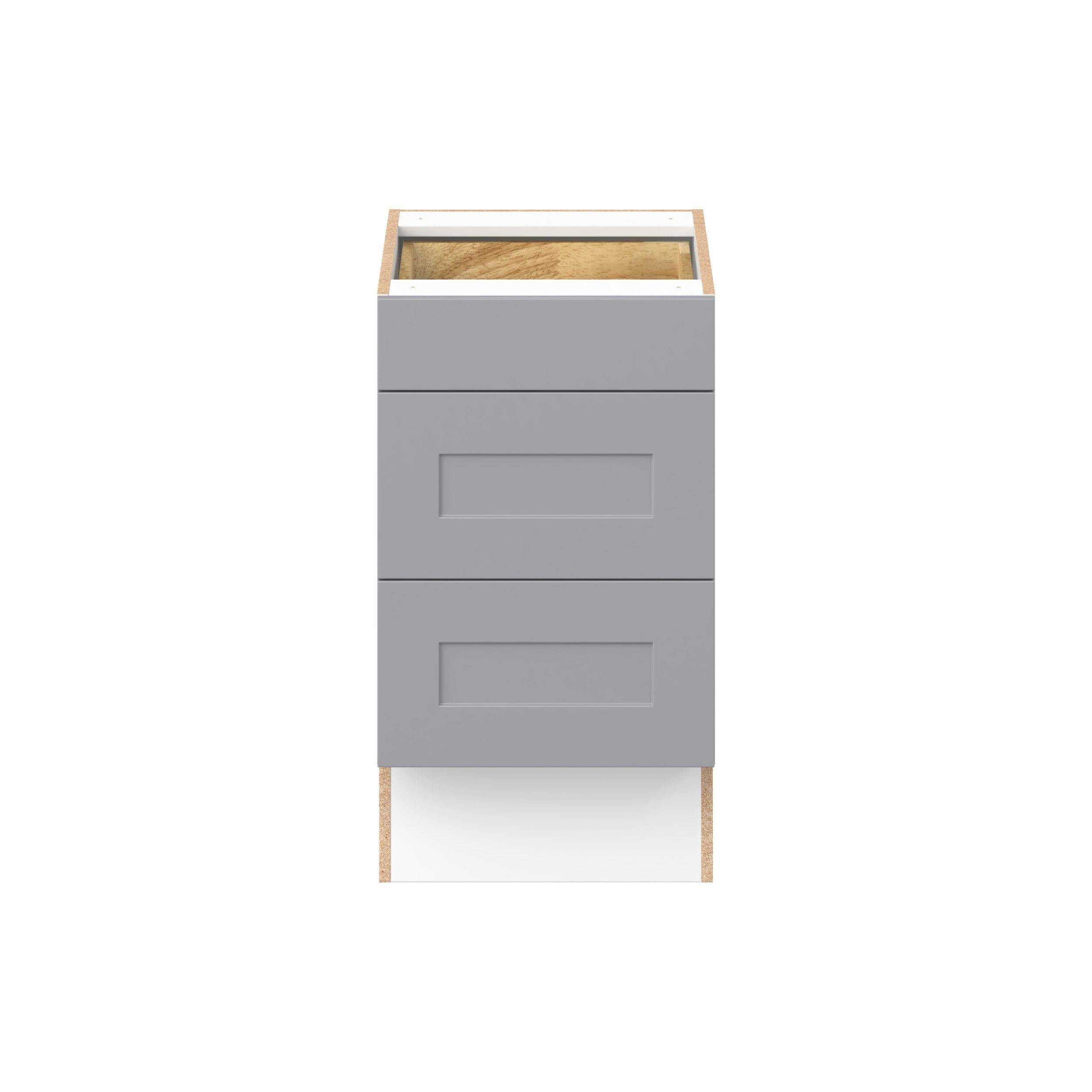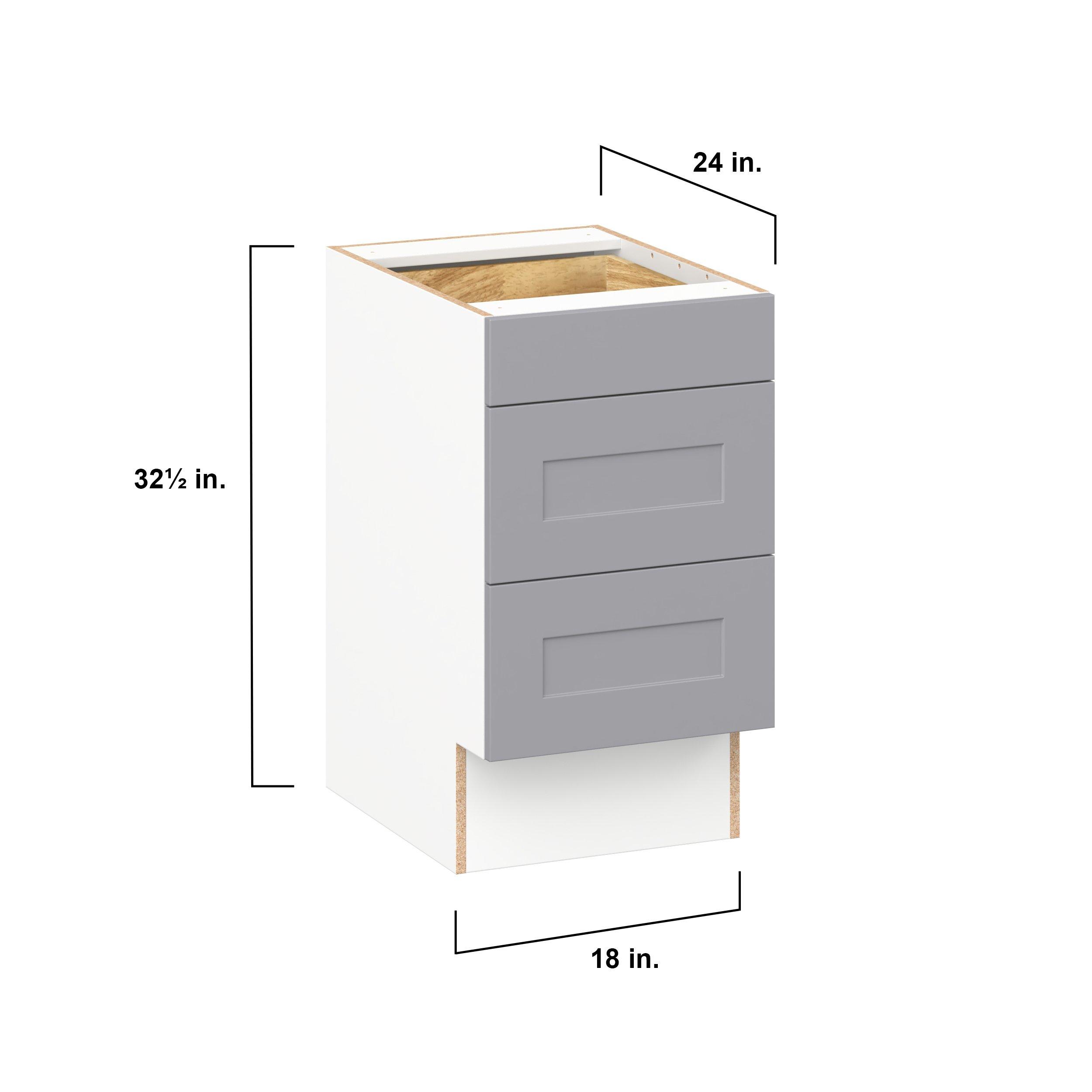 Transform your space with the elegance of Candler wide-rail shaker styles. Both the warm white and slate gray options create a rich transitional backdrop to complement any decor. Crafted from one-piece MDF Studio Design Collection Candler 18 in. Painted Slate Gray Drawer Base Cabinet - ADA is designed to resist hairline cracks while the easy-to-clean finish stands up to stains and moisture. Featuring 5-piece doors and dovetail drawer joints, these cabinets offer durability and elegance. This collection combines style with everyday storage solutions.