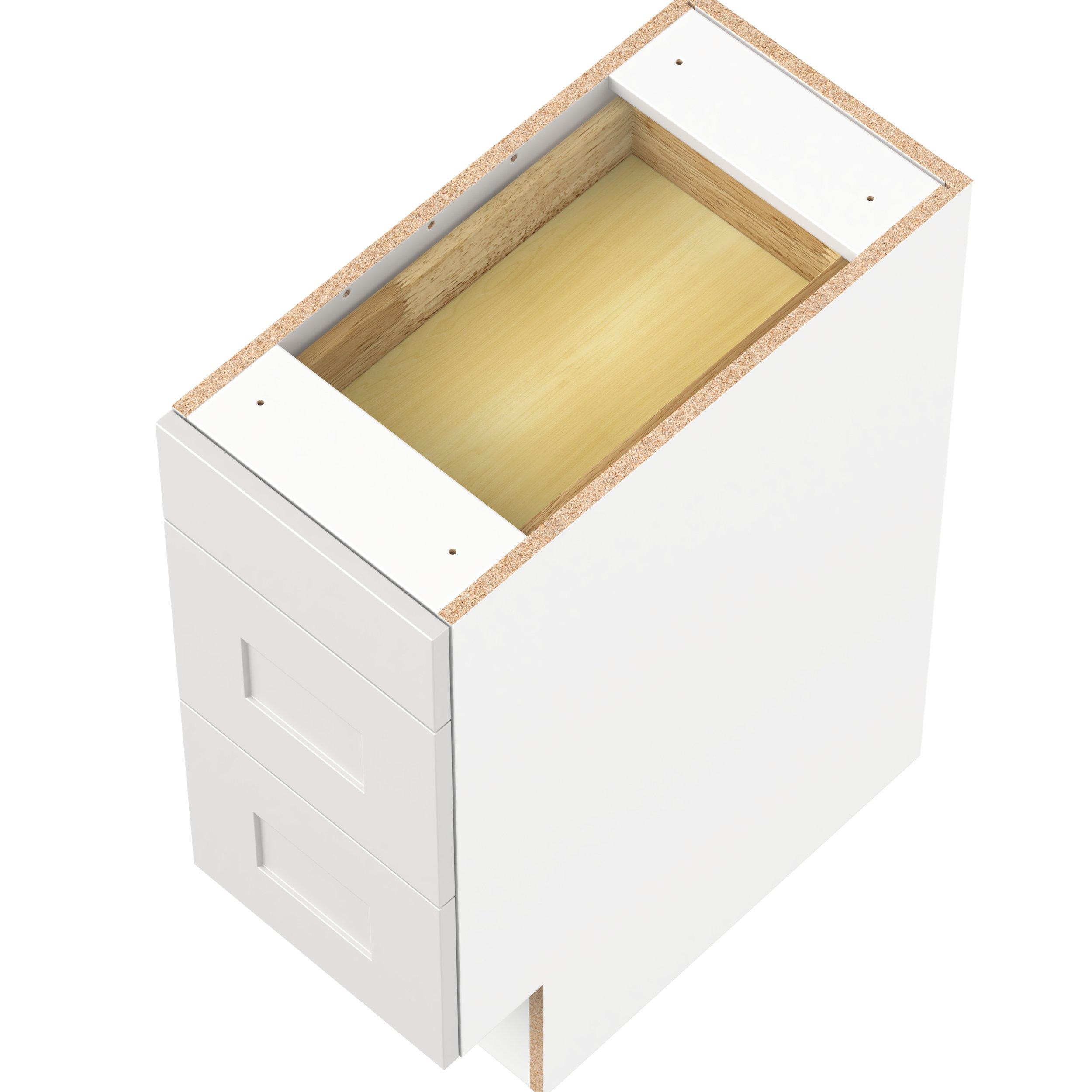 Transform your space with the elegance of Candler wide-rail shaker styles. Both the warm white and slate gray options create a rich transitional backdrop to complement any decor. Crafted from one-piece MDF Studio Design Collection Candler 12 in. Painted Warm White Drawer Base Cabinet - ADA is designed to resist hairline cracks while the easy-to-clean finish stands up to stains and moisture. Featuring 5-piece doors and dovetail drawer joints, these cabinets offer durability and elegance. This collection combines style with everyday storage solutions.