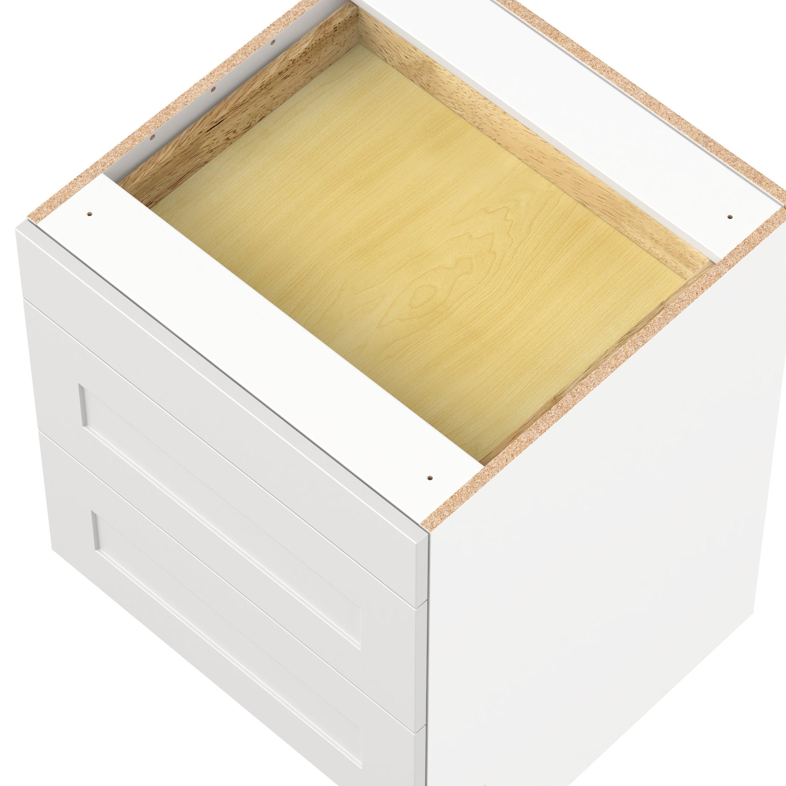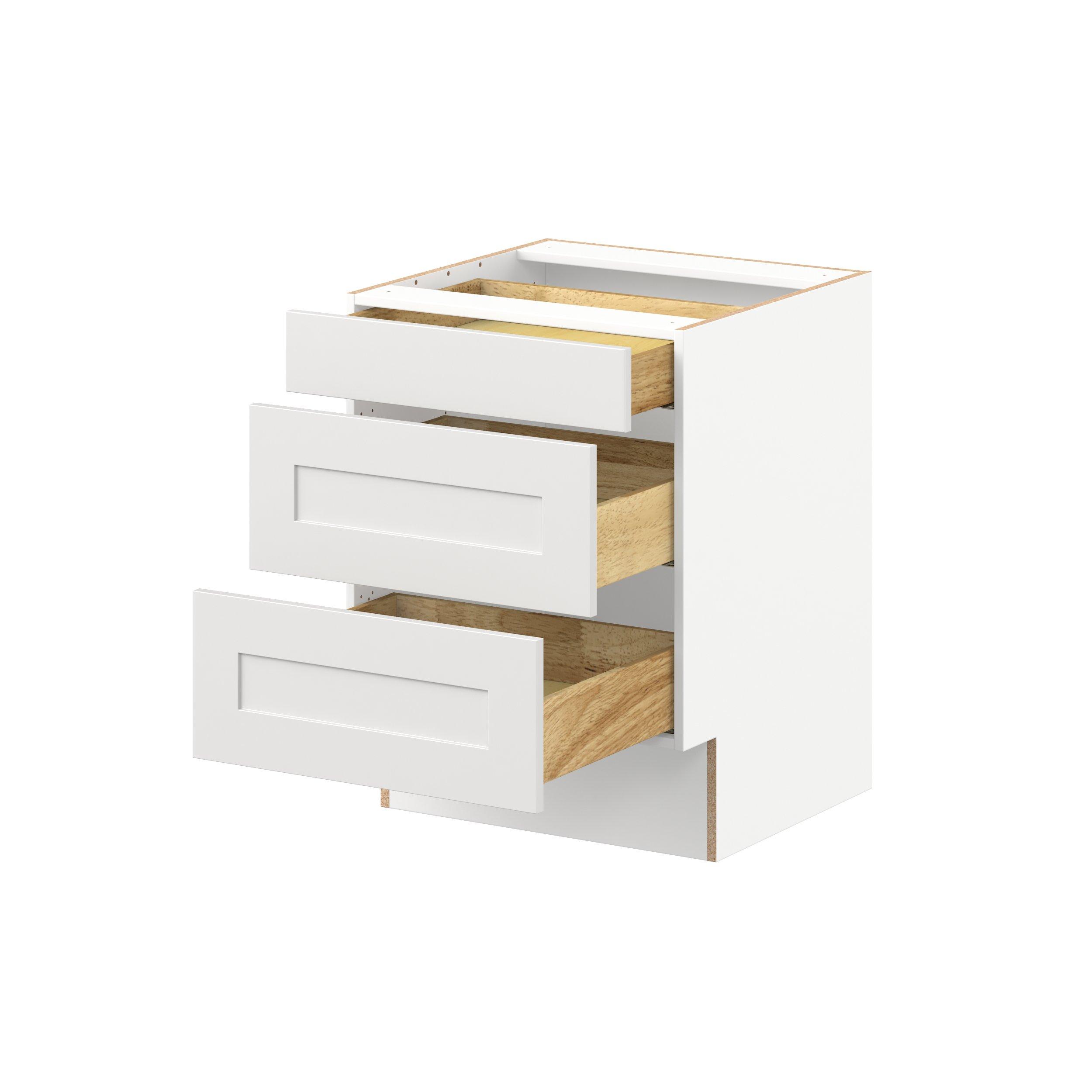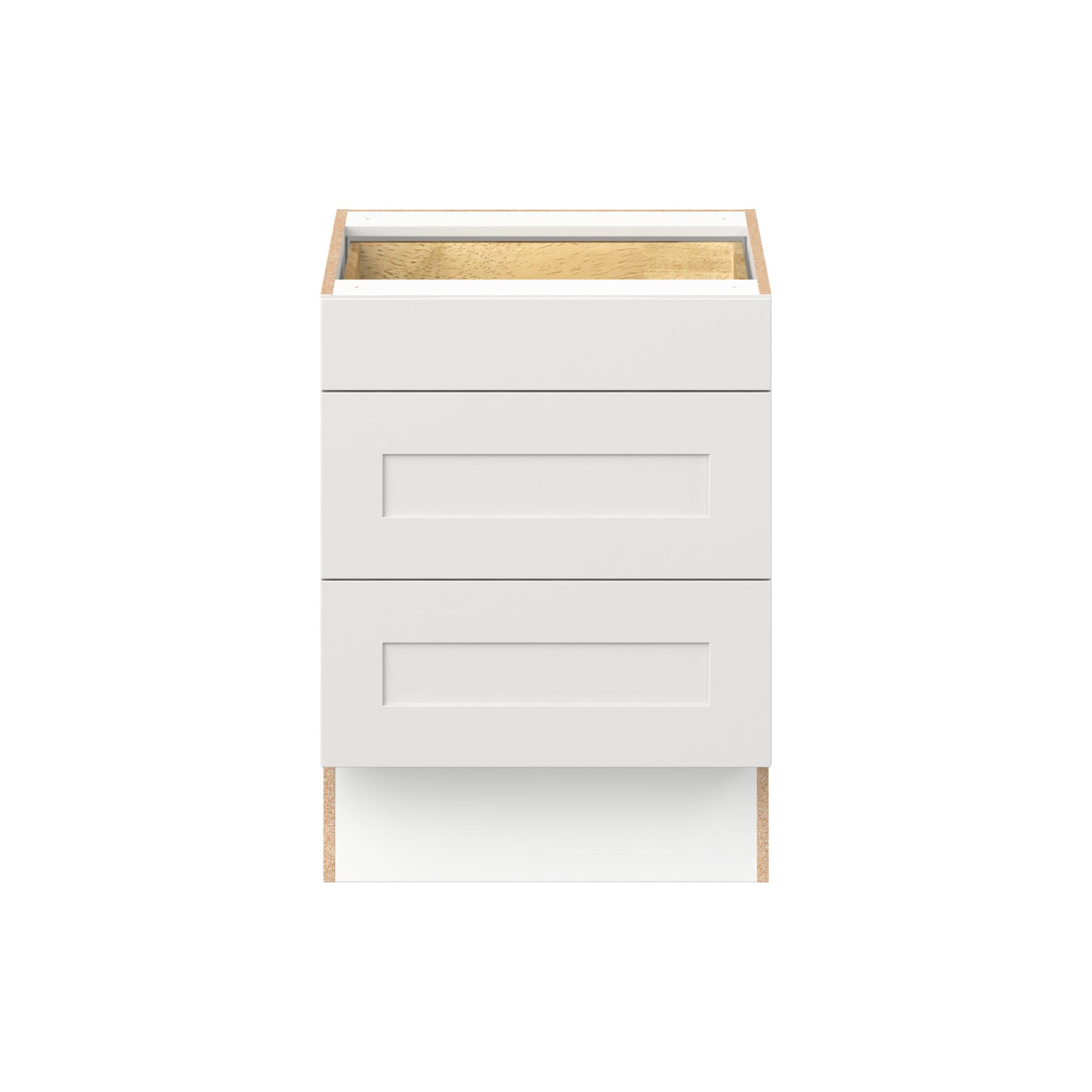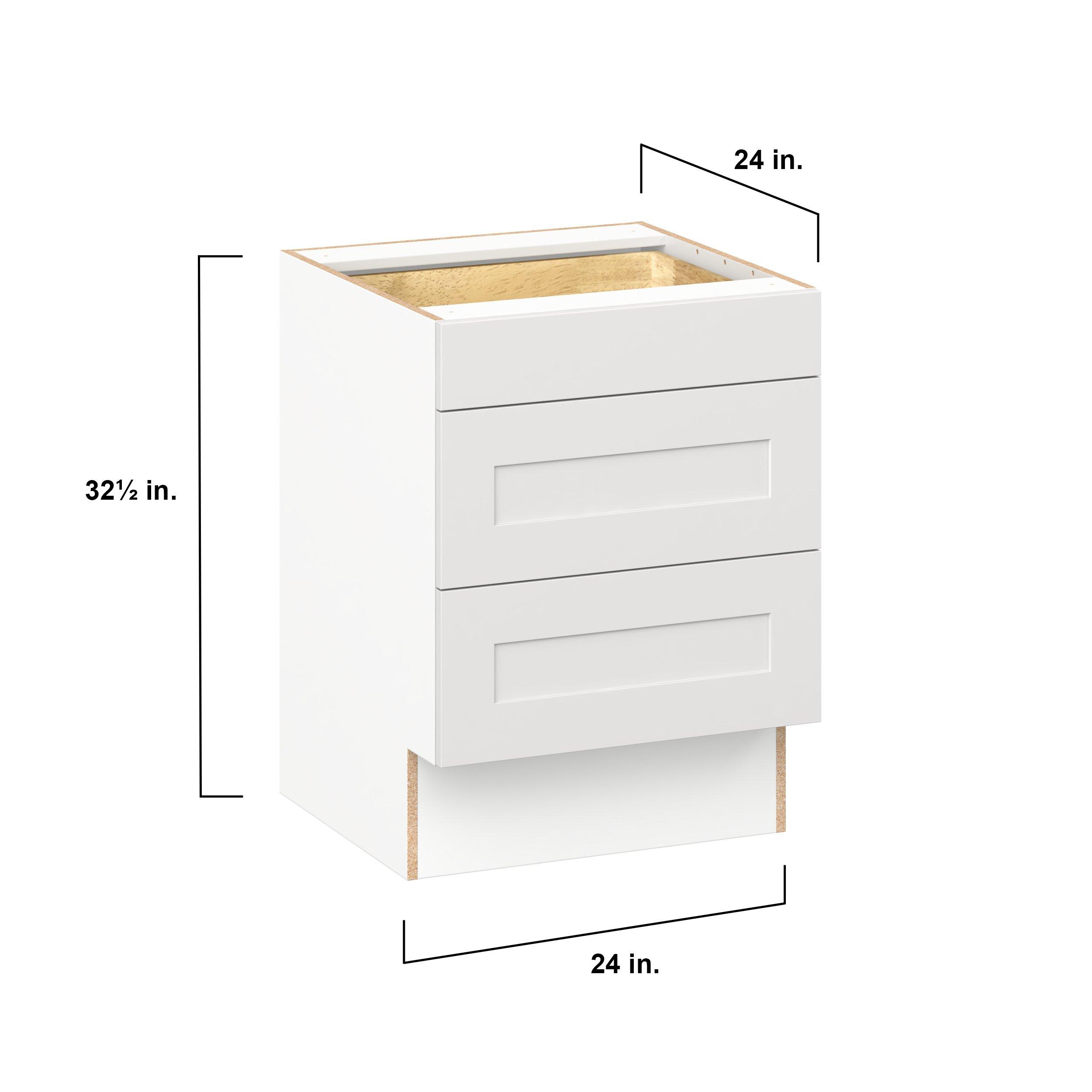 Transform your space with the elegance of Candler wide-rail shaker styles. Both the warm white and slate gray options create a rich transitional backdrop to complement any decor. Crafted from one-piece MDF Studio Design Collection Candler 24 in. Painted Warm White Drawer Base Cabinet - ADA is designed to resist hairline cracks while the easy-to-clean finish stands up to stains and moisture. Featuring 5-piece doors and dovetail drawer joints, these cabinets offer durability and elegance. This collection combines style with everyday storage solutions.