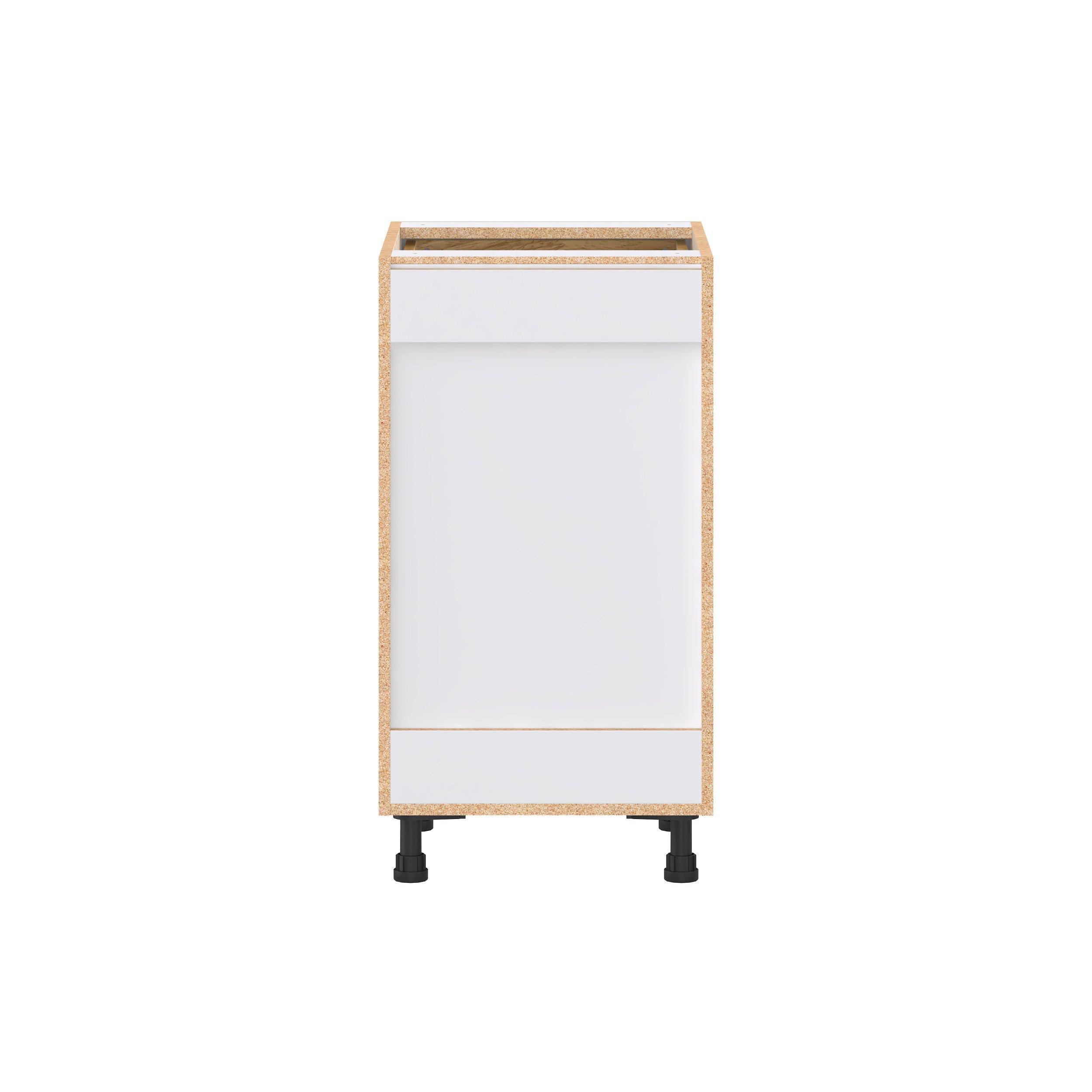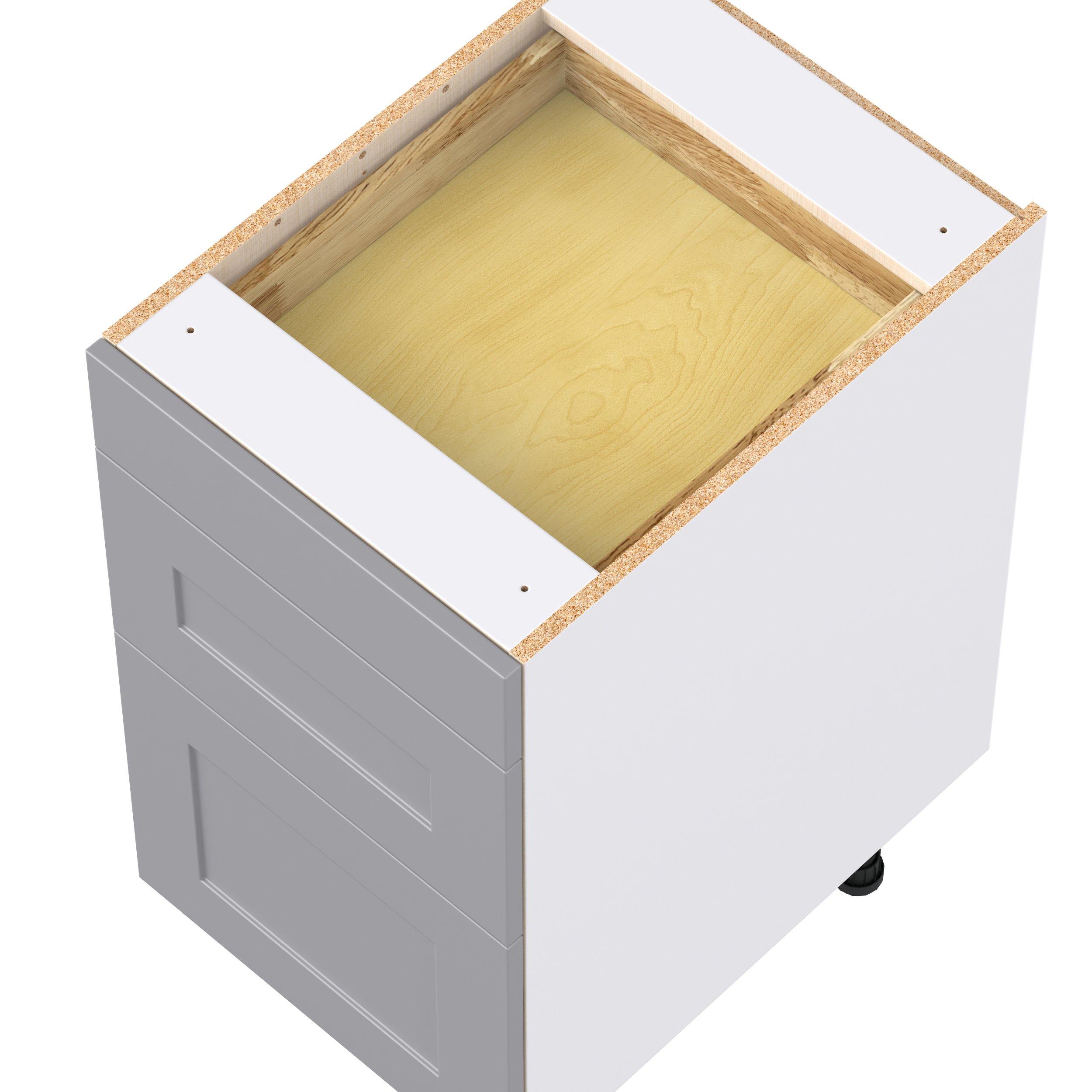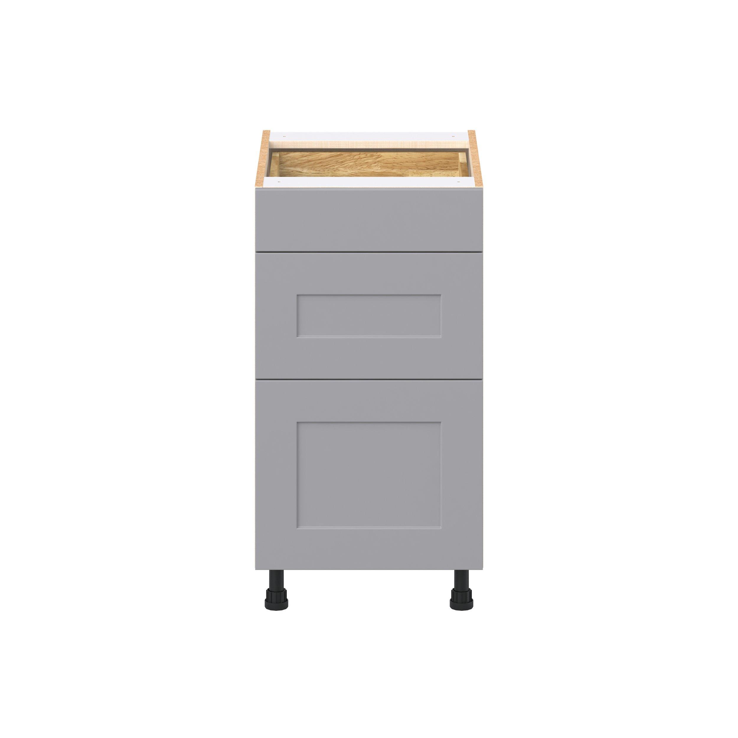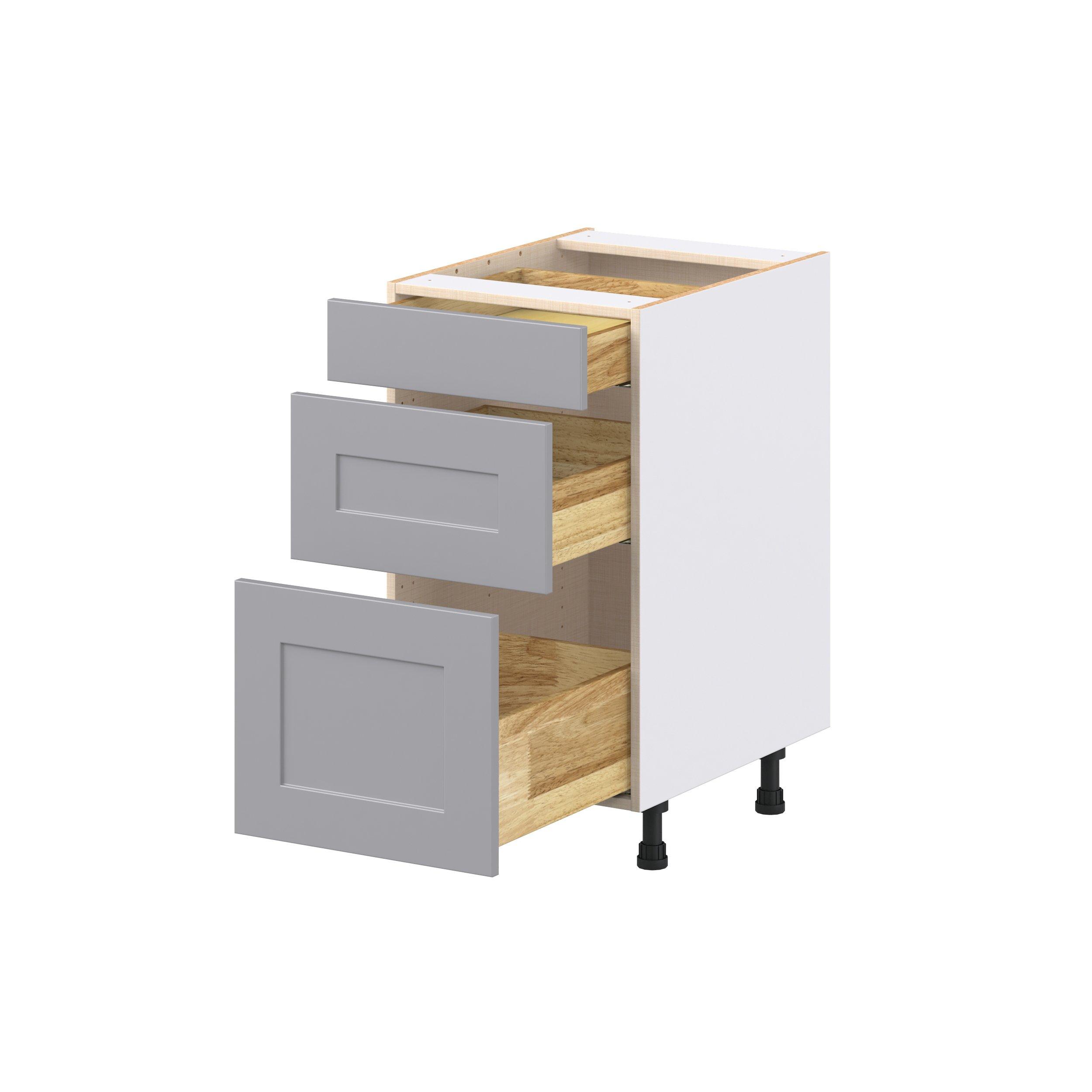 Transform your space with the elegance of Candler wide-rail shaker styles. Both the warm white and slate gray options create a rich transitional backdrop to complement any decor. Crafted from one-piece MDF Studio Design Collection Candler 18 in. Painted Slate Gray Drawer Base Cabinet is designed to resist hairline cracks while the easy-to-clean finish stands up to stains and moisture. Featuring 5-piece doors and dovetail drawer joints, these cabinets offer durability and elegance. This collection combines style with everyday storage solutions.