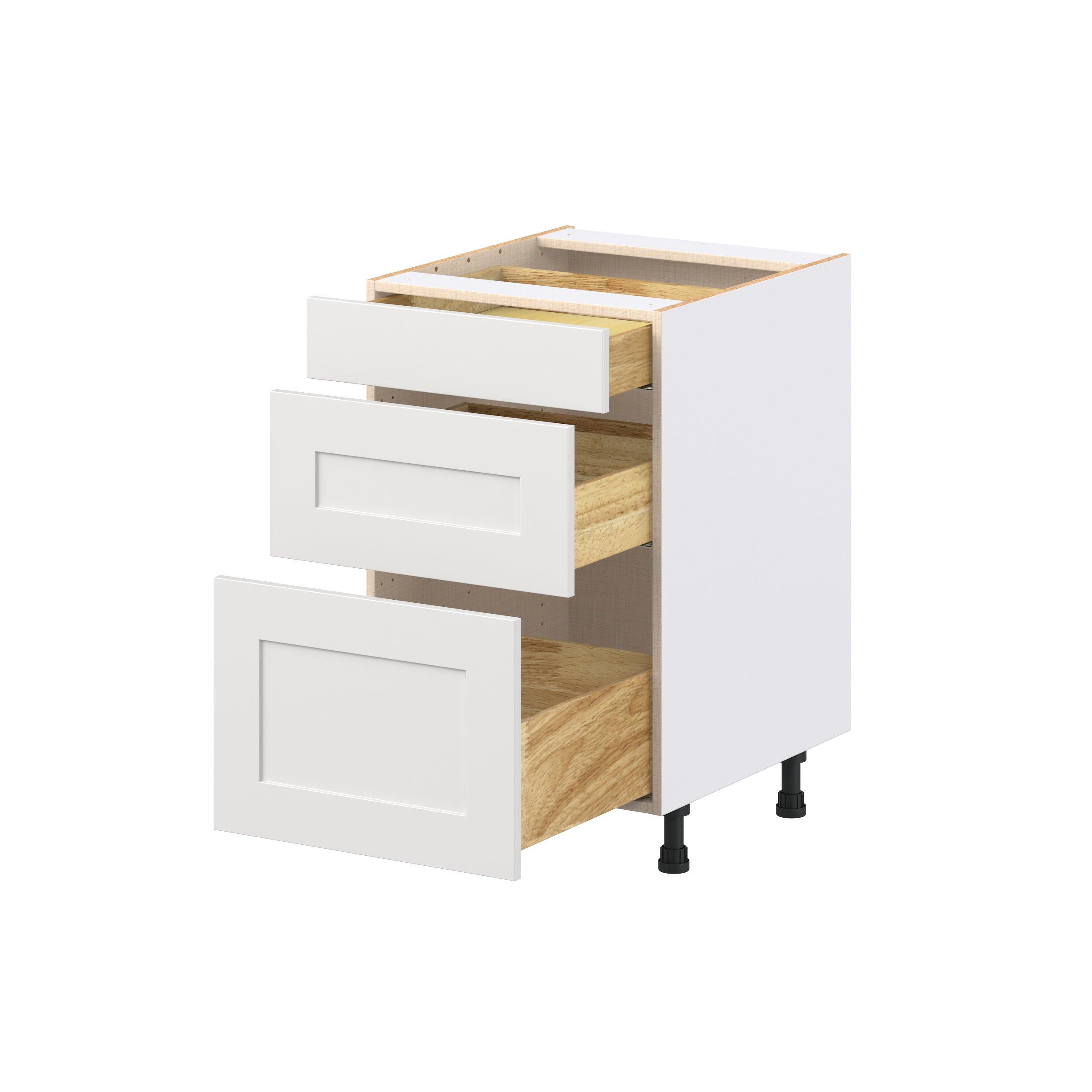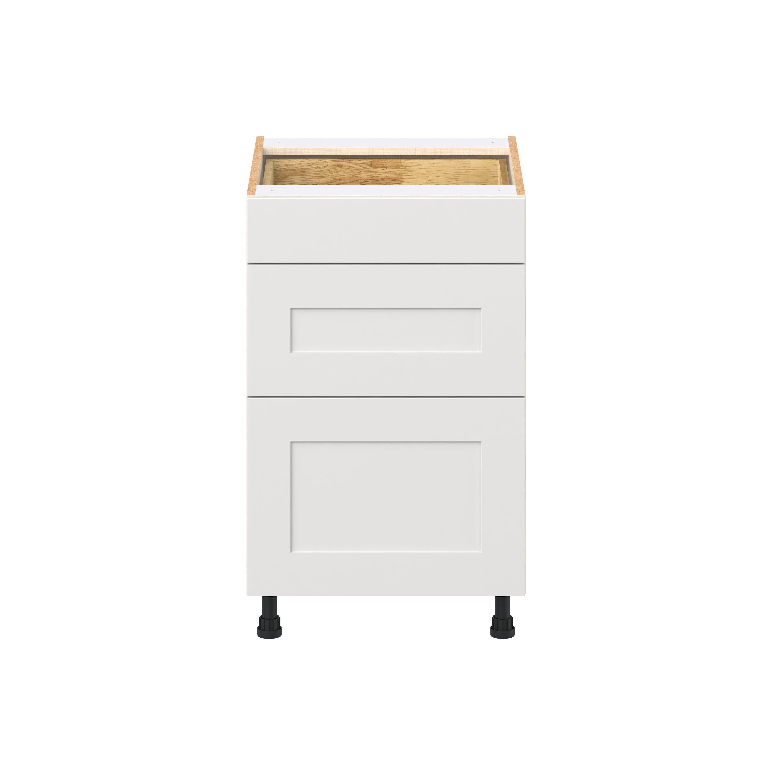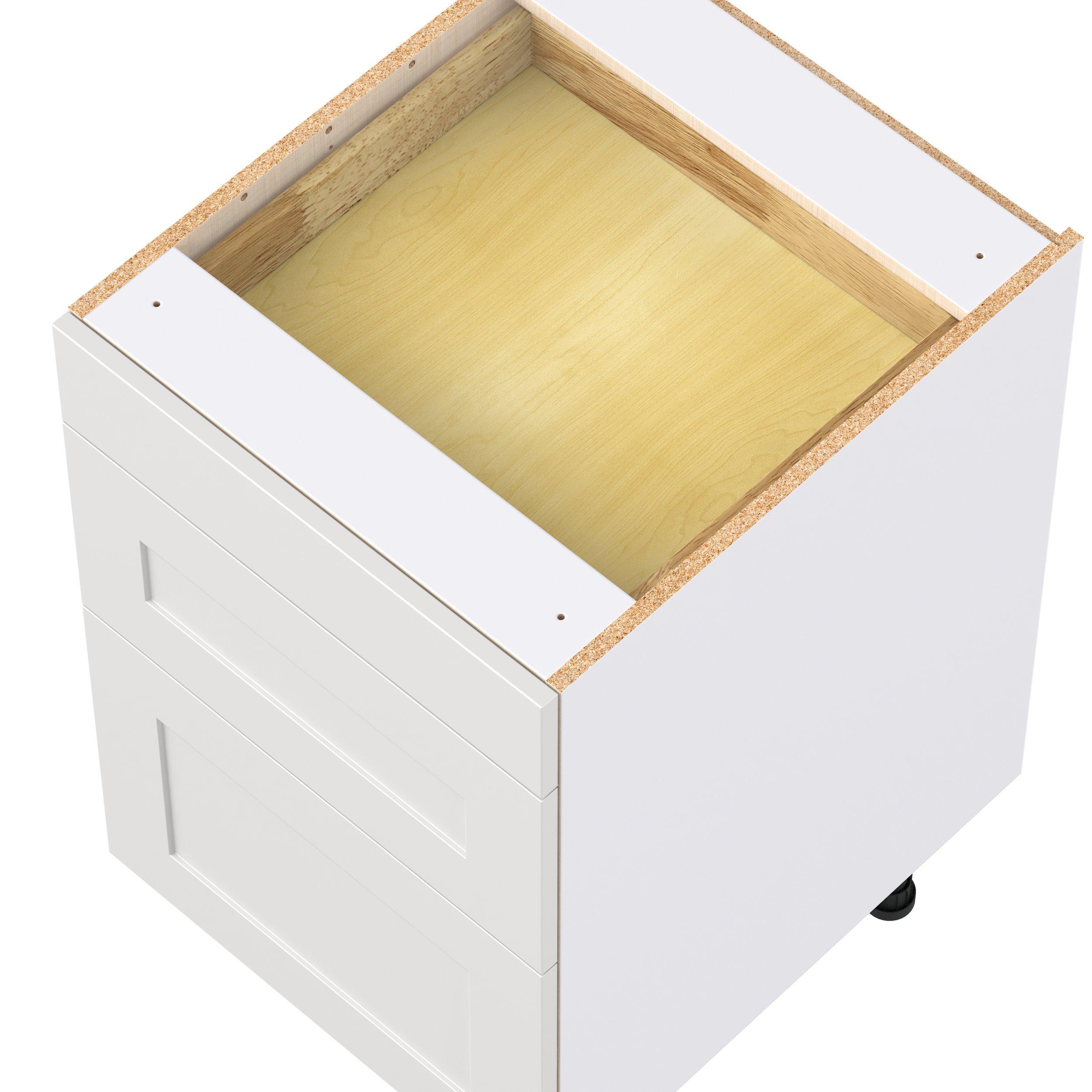 Transform your space with the elegance of Candler wide-rail shaker styles. Both the warm white and slate gray options create a rich transitional backdrop to complement any decor. Crafted from one-piece MDF Studio Design Collection Candler 21 in. Painted Warm White Drawer Base Cabinet is designed to resist hairline cracks while the easy-to-clean finish stands up to stains and moisture. Featuring 5-piece doors and dovetail drawer joints, these cabinets offer durability and elegance. This collection combines style with everyday storage solutions.