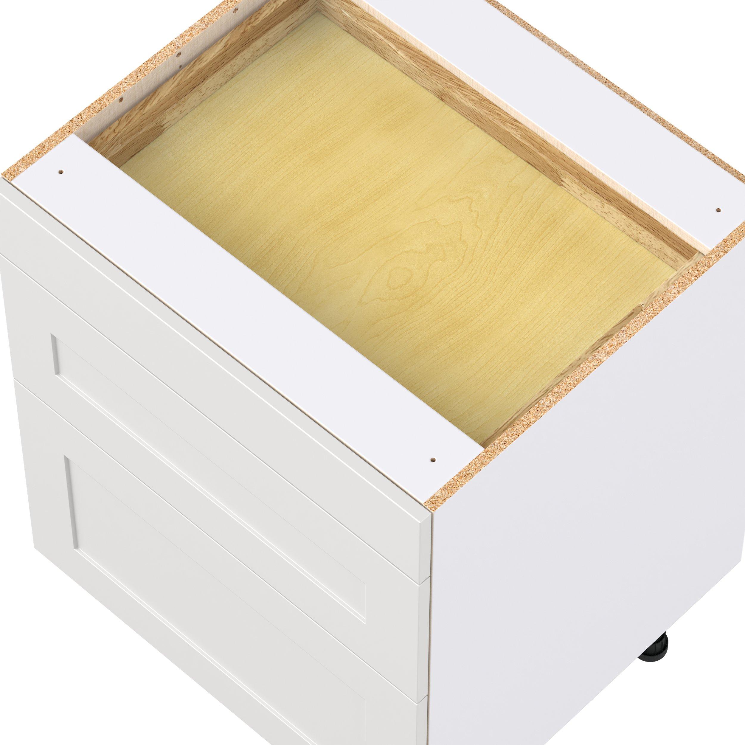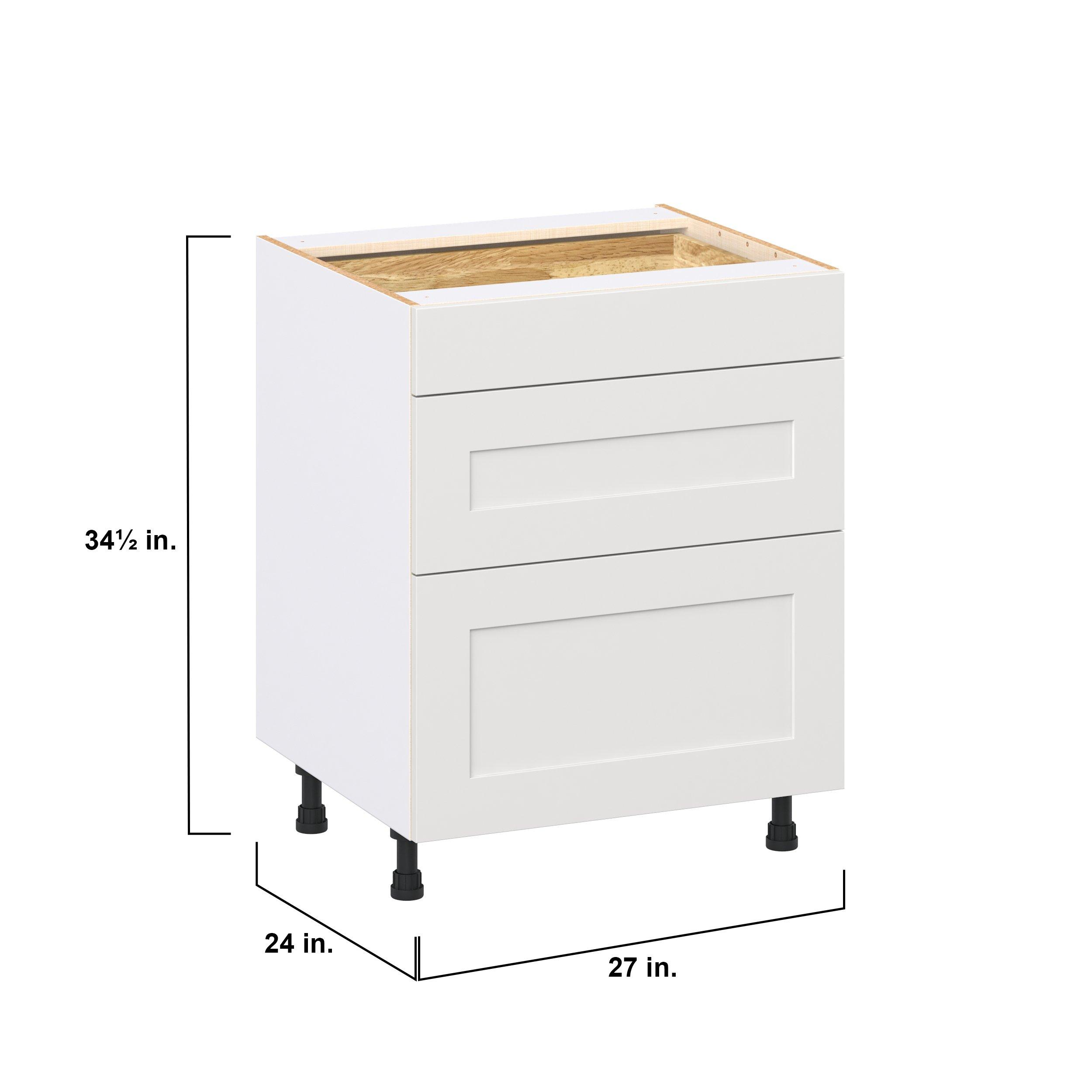 Transform your space with the elegance of Candler wide-rail shaker styles. Both the warm white and slate gray options create a rich transitional backdrop to complement any decor. Crafted from one-piece MDF Studio Design Collection Candler 27 in. Painted Warm White Drawer Base Cabinet is designed to resist hairline cracks while the easy-to-clean finish stands up to stains and moisture. Featuring 5-piece doors and dovetail drawer joints, these cabinets offer durability and elegance. This collection combines style with everyday storage solutions.