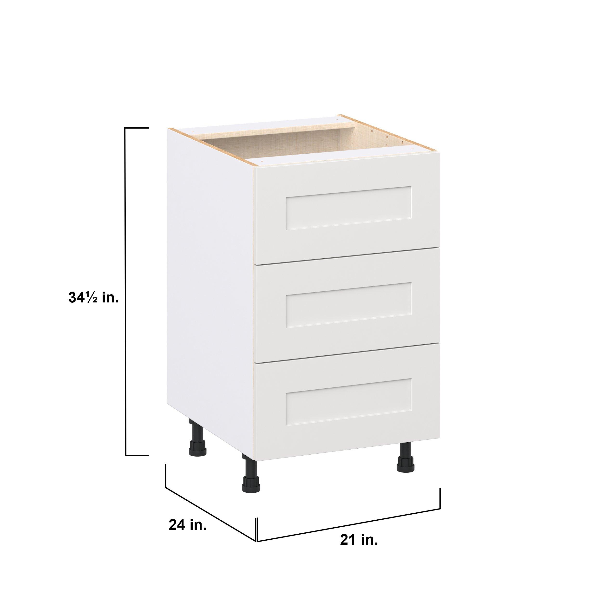 Transform your space with the elegance of Candler wide-rail shaker styles. Both the warm white and slate gray options create a rich transitional backdrop to complement any decor. Crafted from one-piece MDF Studio Design Collection Candler 21 in. Painted Warm White Drawer Base Cabinet is designed to resist hairline cracks while the easy-to-clean finish stands up to stains and moisture. Featuring 5-piece doors and dovetail drawer joints, these cabinets offer durability and elegance. This collection combines style with everyday storage solutions.