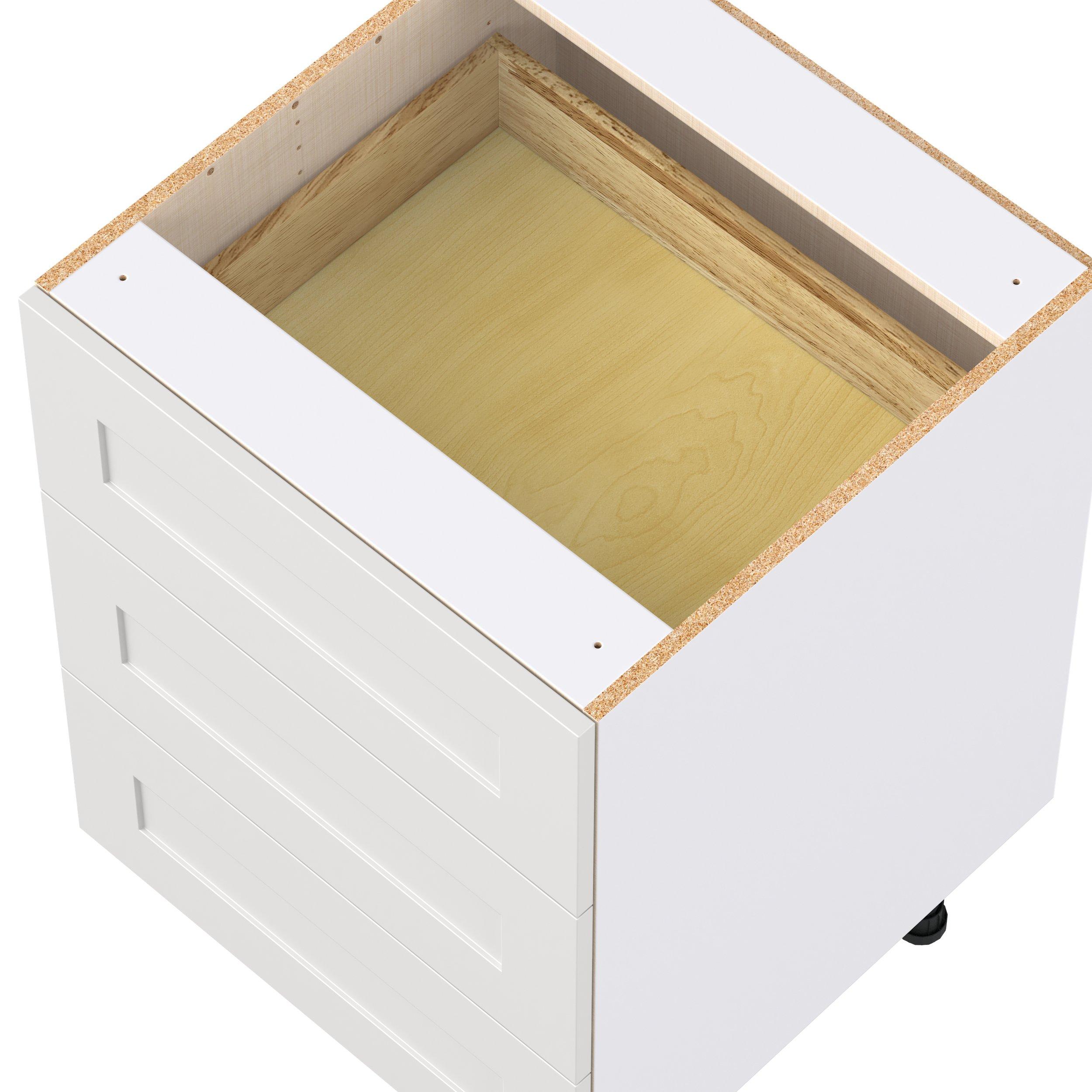 Transform your space with the elegance of Candler wide-rail shaker styles. Both the warm white and slate gray options create a rich transitional backdrop to complement any decor. Crafted from one-piece MDF Studio Design Collection Candler 24 in. Painted Warm White Drawer Base Cabinet is designed to resist hairline cracks while the easy-to-clean finish stands up to stains and moisture. Featuring 5-piece doors and dovetail drawer joints, these cabinets offer durability and elegance. This collection combines style with everyday storage solutions.