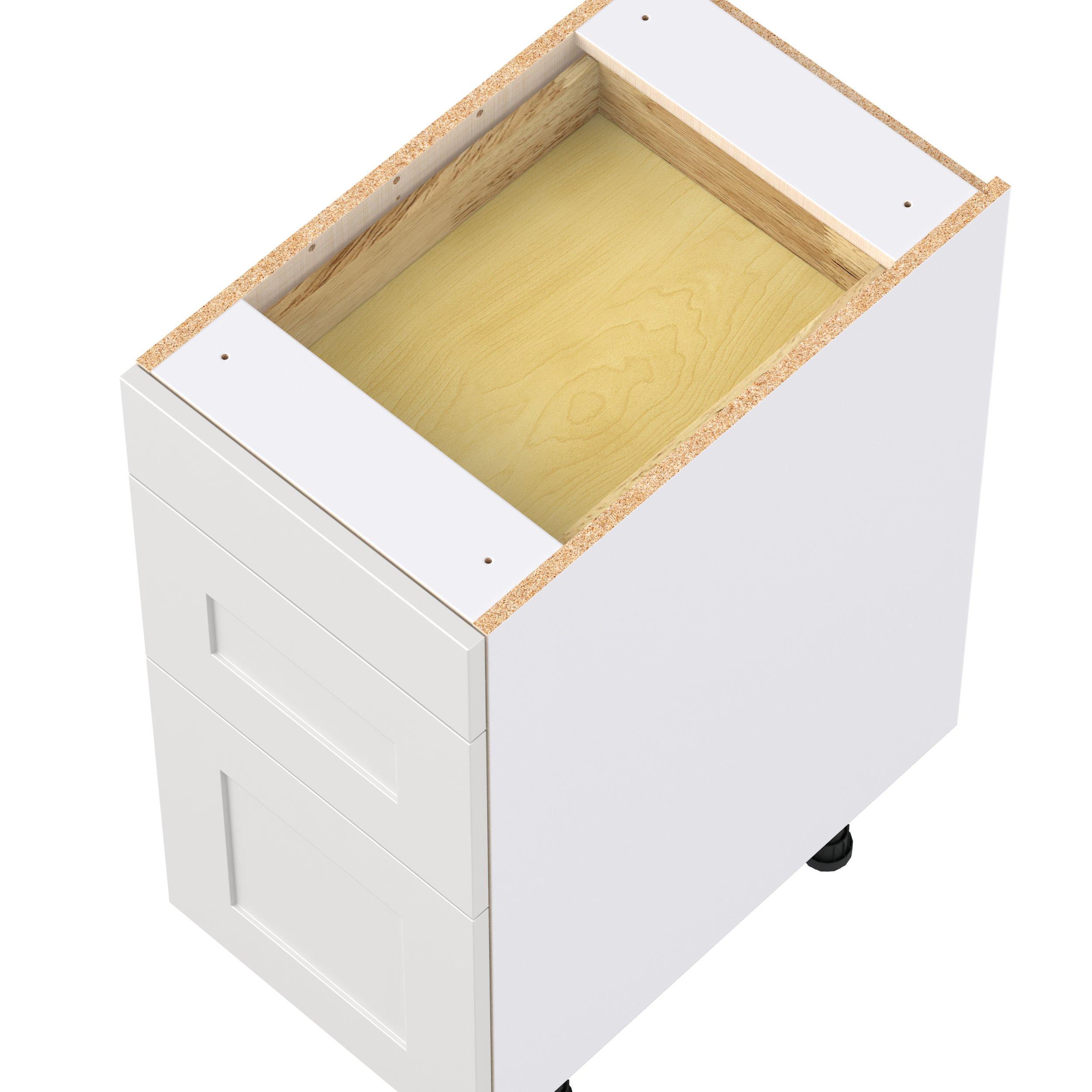 Transform your space with the elegance of Candler wide-rail shaker styles. Both the warm white and slate gray options create a rich transitional backdrop to complement any decor. Crafted from one-piece MDF Studio Design Collection Candler 15 in. Painted Warm White Drawer Base Cabinet is designed to resist hairline cracks while the easy-to-clean finish stands up to stains and moisture. Featuring 5-piece doors and dovetail drawer joints, these cabinets offer durability and elegance. This collection combines style with everyday storage solutions.