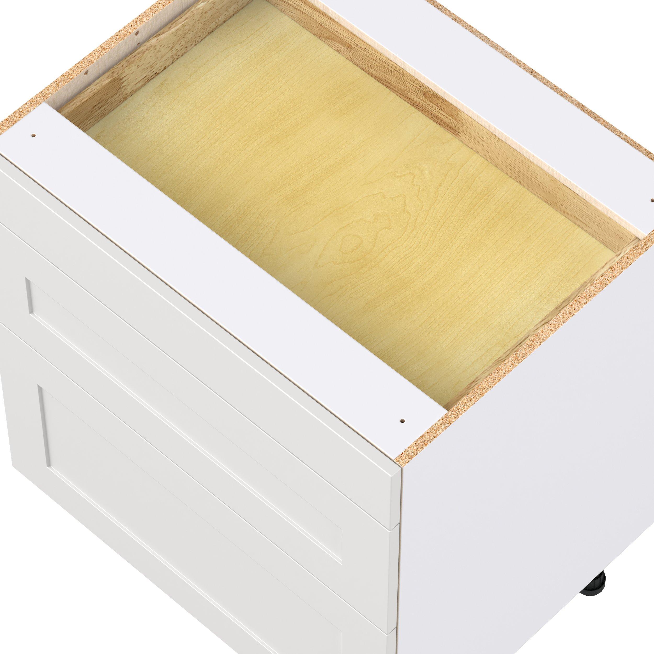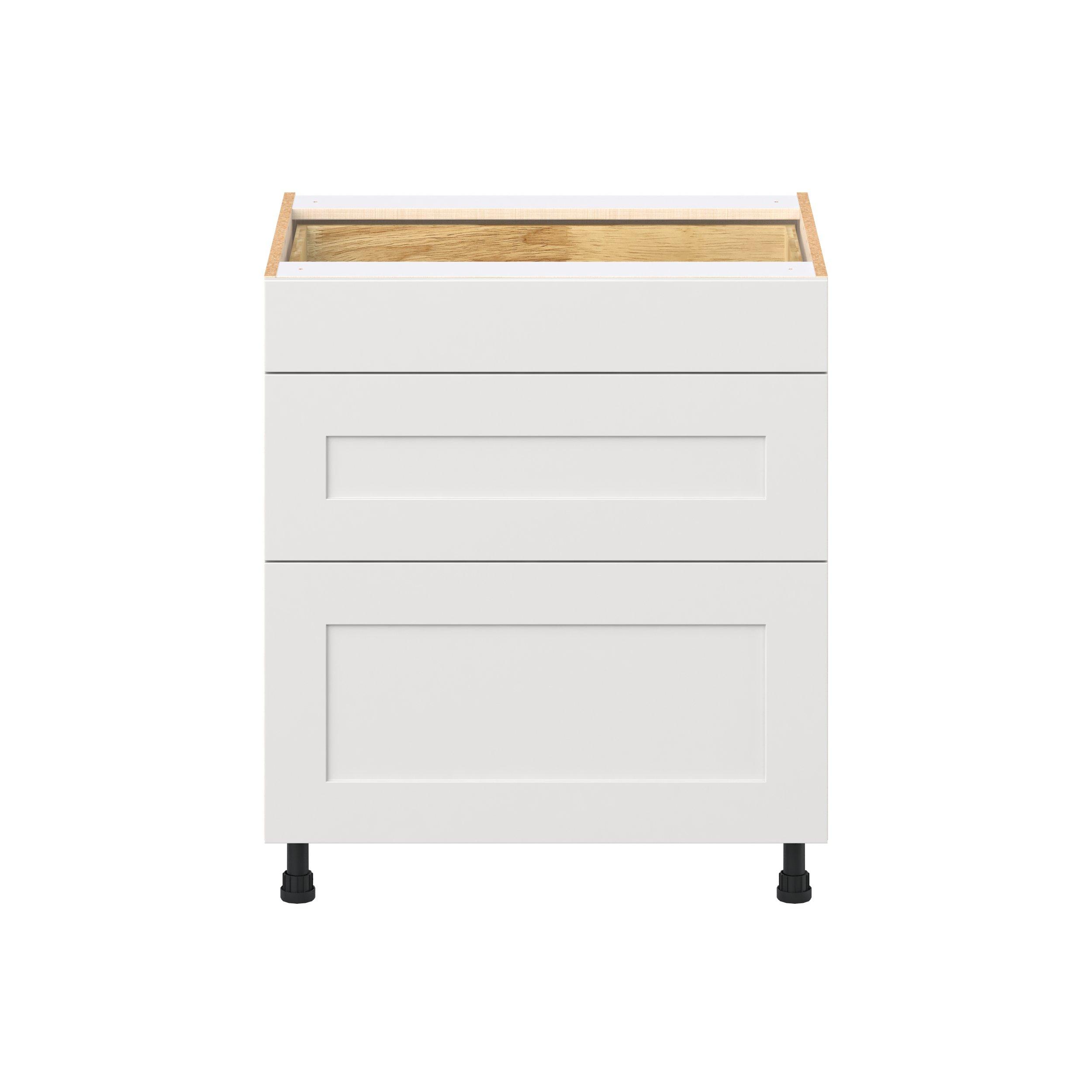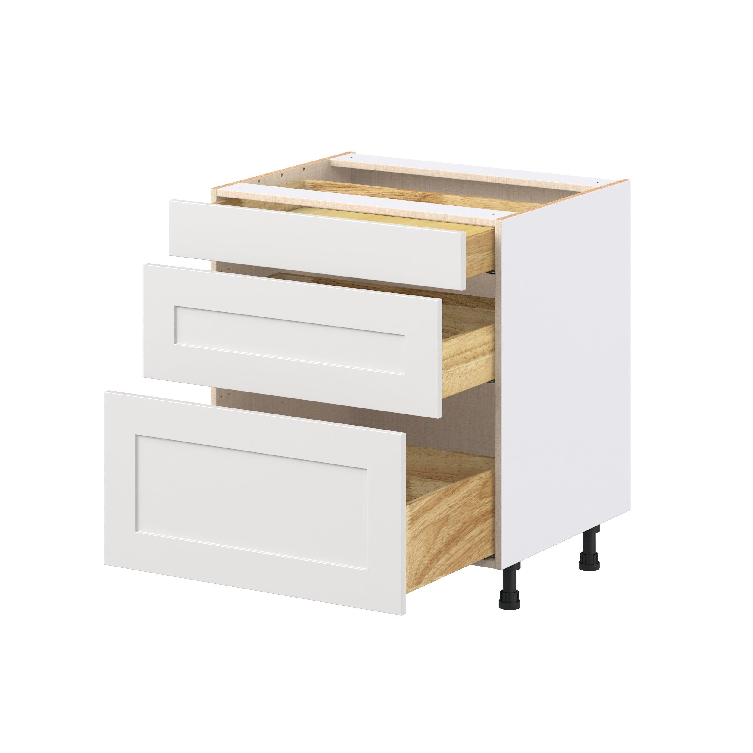 Transform your space with the elegance of Candler wide-rail shaker styles. Both the warm white and slate gray options create a rich transitional backdrop to complement any decor. Crafted from one-piece MDF Studio Design Collection Candler 30 in. Painted Warm White Drawer Base Cabinet is designed to resist hairline cracks while the easy-to-clean finish stands up to stains and moisture. Featuring 5-piece doors and dovetail drawer joints, these cabinets offer durability and elegance. This collection combines style with everyday storage solutions.