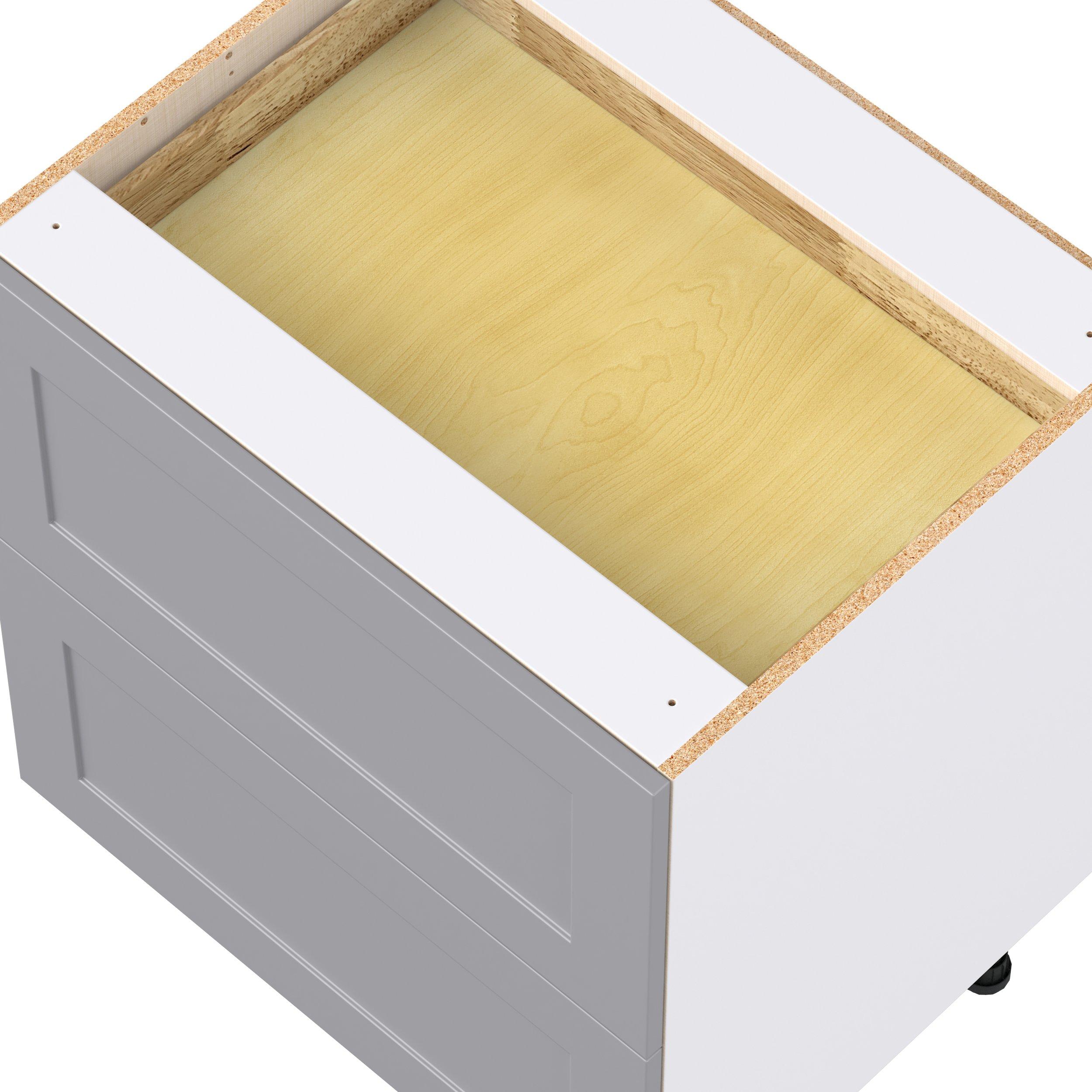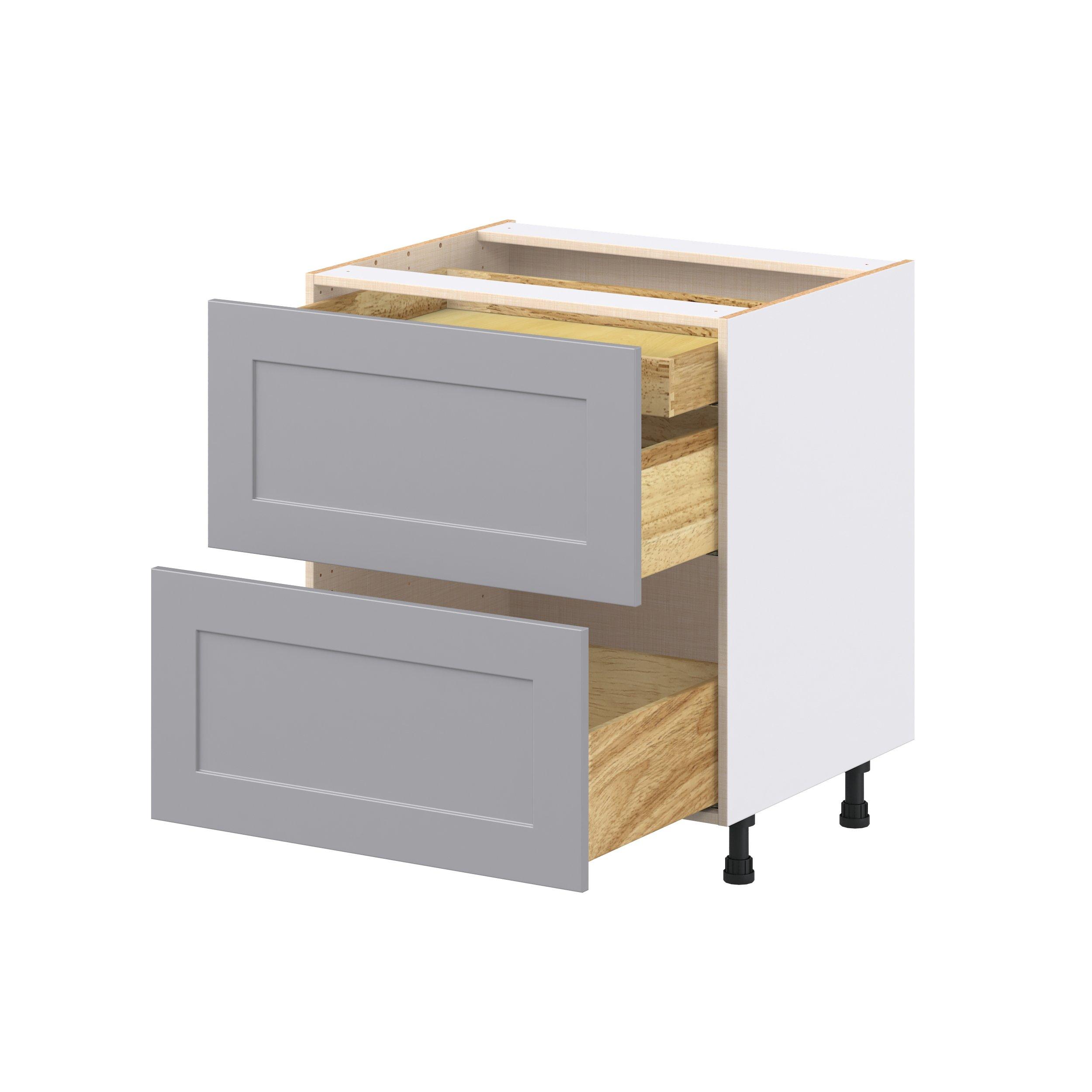 Transform your space with the elegance of Candler wide-rail shaker styles. Both the warm white and slate gray options create a rich transitional backdrop to complement any decor. Crafted from one-piece MDF Studio Design Collection Candler 30 in. Painted Slate Gray Base Cabinet with Inner Pull-Out Drawer is designed to resist hairline cracks while the easy-to-clean finish stands up to stains and moisture. Featuring 5-piece doors and dovetail drawer joints, these cabinets offer durability and elegance. This collection combines style with everyday storage solutions.