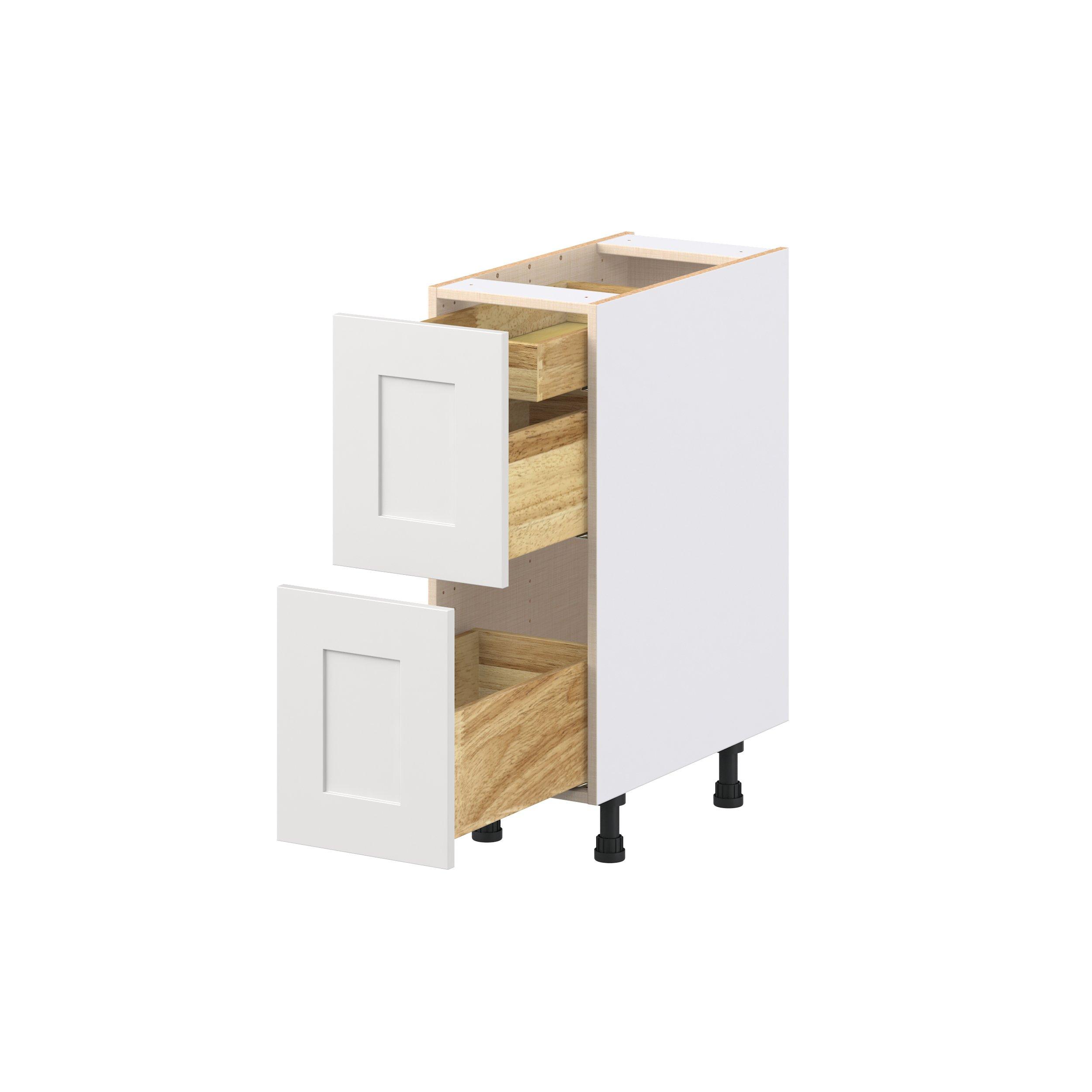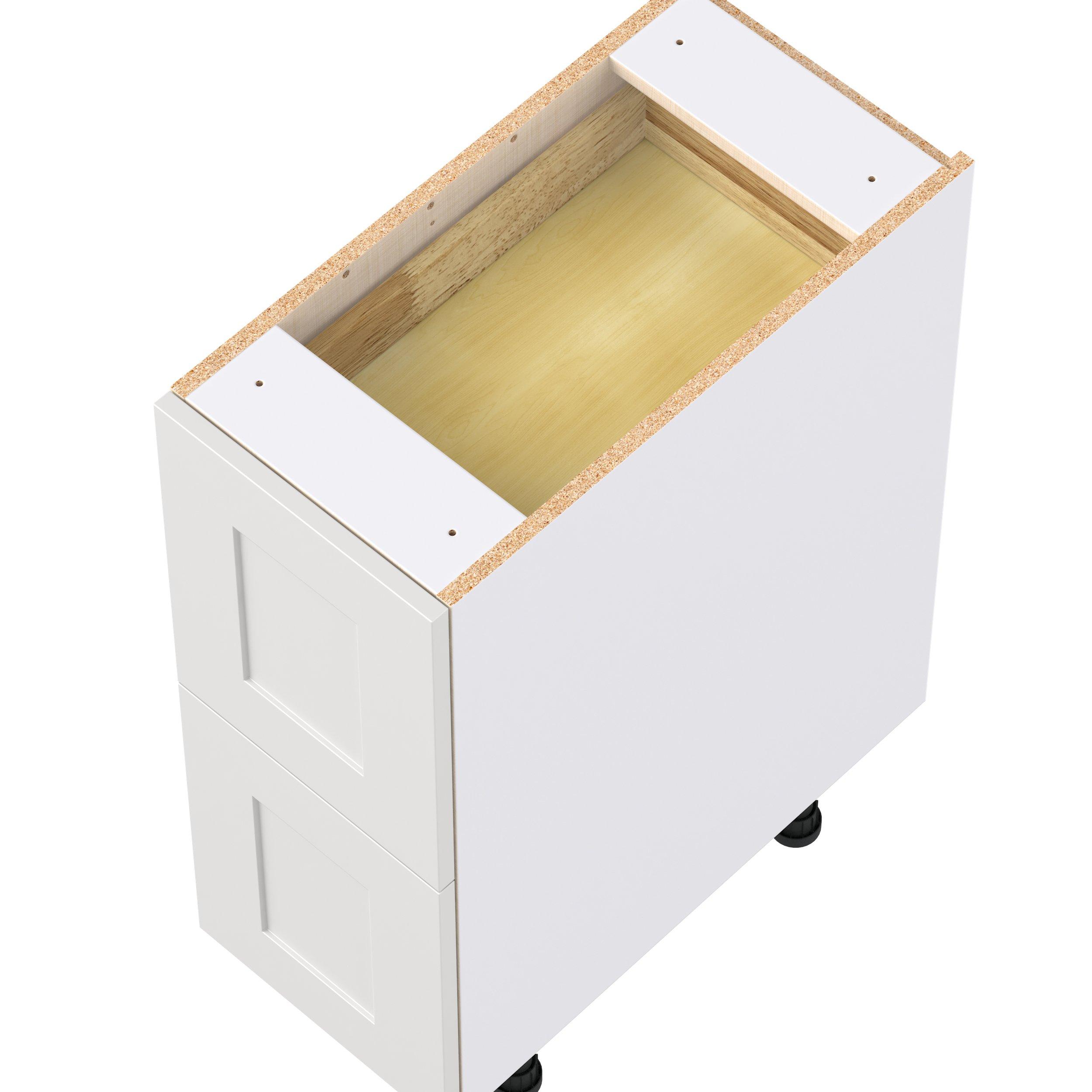 Transform your space with the elegance of Candler wide-rail shaker styles. Both the warm white and slate gray options create a rich transitional backdrop to complement any decor. Crafted from one-piece MDF Studio Design Collection Candler 12 in. Painted Warm White Base Cabinet with Inner Pull-Out Drawer is designed to resist hairline cracks while the easy-to-clean finish stands up to stains and moisture. Featuring 5-piece doors and dovetail drawer joints, these cabinets offer durability and elegance. This collection combines style with everyday storage solutions.